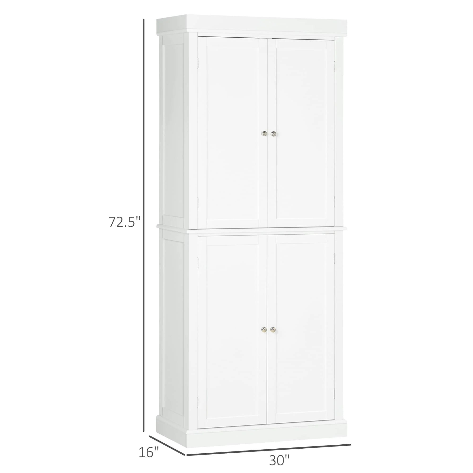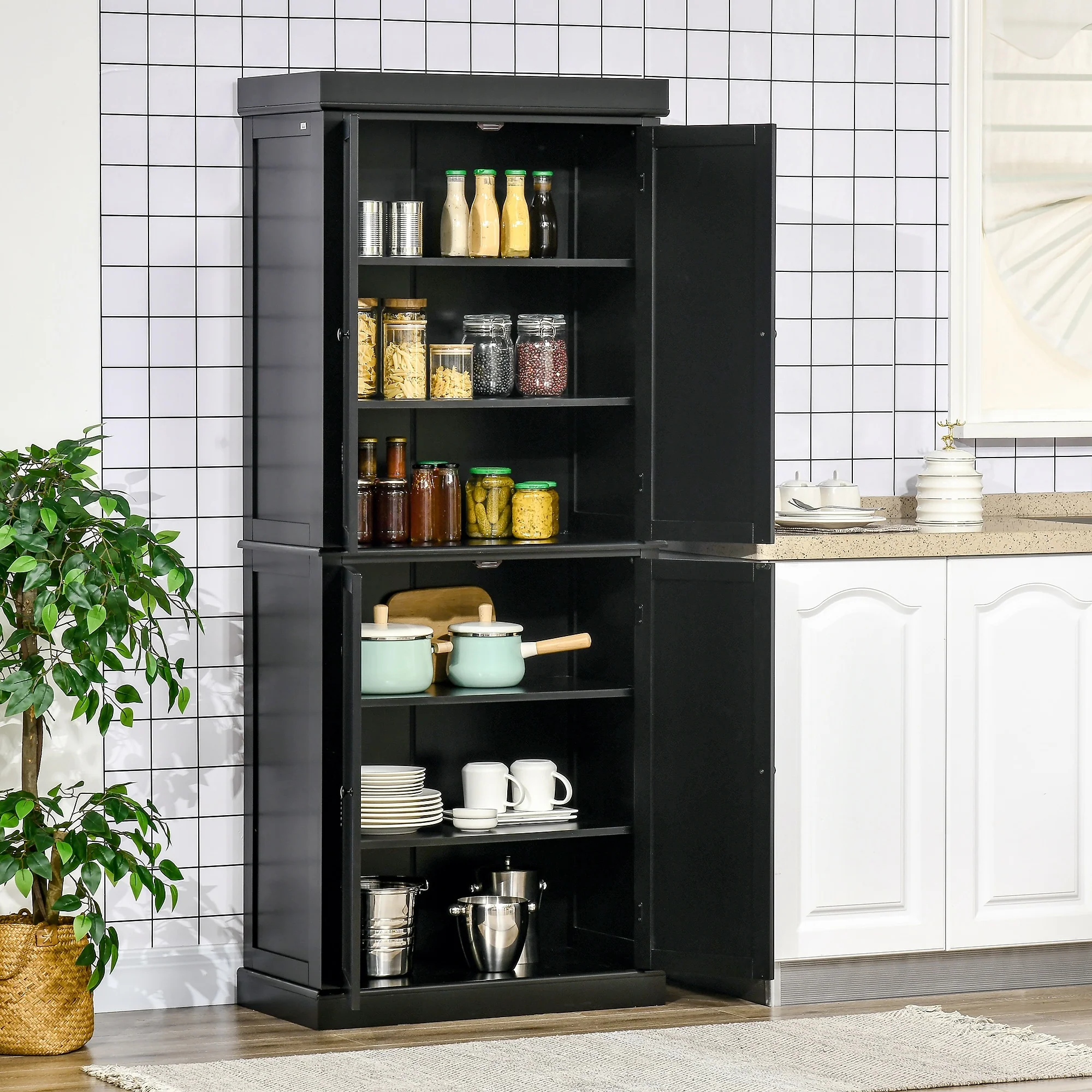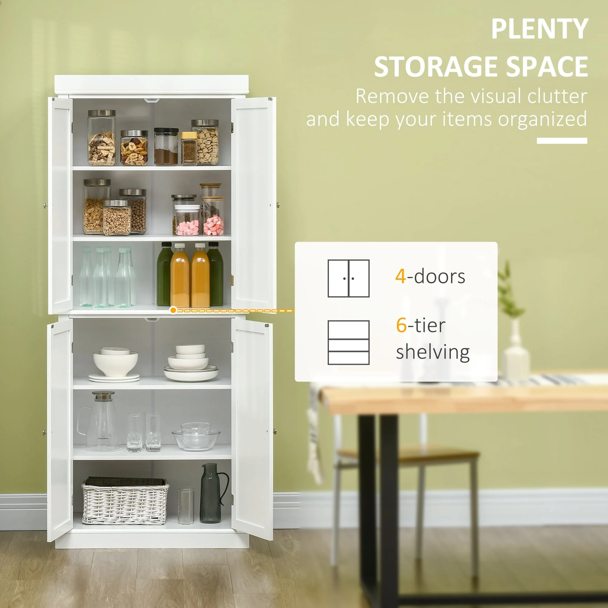 HOMCOM Freestanding Modern 4 Door Kitchen Pantry, Storage Cabinet Organizer with 6-Tier Shelves, and 4 Adjustable Shelves
