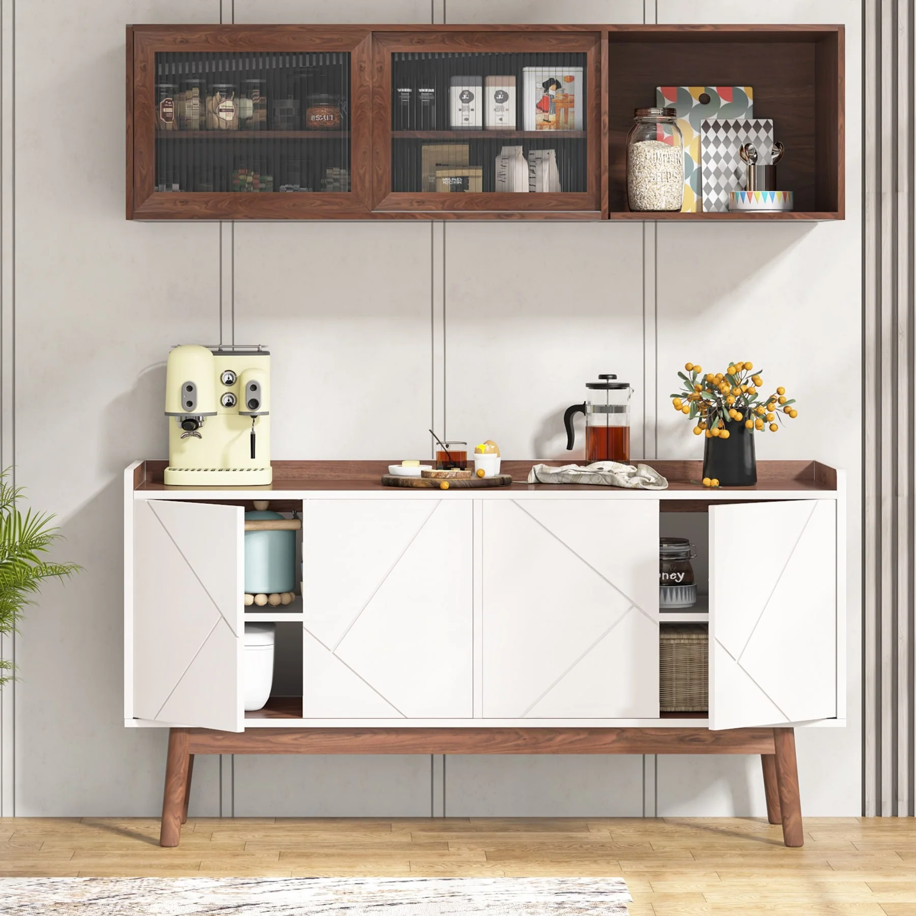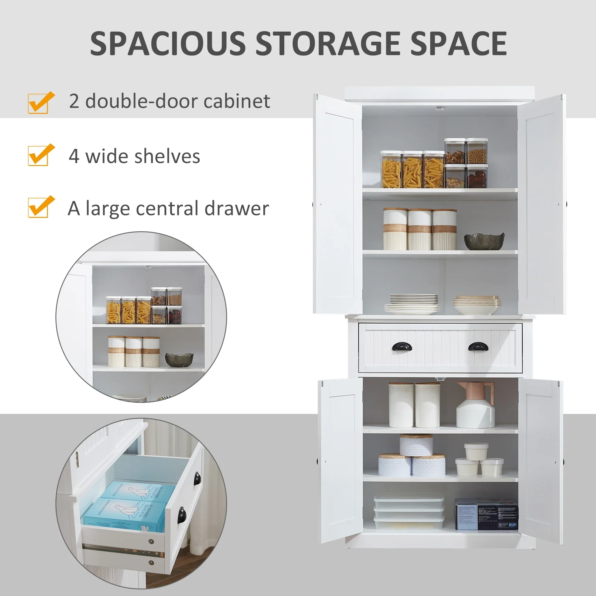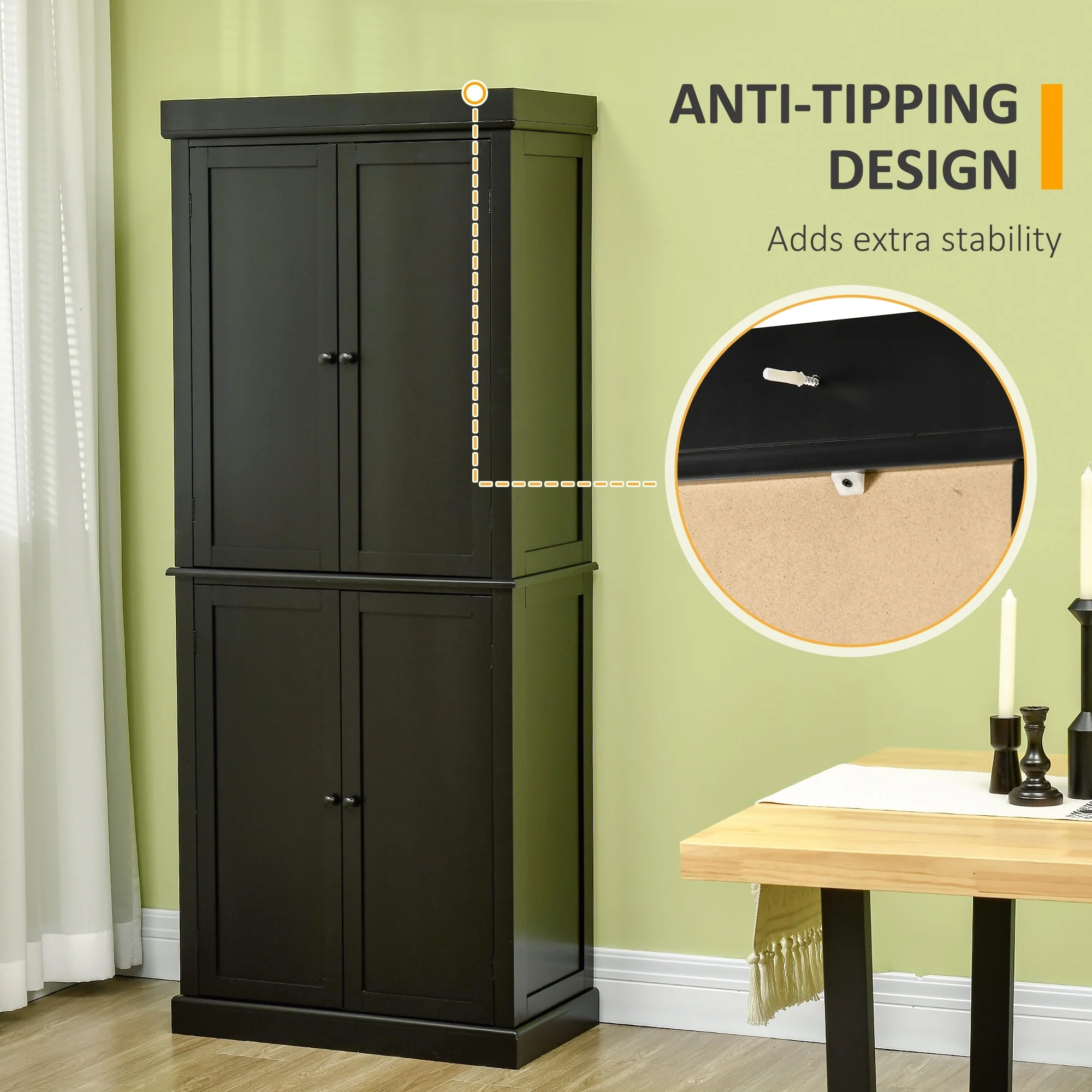 HOMCOM Freestanding Modern 4 Door Kitchen Pantry, Storage Cabinet Organizer with 6-Tier Shelves, and 4 Adjustable Shelves