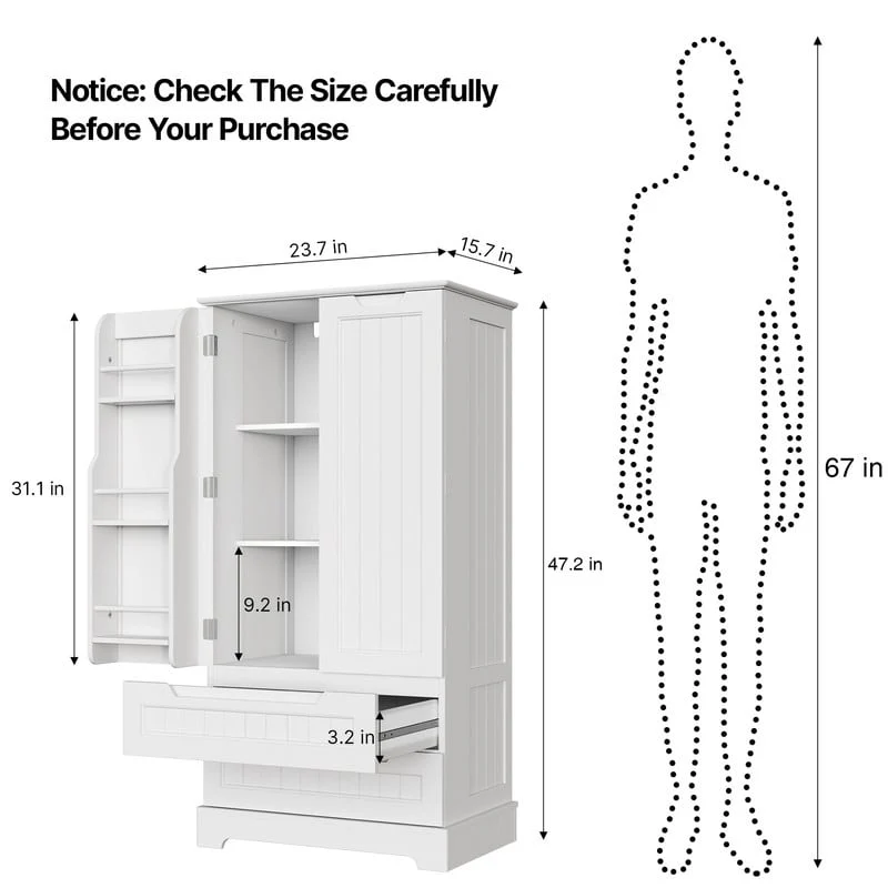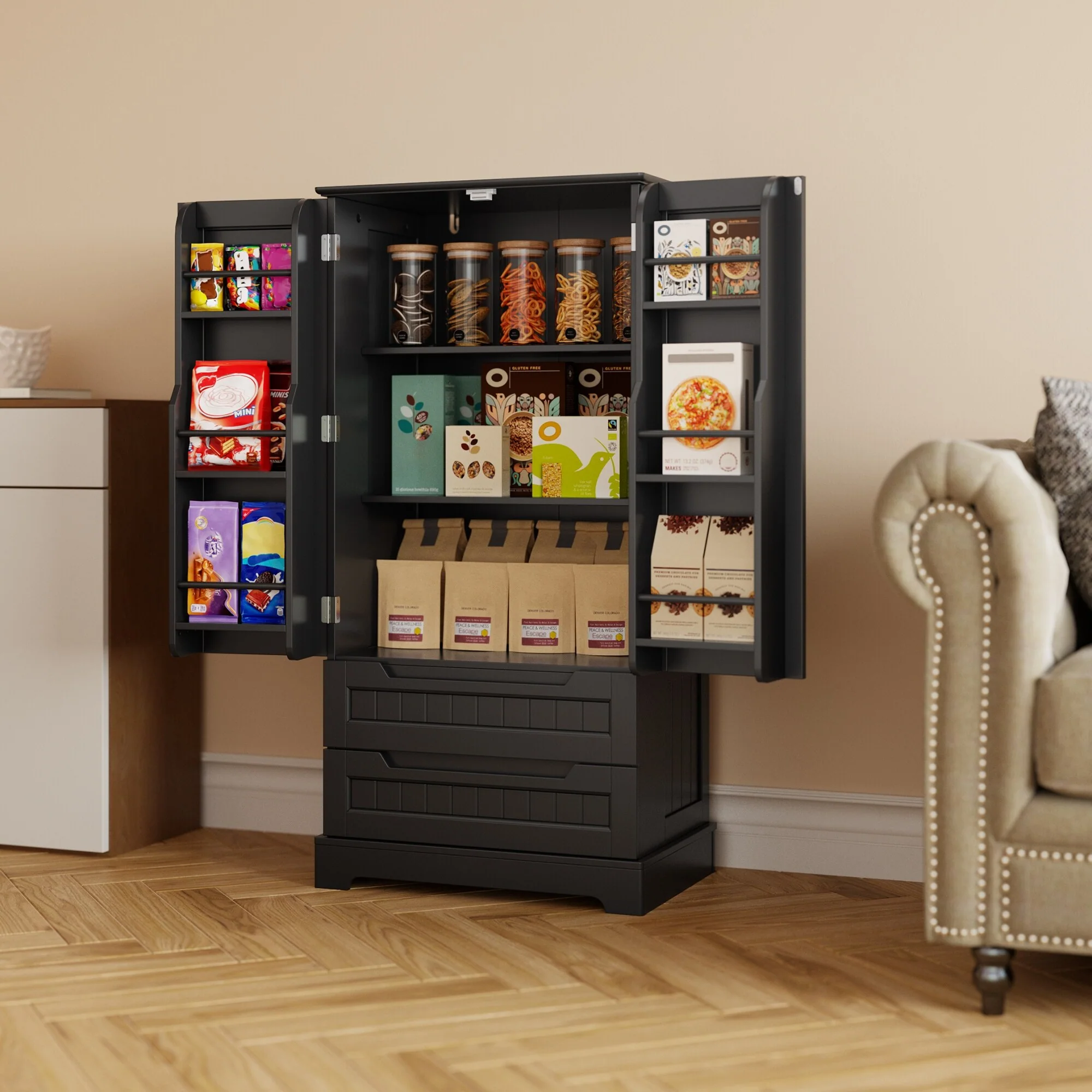 Living Skog Monti Food Pantry Storage Kitchen Cabinet with Adjustable Shelves and Drawer