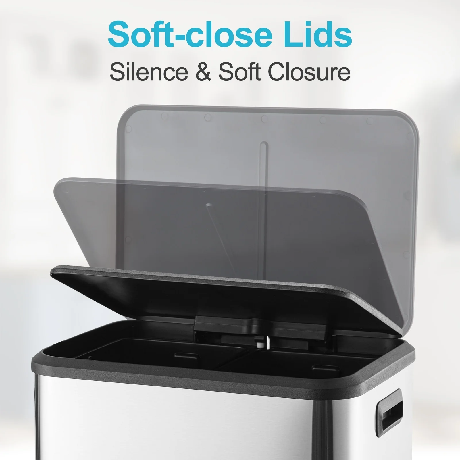 Qualiazero 16 Gal (8 Gal dual unit) Rectangular Recycle Step Can - Stainless Steel