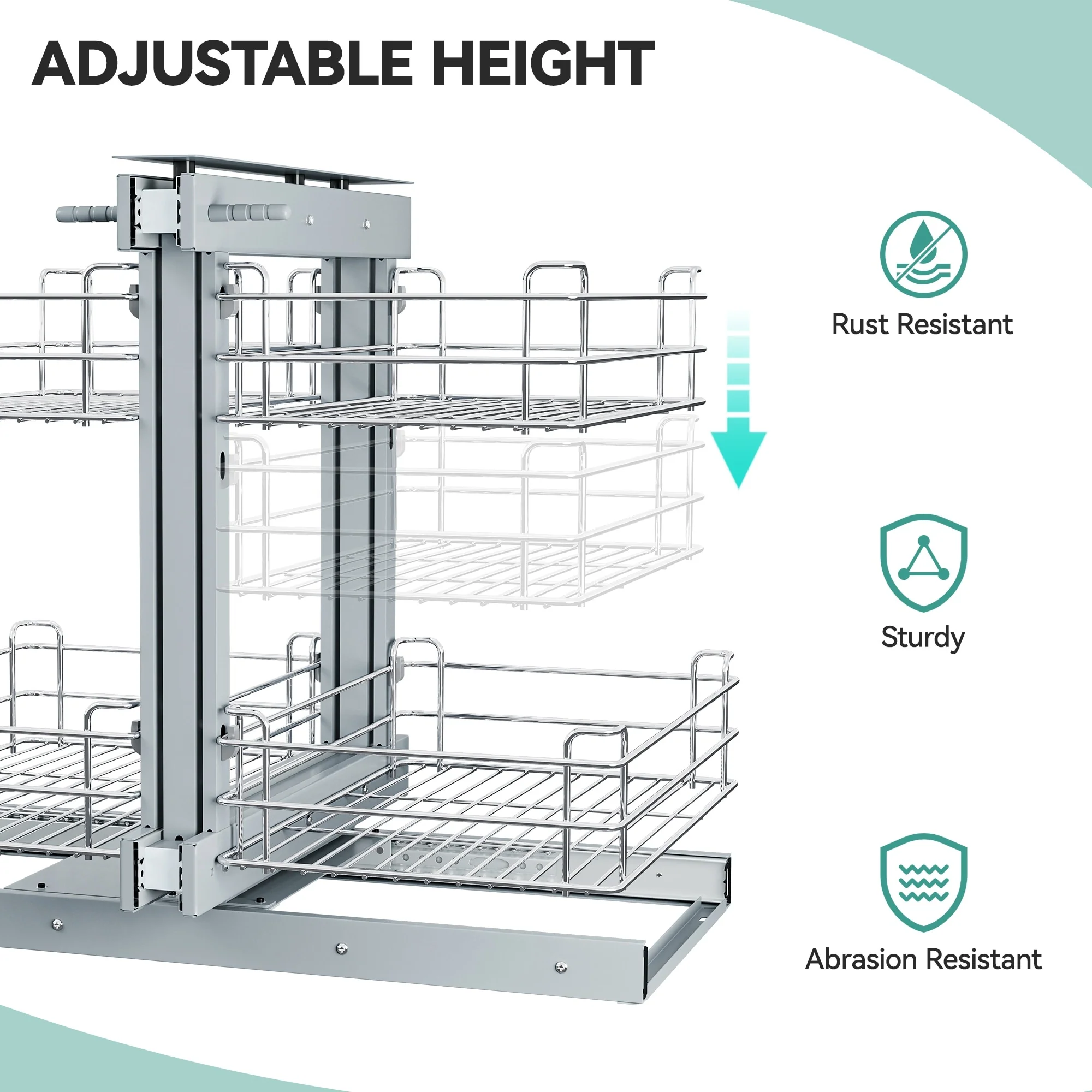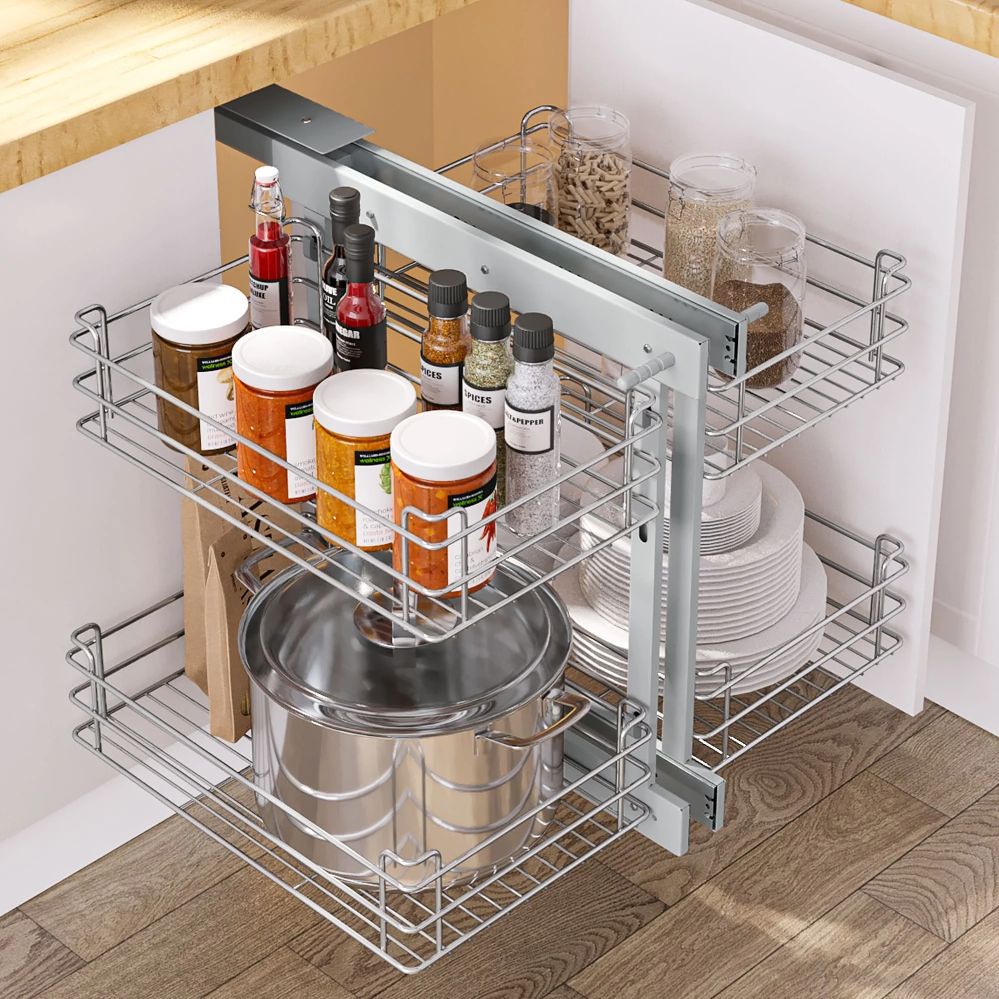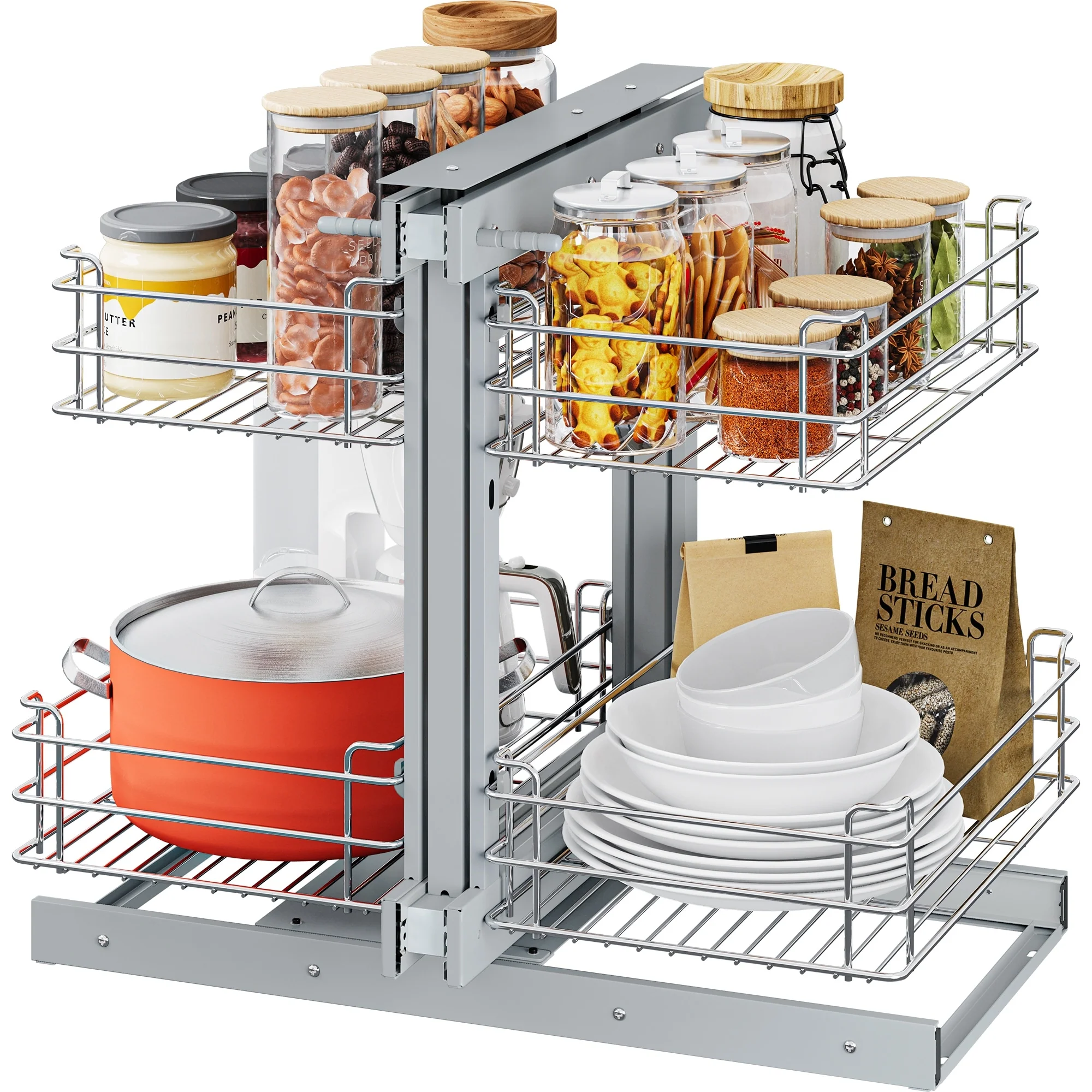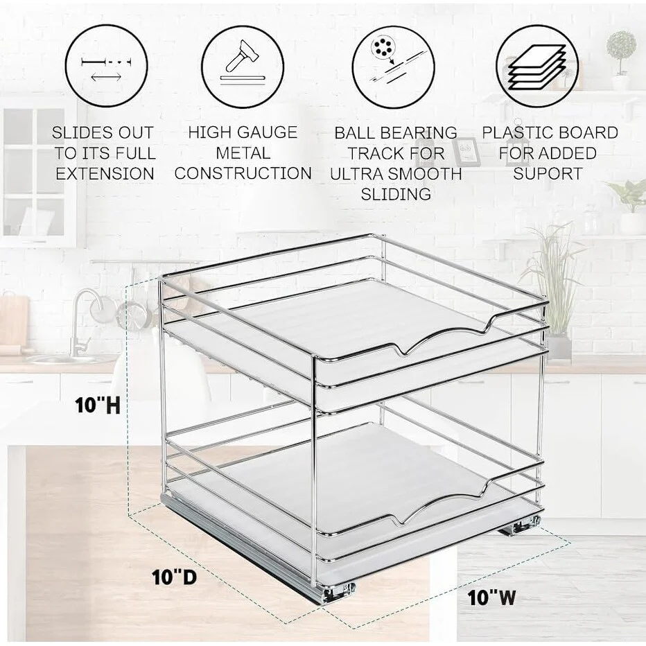 Hold N' Storage - 2 Tier Pull Out Cabinet Organizer for Spices, Cans - Heavy Duty with Lifetime Limited Warranty