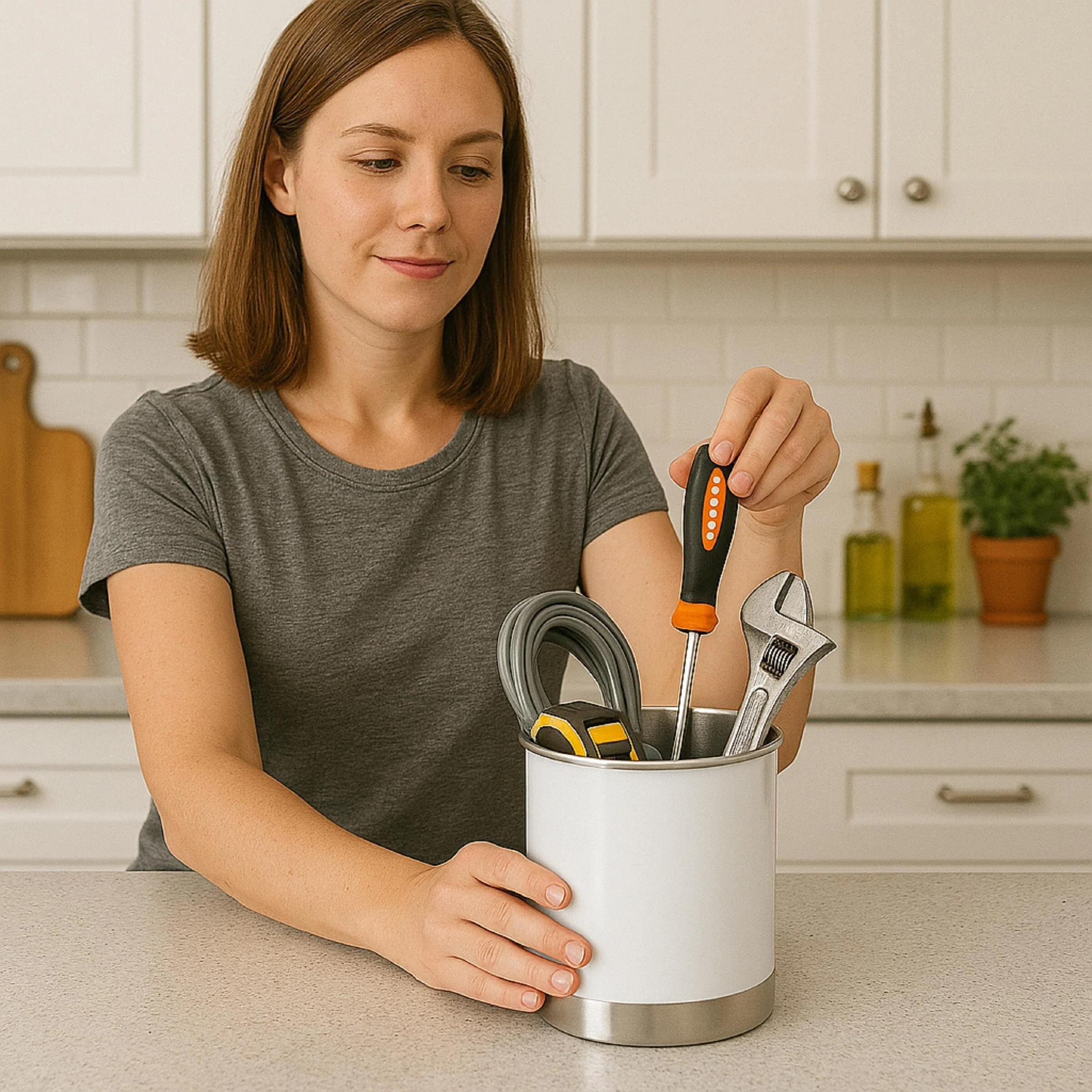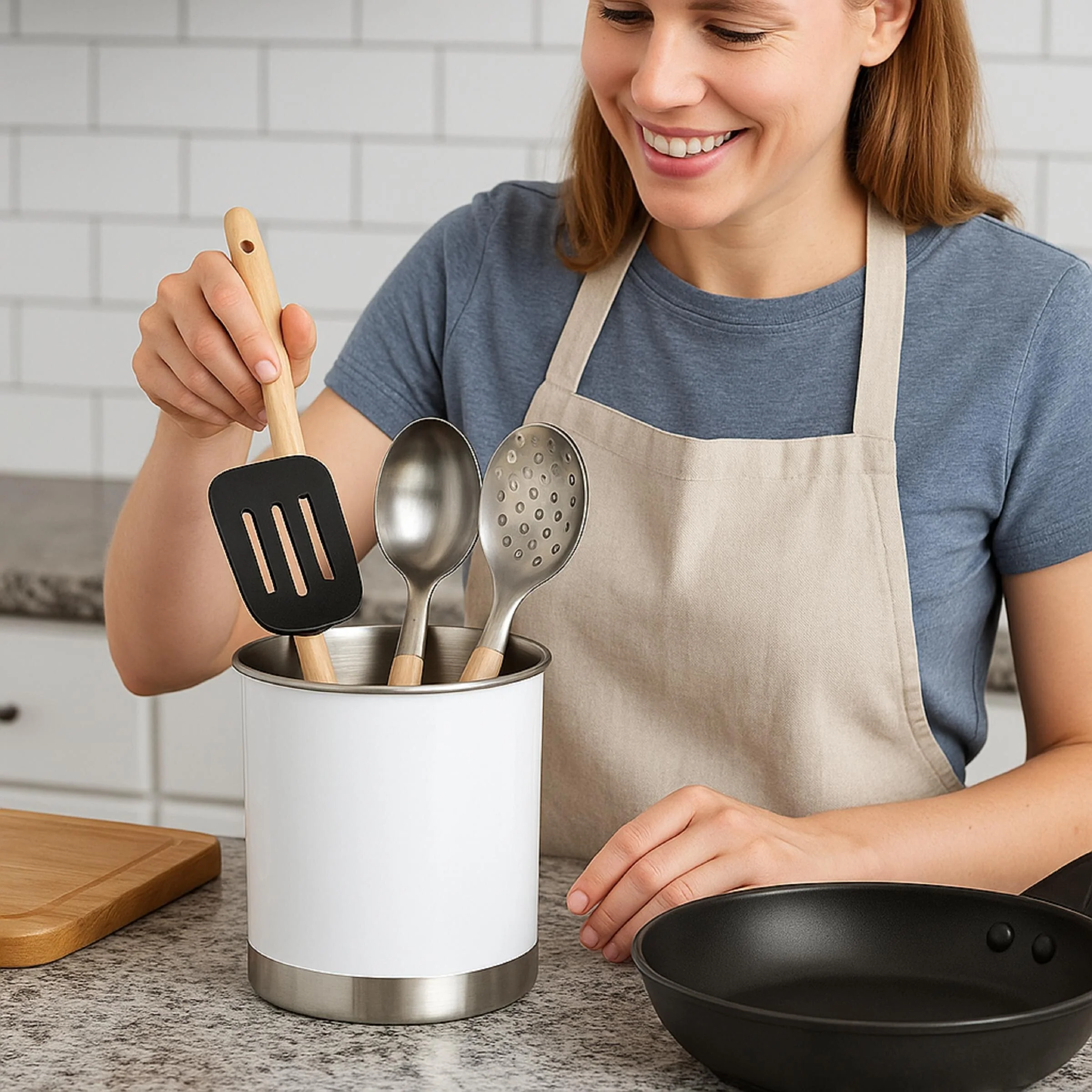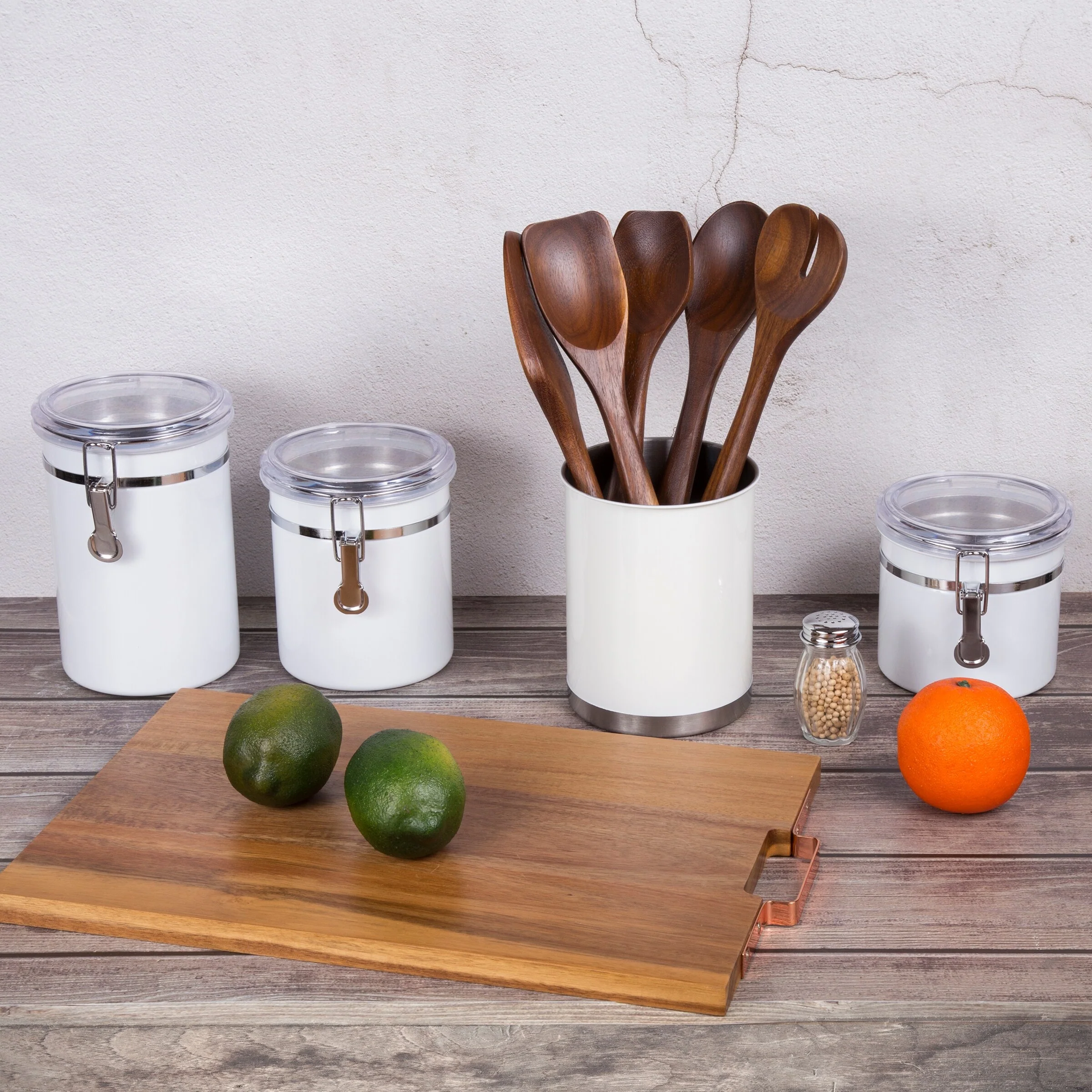 Creative Home Heavy Gauge Stainless Steel Large Tool Crock Utensil Holder Flatware Organizer, White Color