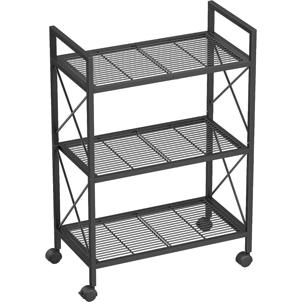 SONGMICS 3-Tier Metal Storage Rack with Wheels, Mesh Shelving Unit with X Side Frames, 23.6-Inch Width