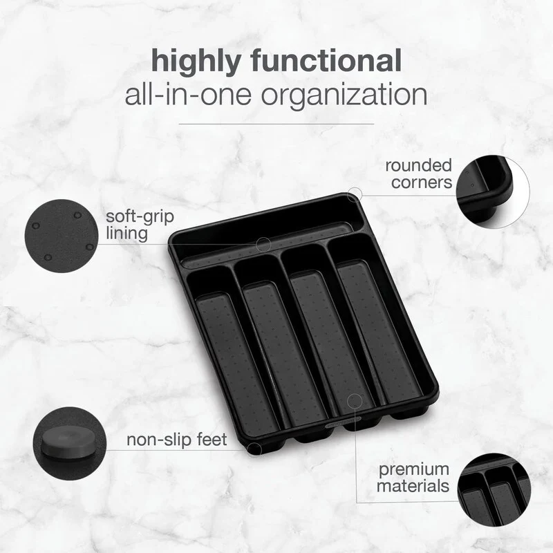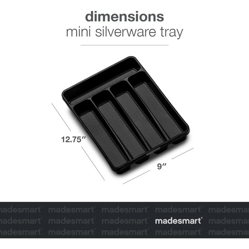 Mini 5-Compartment Plastic Silverware Tray for Drawer Organizer,Carbon