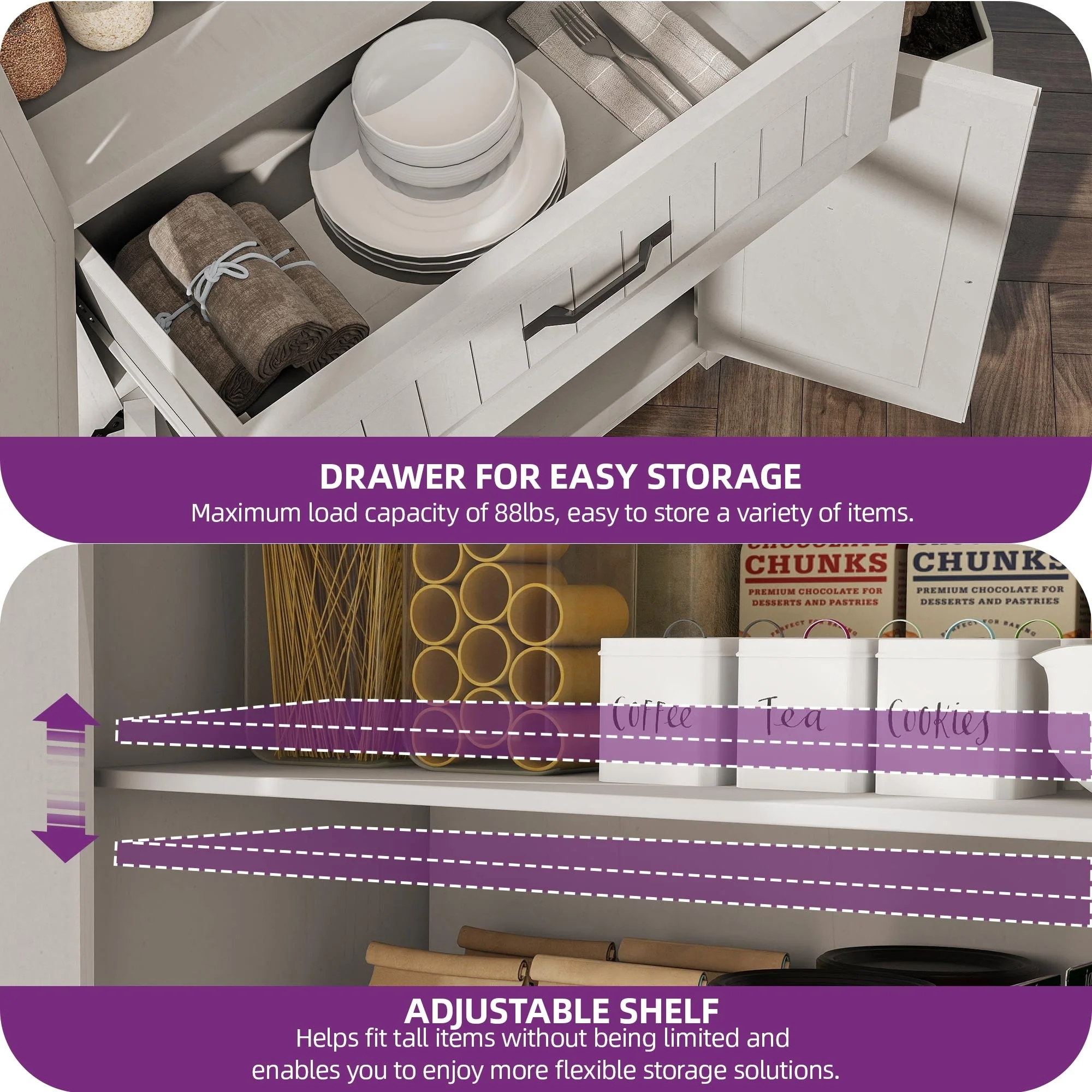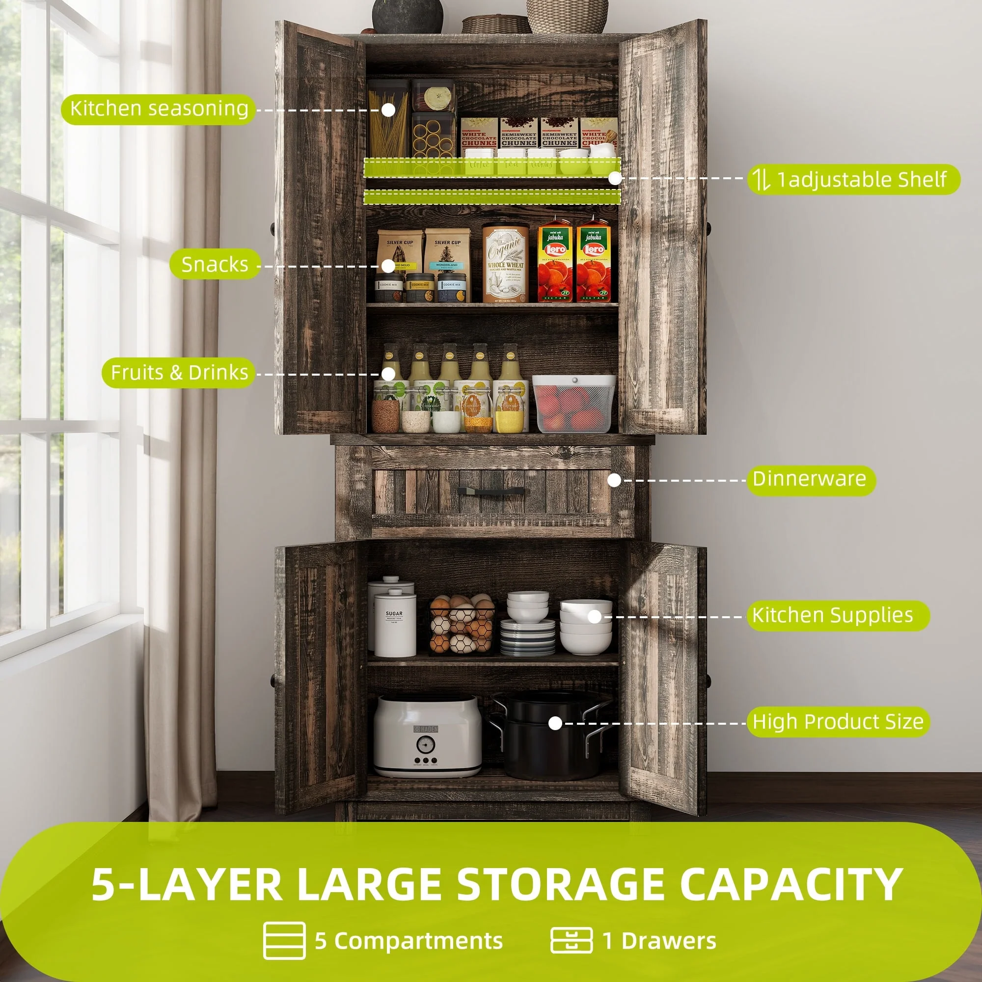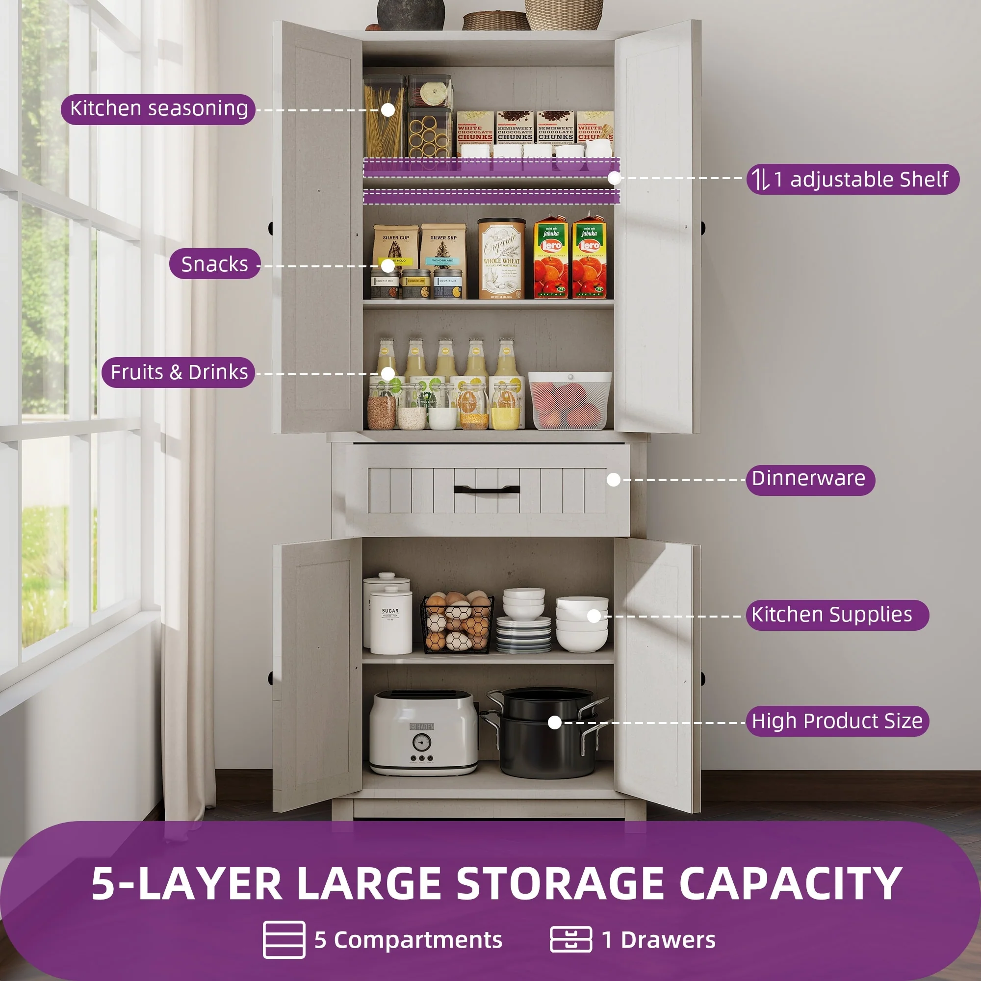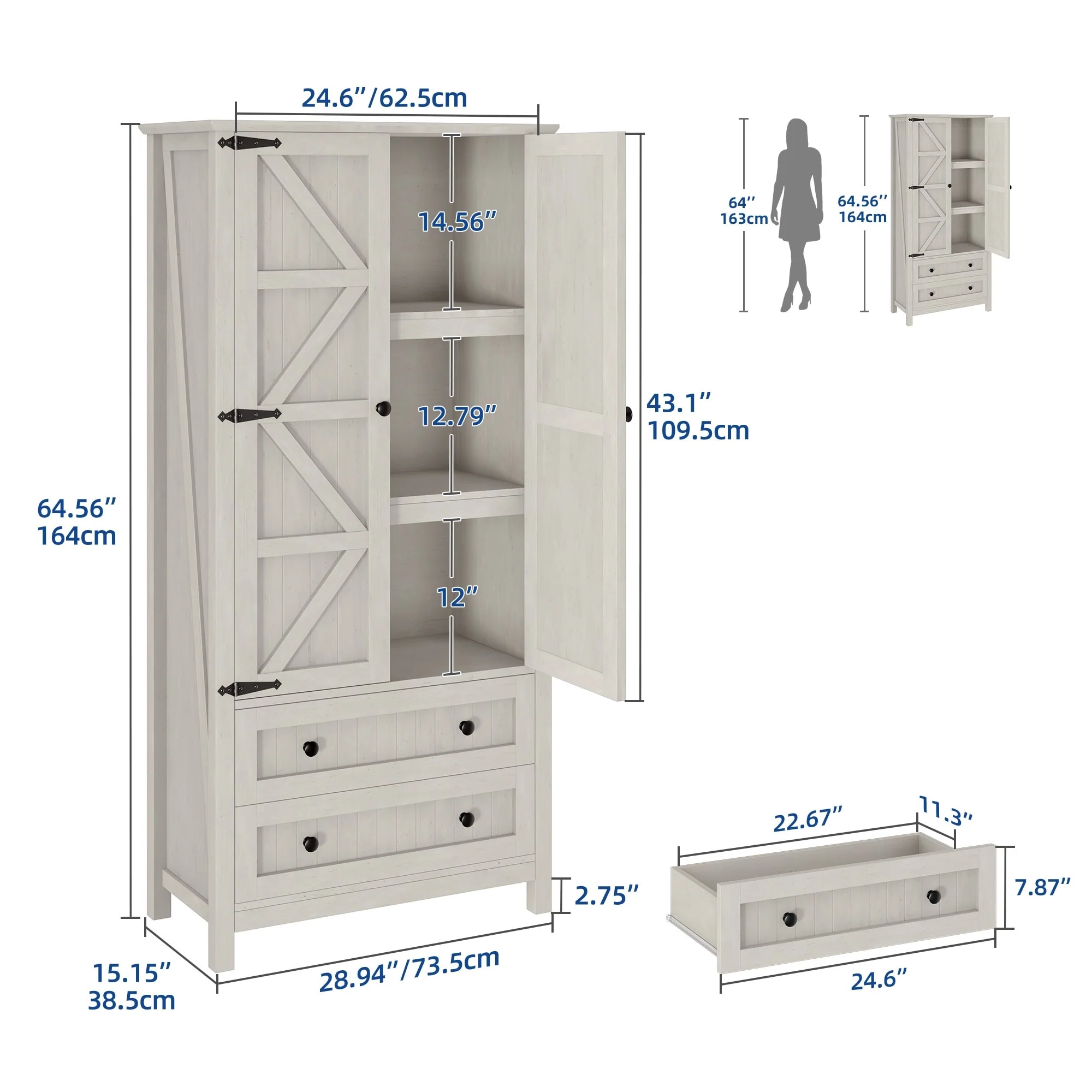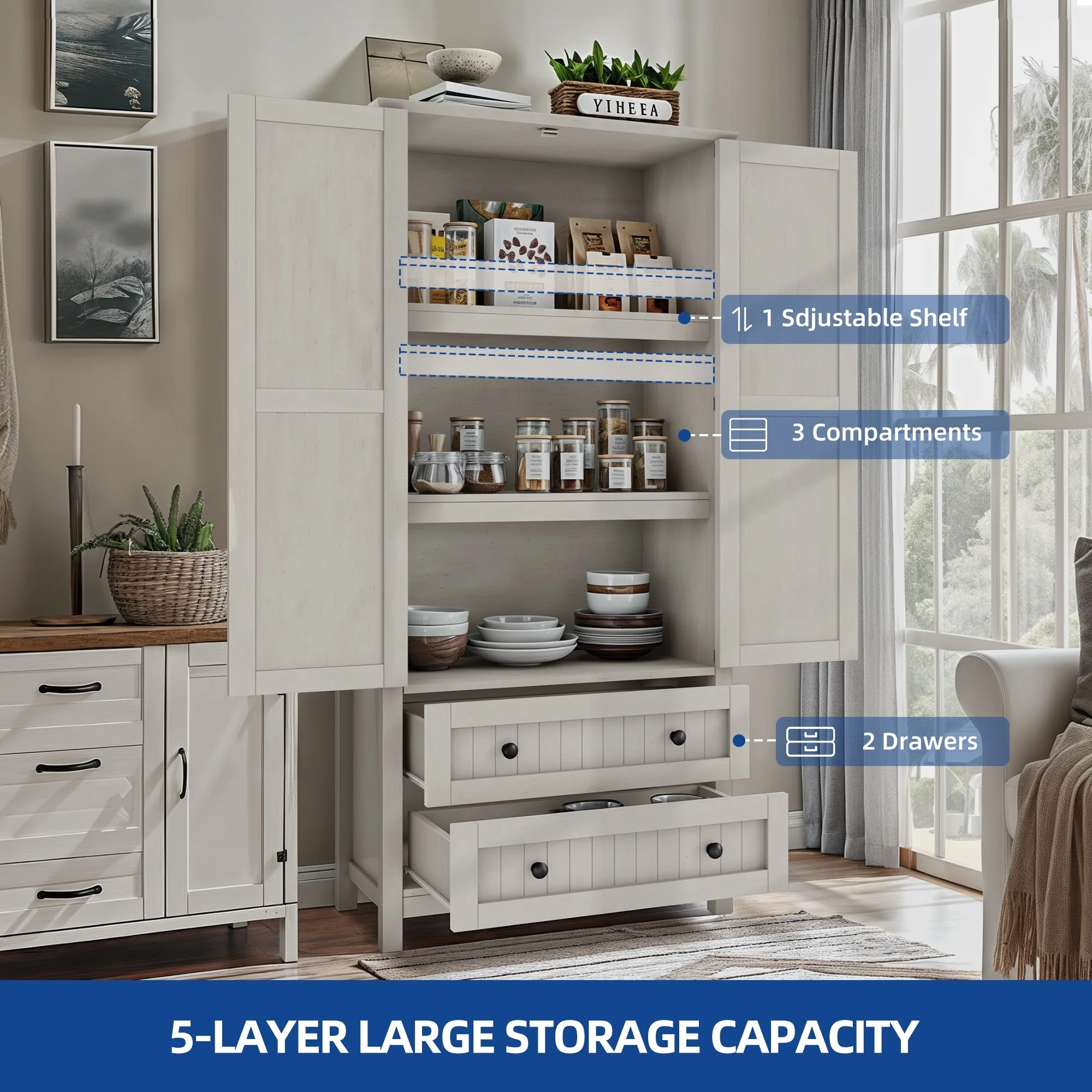 Moasis 64" Farmhouse Tall Kitchen Pantry Storage Cabinet with 2 Drawers & Doors