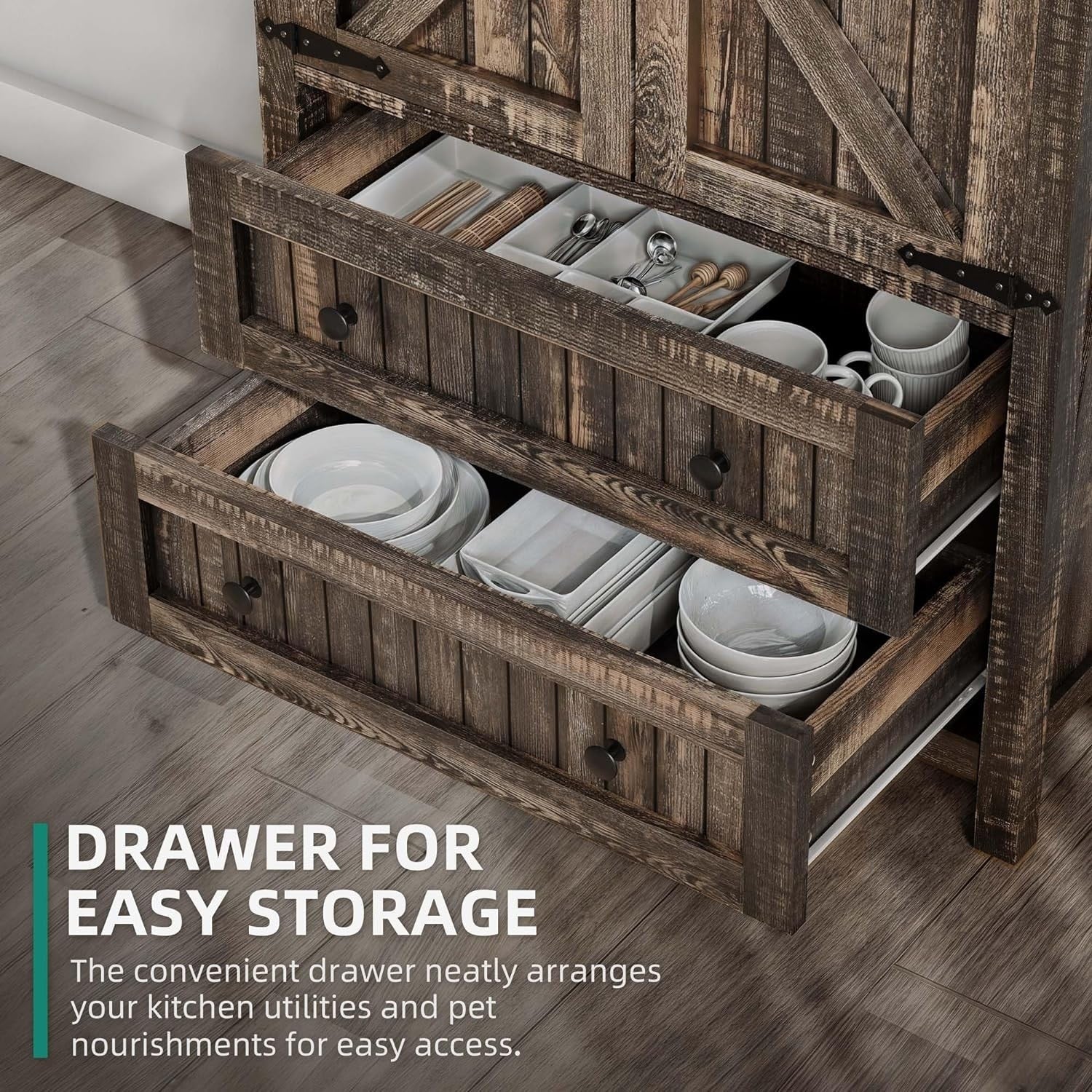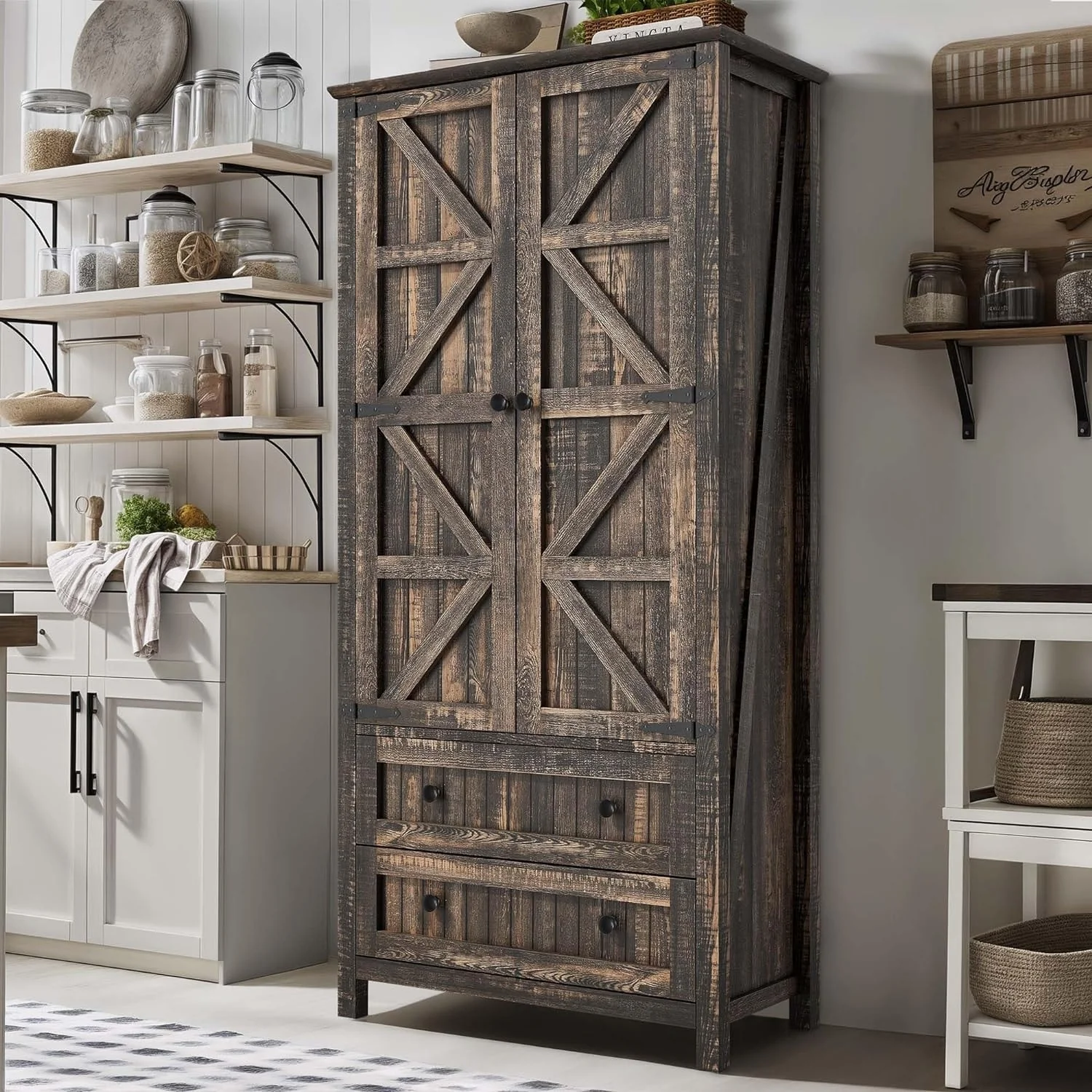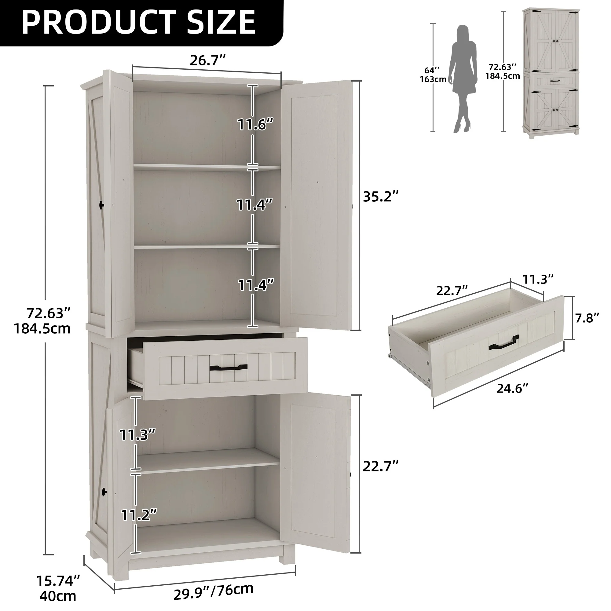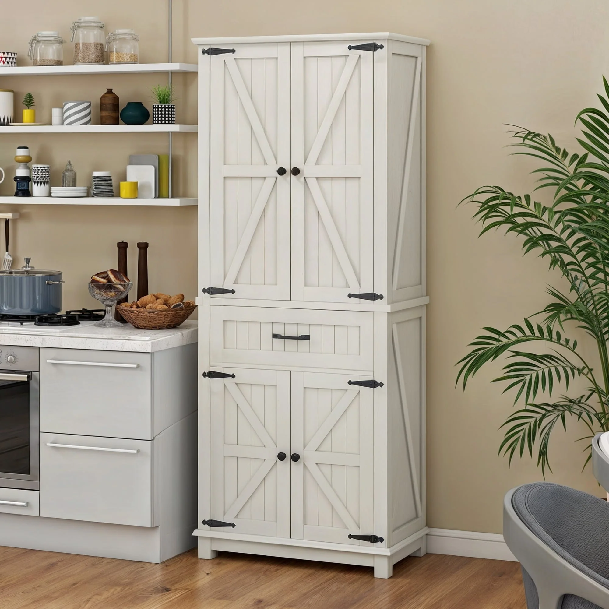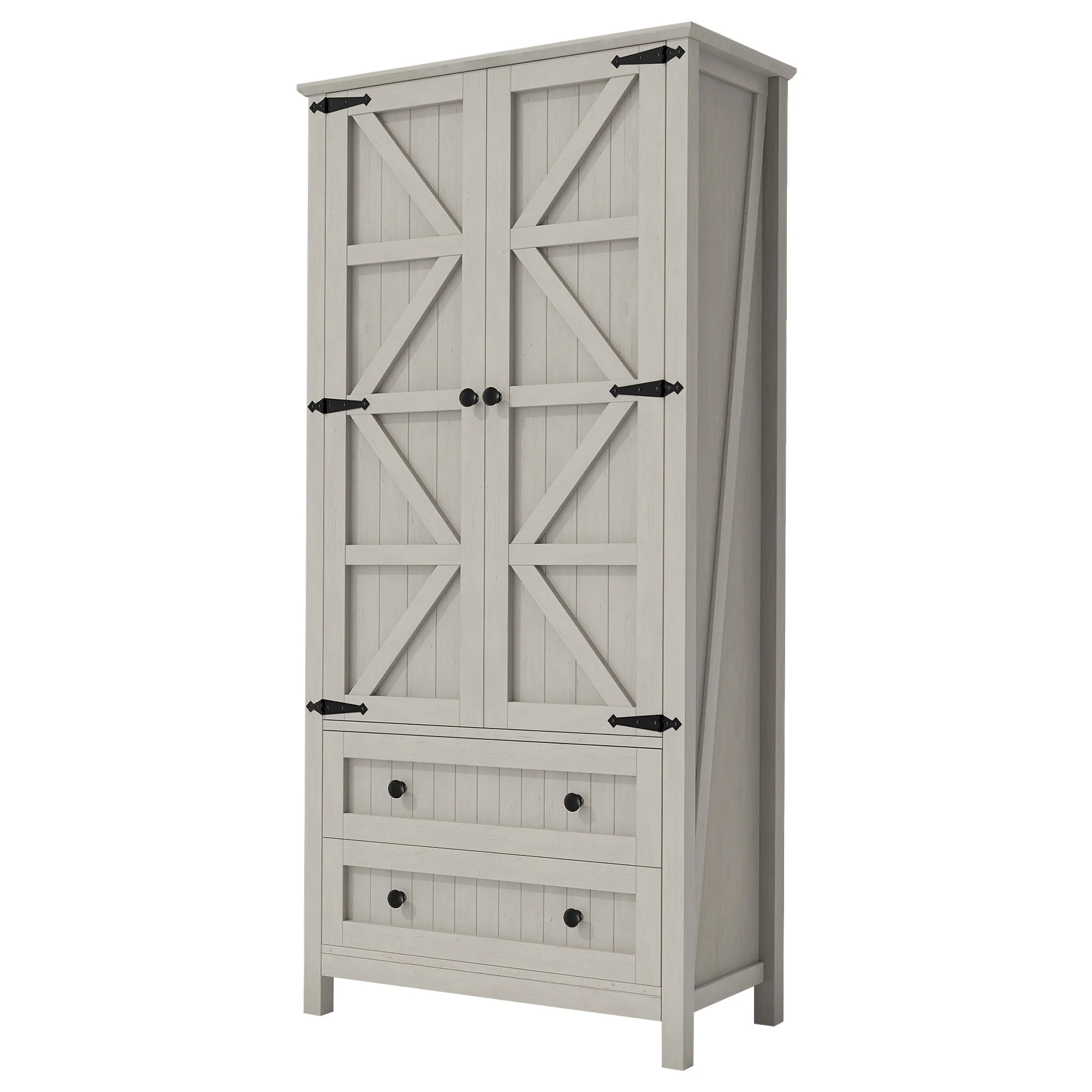 Moasis 64" Farmhouse Tall Kitchen Pantry Storage Cabinet with 2 Drawers & Doors