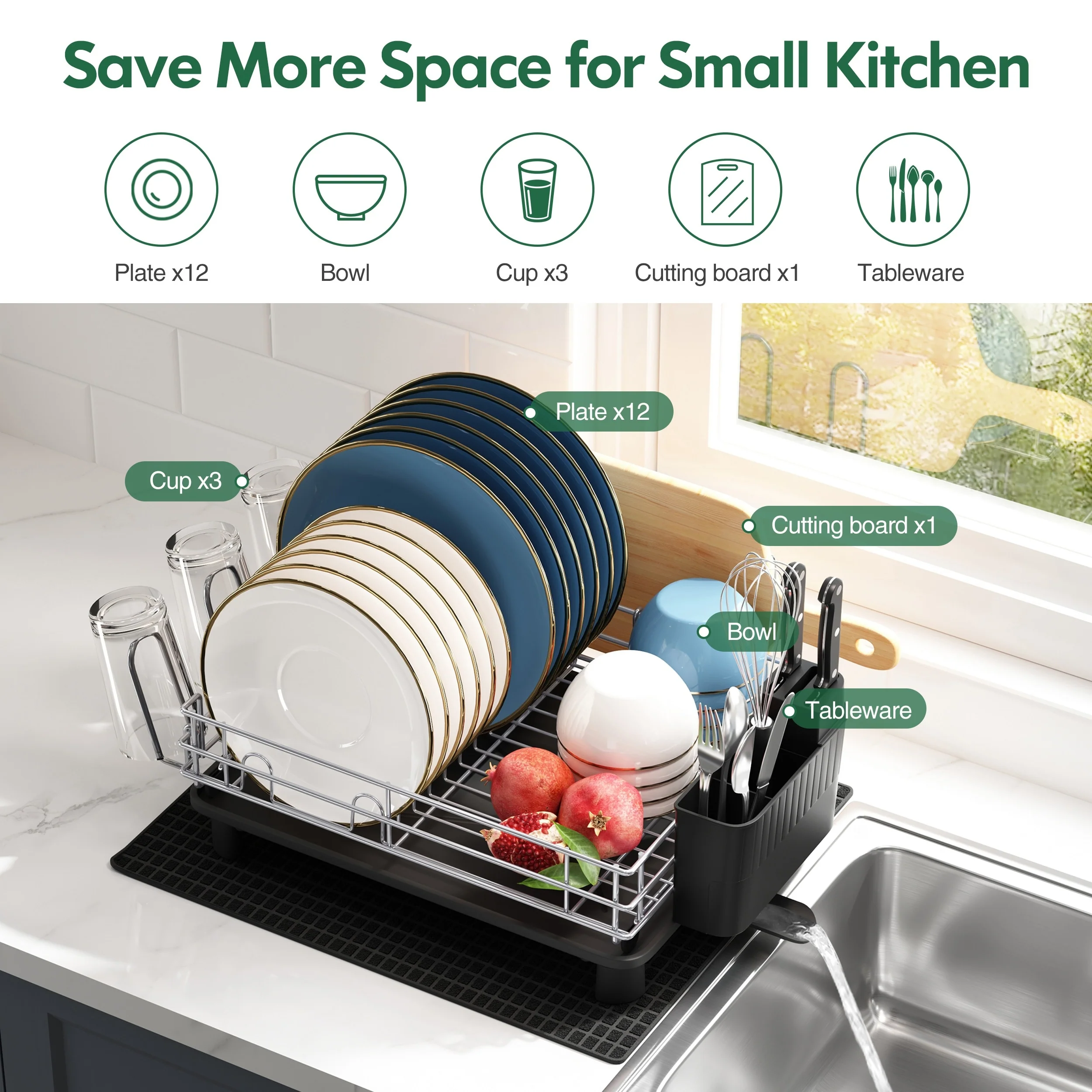 Foldable Countertop Dish Drying Rack with Drainer - 16.5" x 13.8"