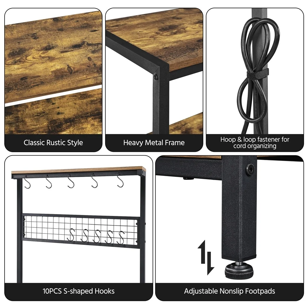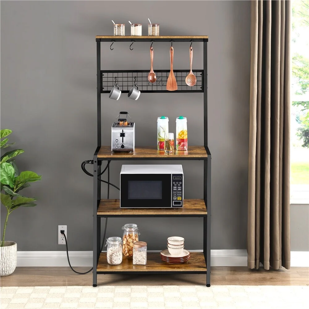 Yaheetech Kitchen Baker's Rack with Outlet Rustic Utility Storage Shelf Unit, Rustic Brown