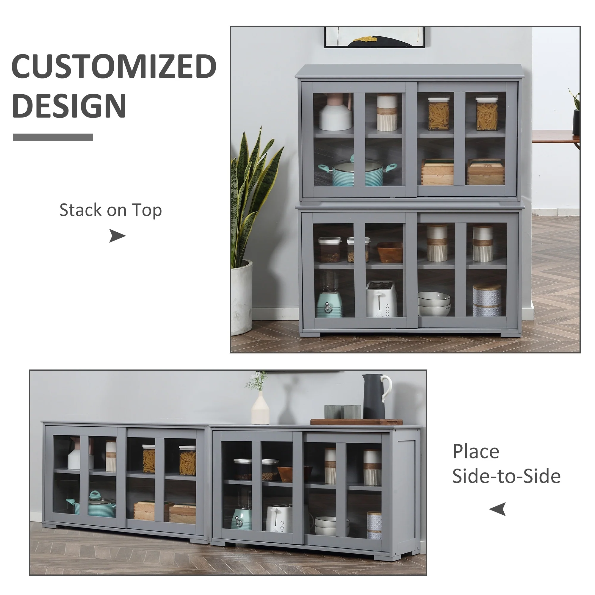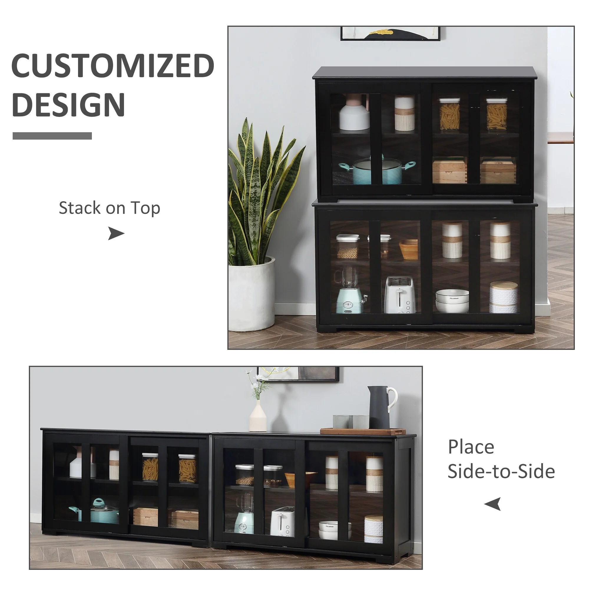 HOMCOM Modern Kitchen Sideboard, Stackable Storage Cabinet, Sliding Glass Door Console, Cupboard Serving Buffet for Kitchen