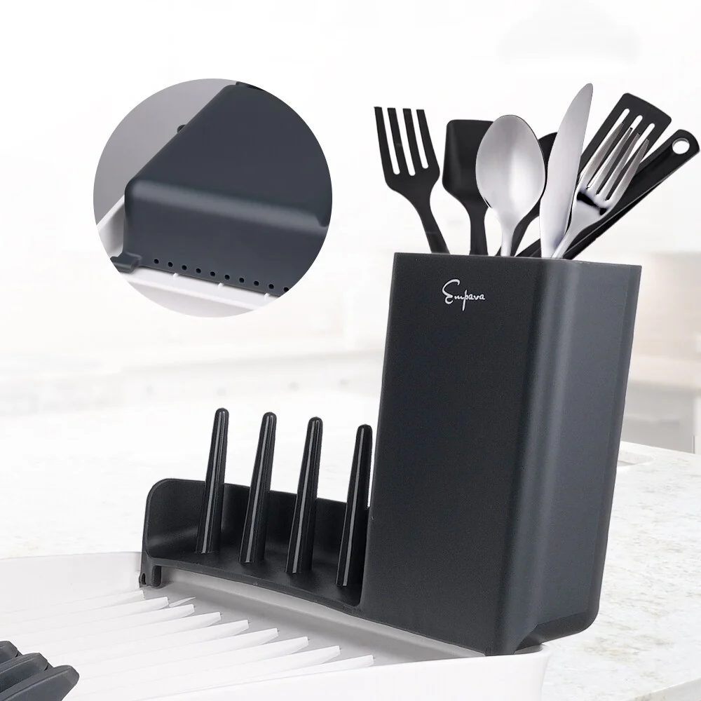 Cheer Collection Utensil Organizer Caddy and Drying Rack with Drip Tray - 4.72 x 5 x 7.48