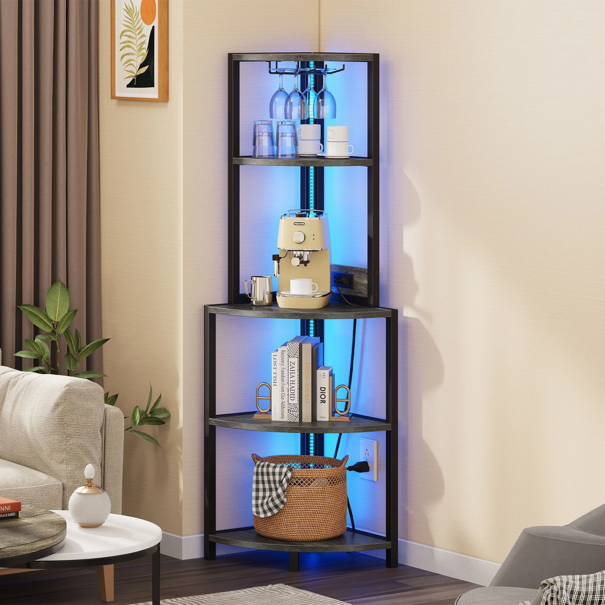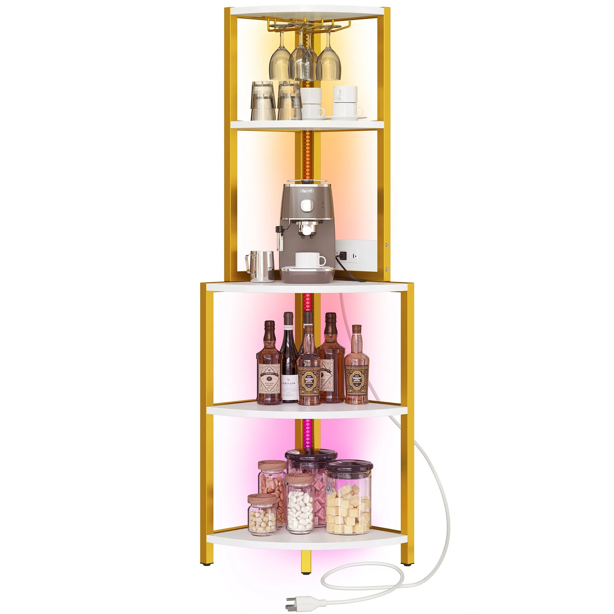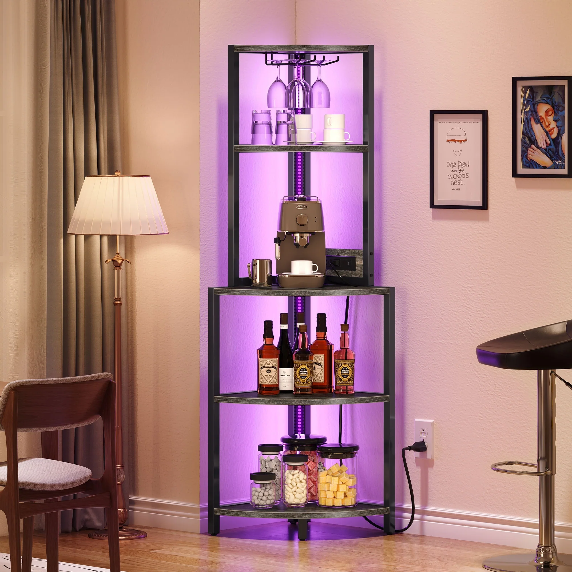 Moasis Freestanding Corner Wine Rack with Glass Holder and Storage Shelf