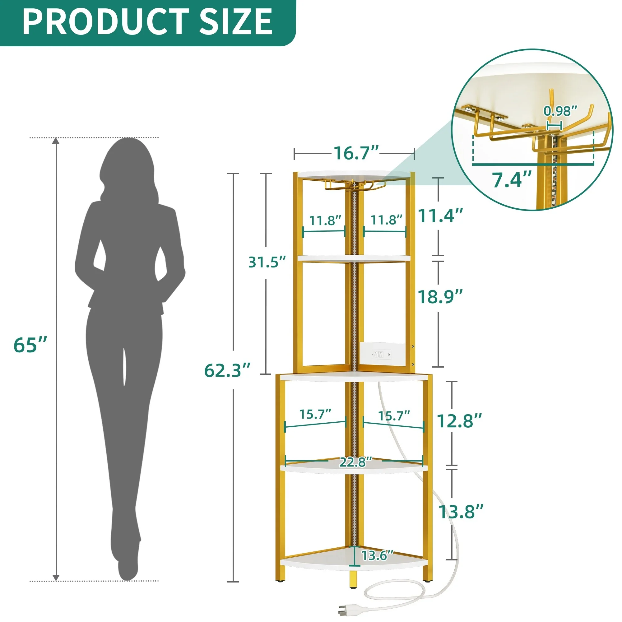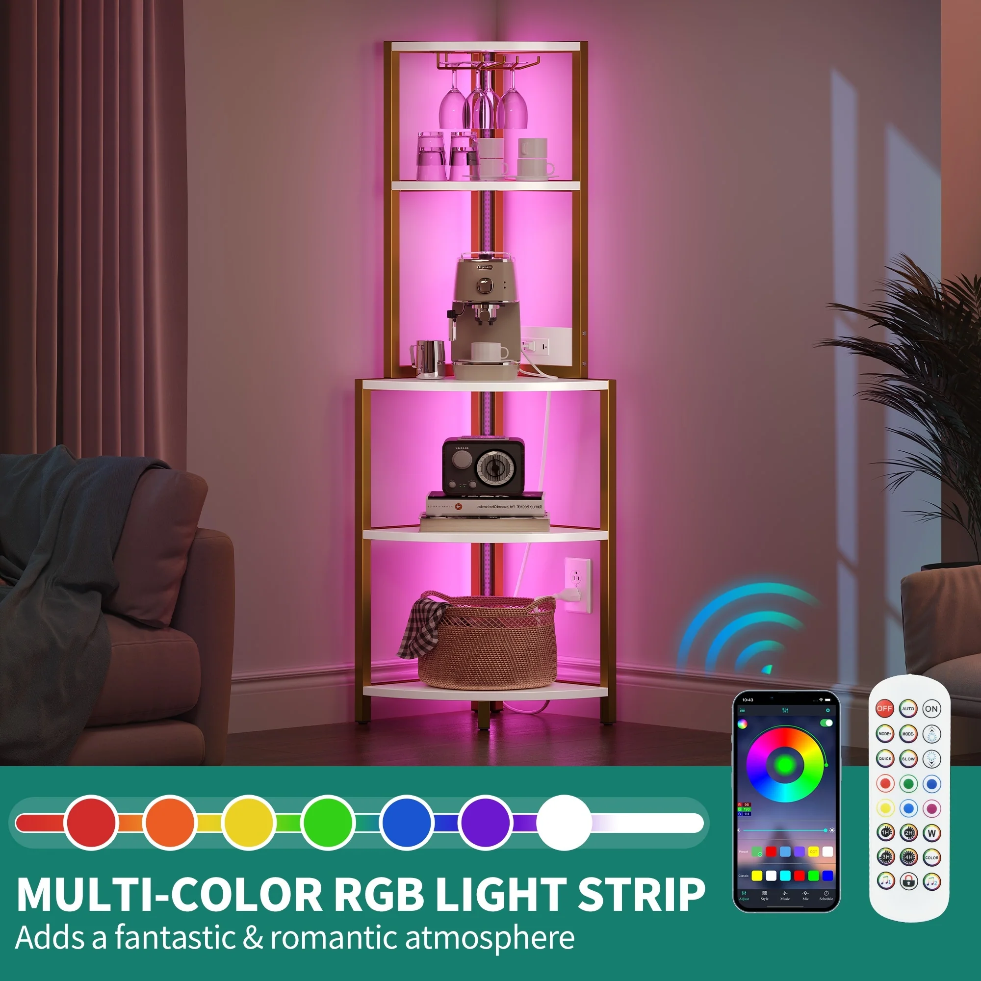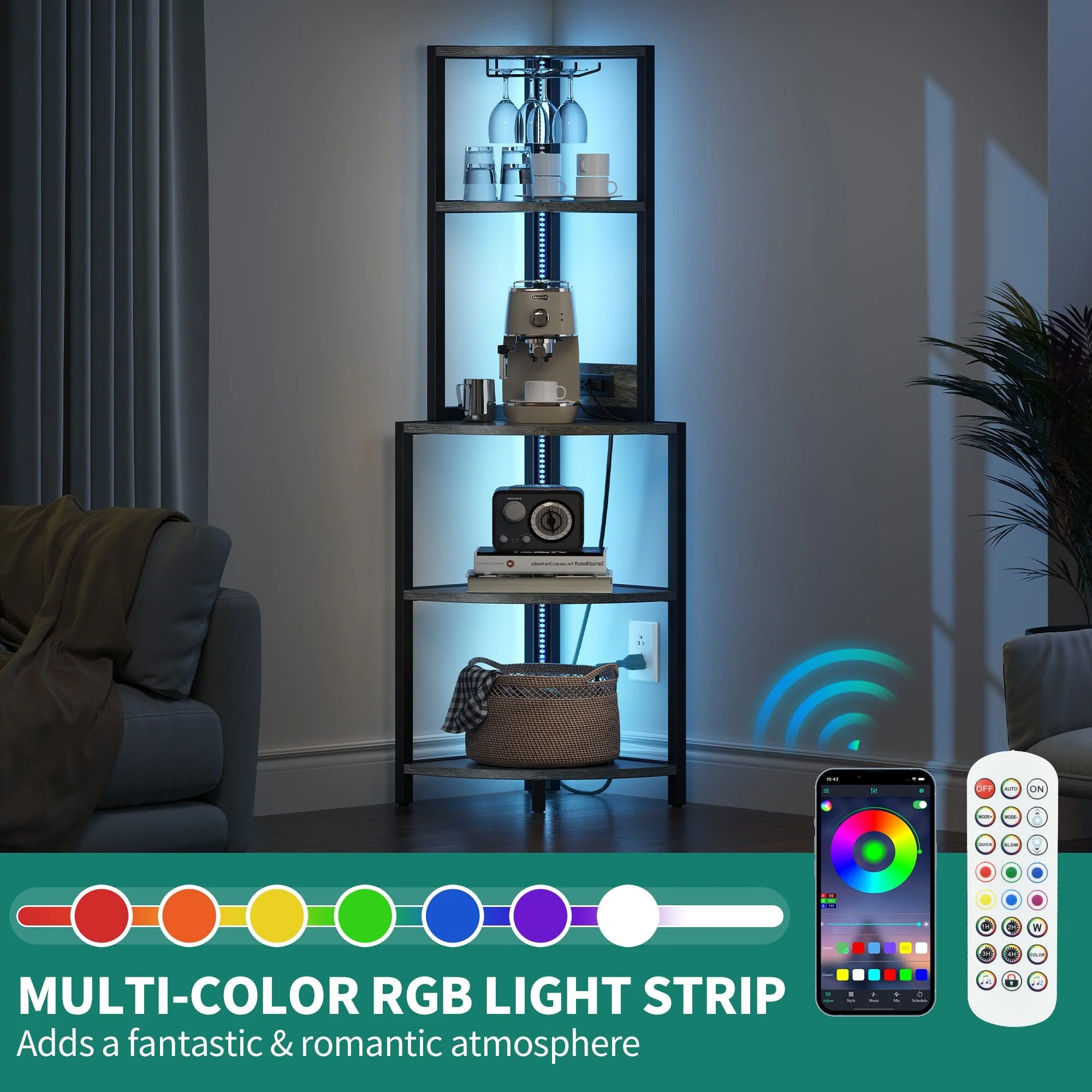 Moasis Freestanding Corner Wine Rack with Glass Holder and Storage Shelf