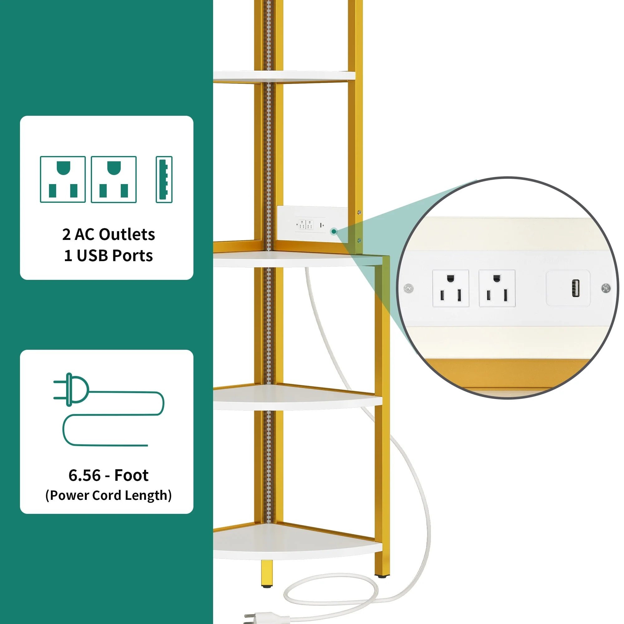 Kitchen Bakers Rack with Power Outlets, High Utility Storage Shelves Microwave Stand with Drawers