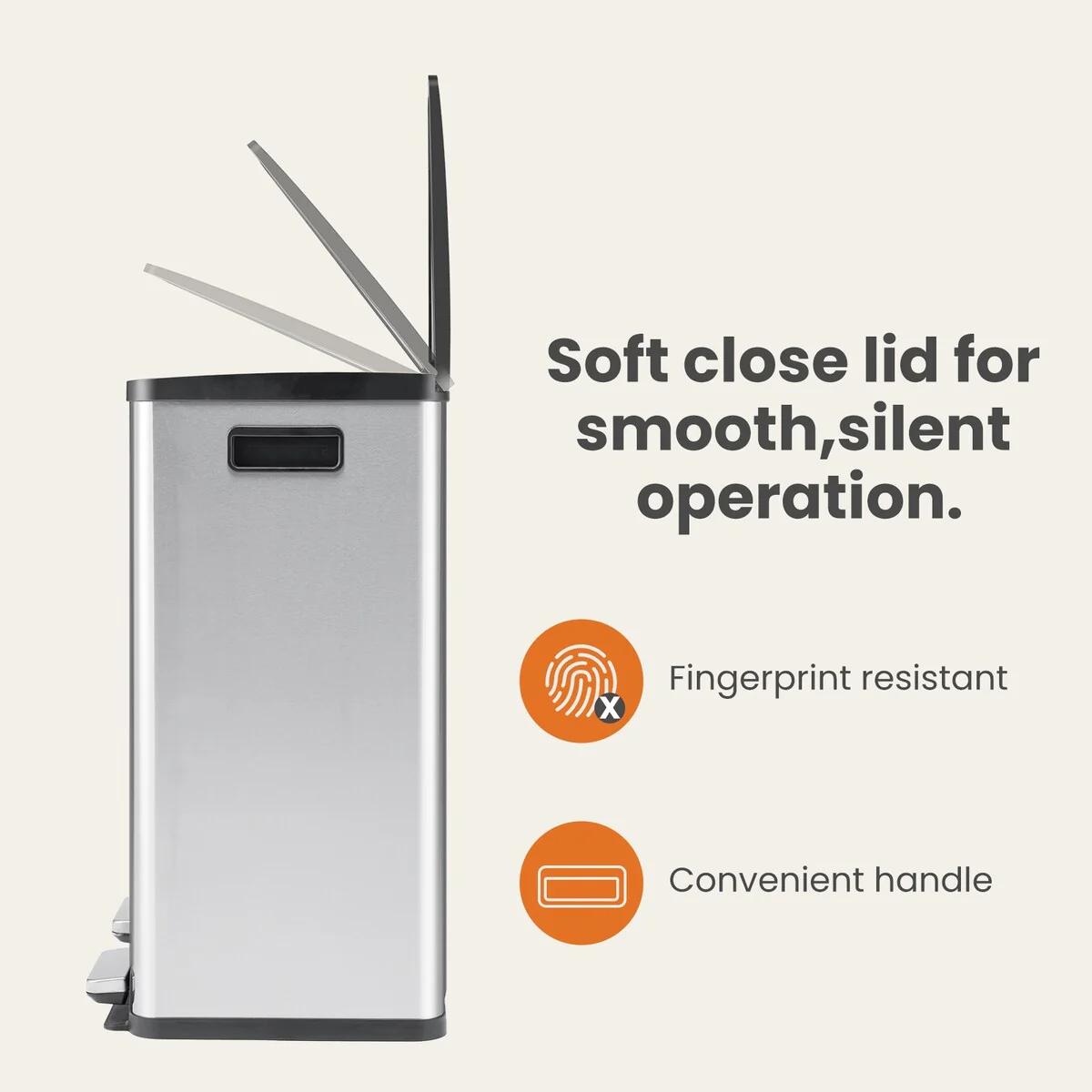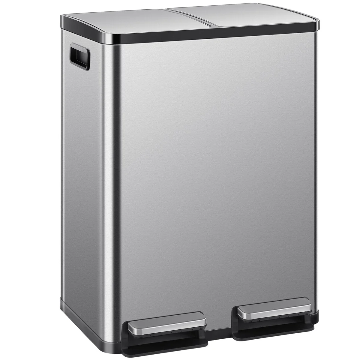 Large 60 Liter Stainless Steel Trash Can, Dual Compartment Plastic Inner Bucket (2 x 8 Gallon)