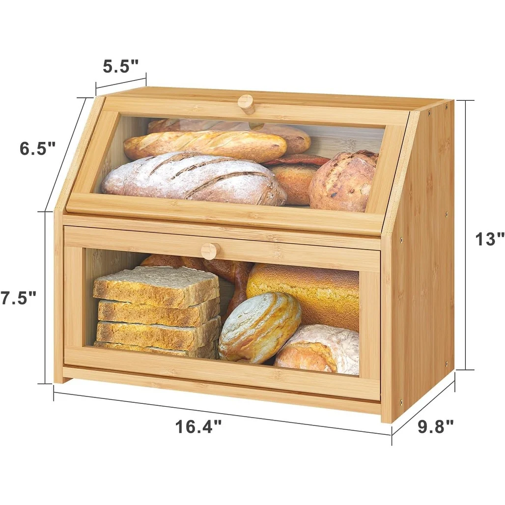 Bamboo Wood Large Capacity Bread Box Storage Bin