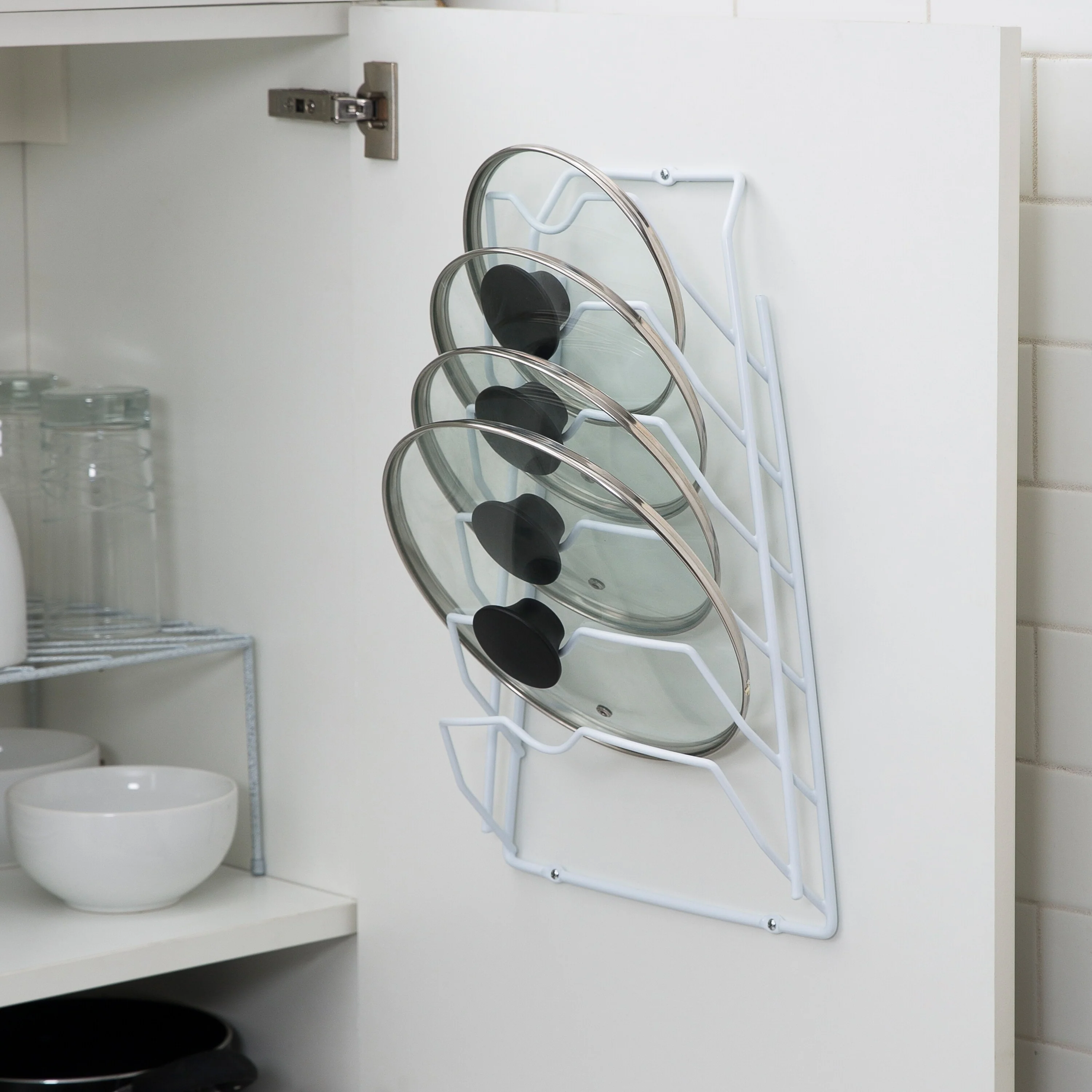 Organize It All 6 Section Cabinet Door Lid Rack in White - 10.62 x 4.00 x 16.62"