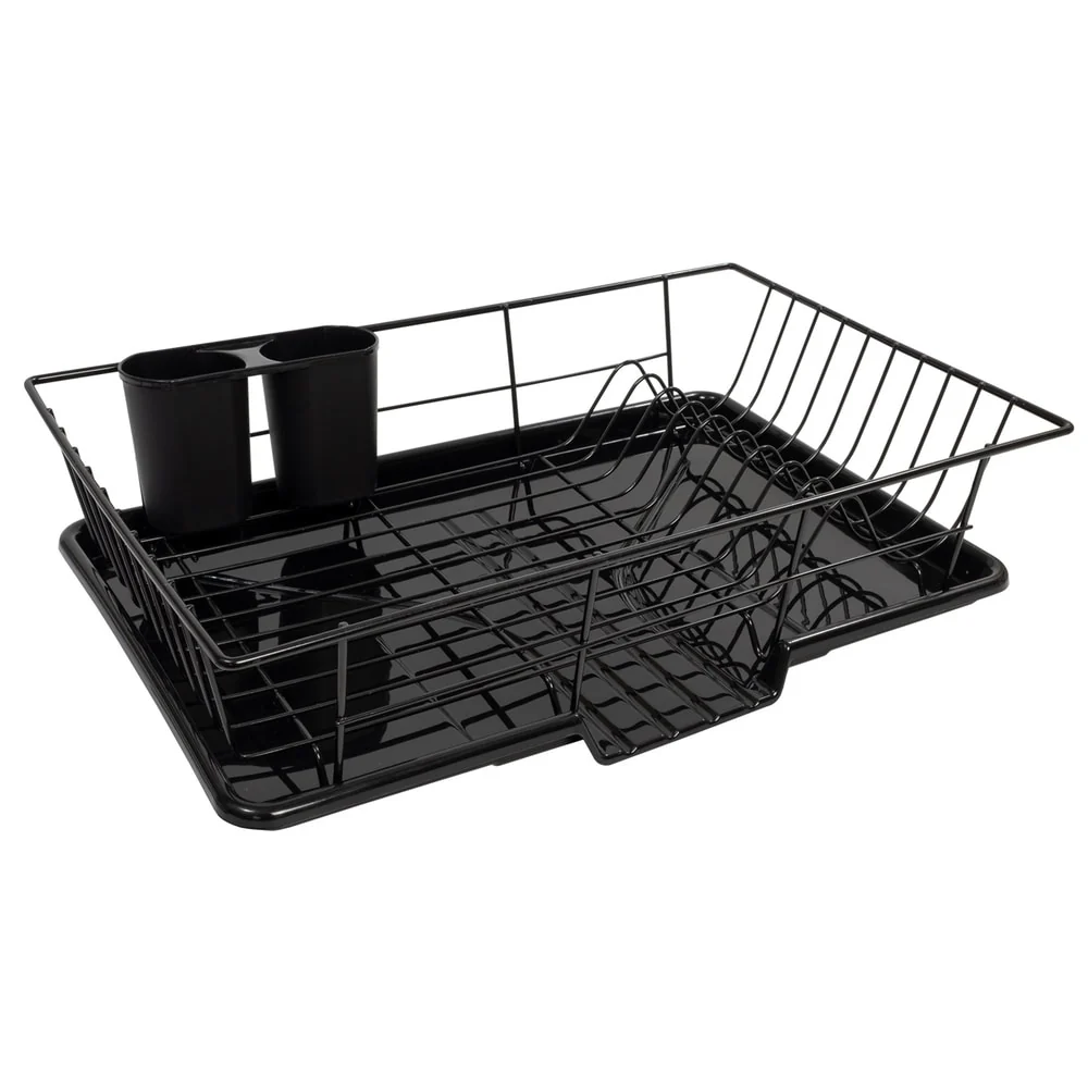 Sweet Home Collection 3-Piece Kitchen Sink Dish Drainer Set Black