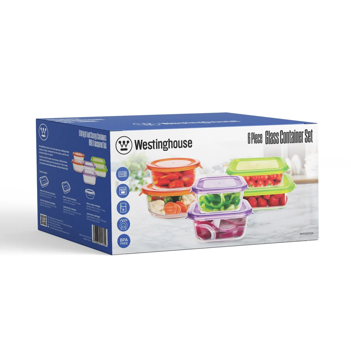 12pc Glass Food Storage Set - 370ml, 640ml, 320ml, 520ml, 400ml & 650ml