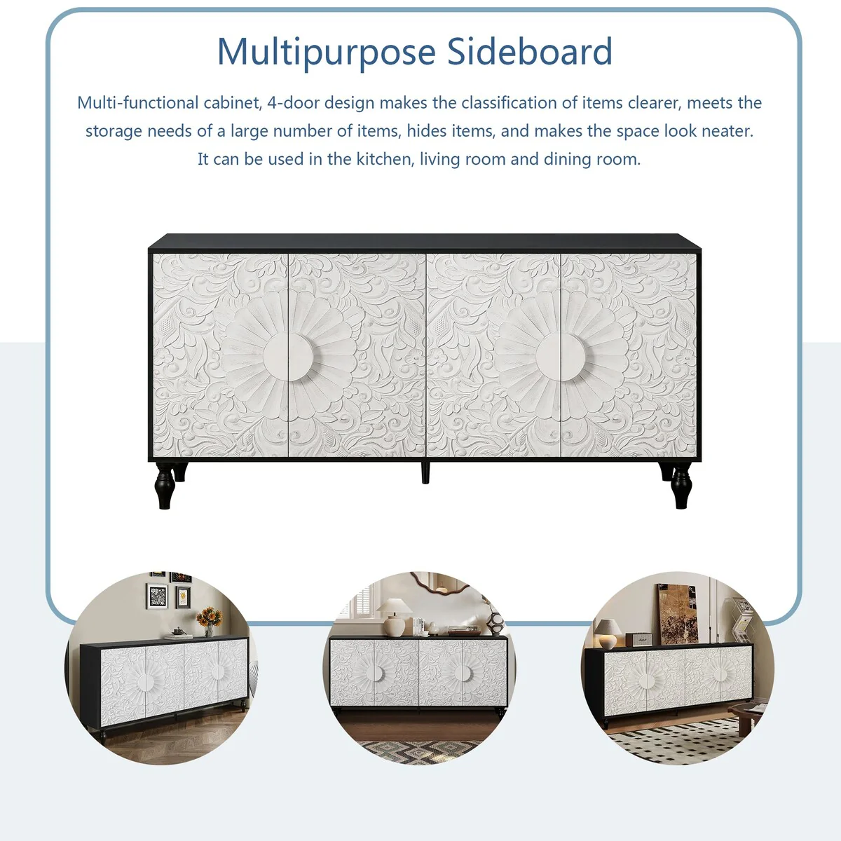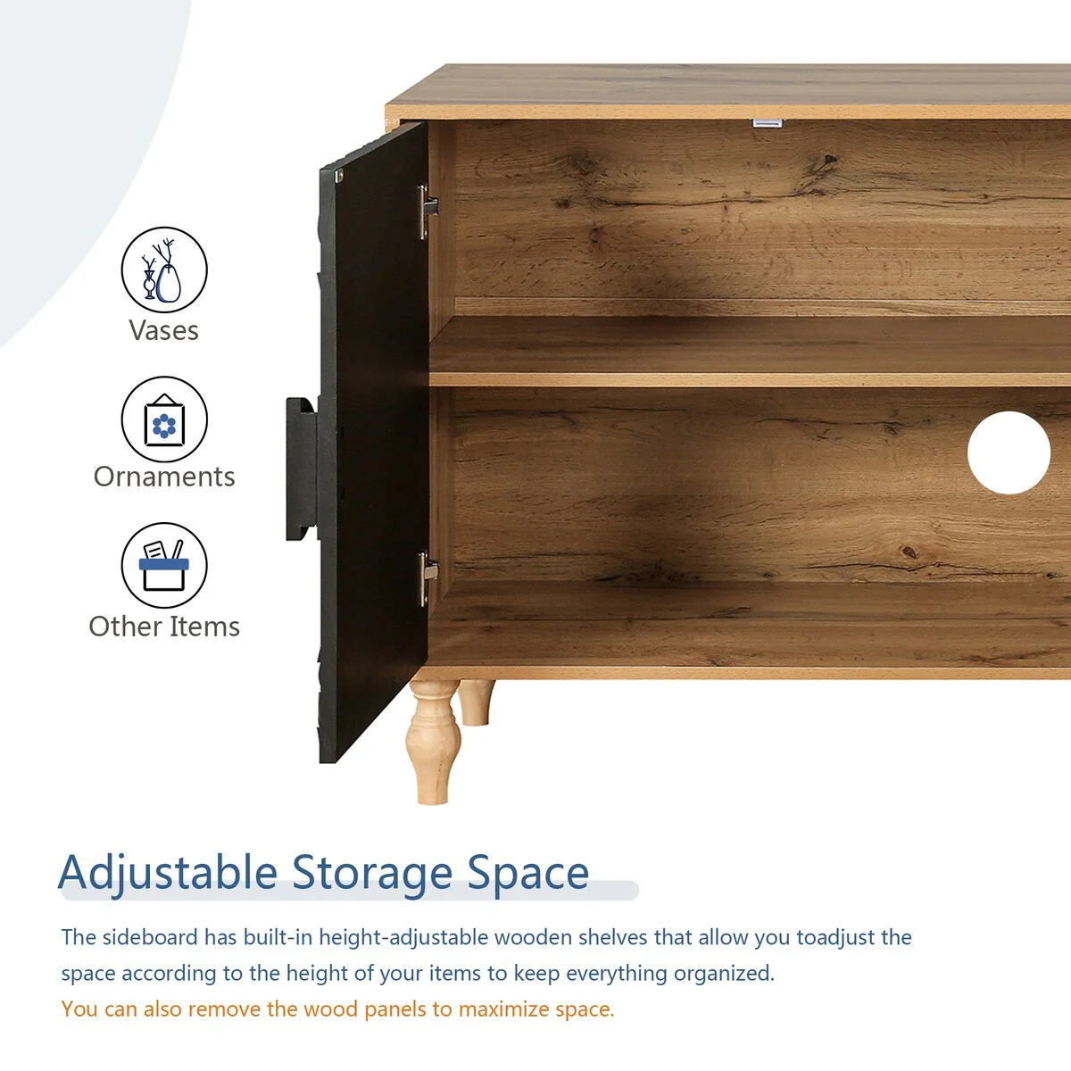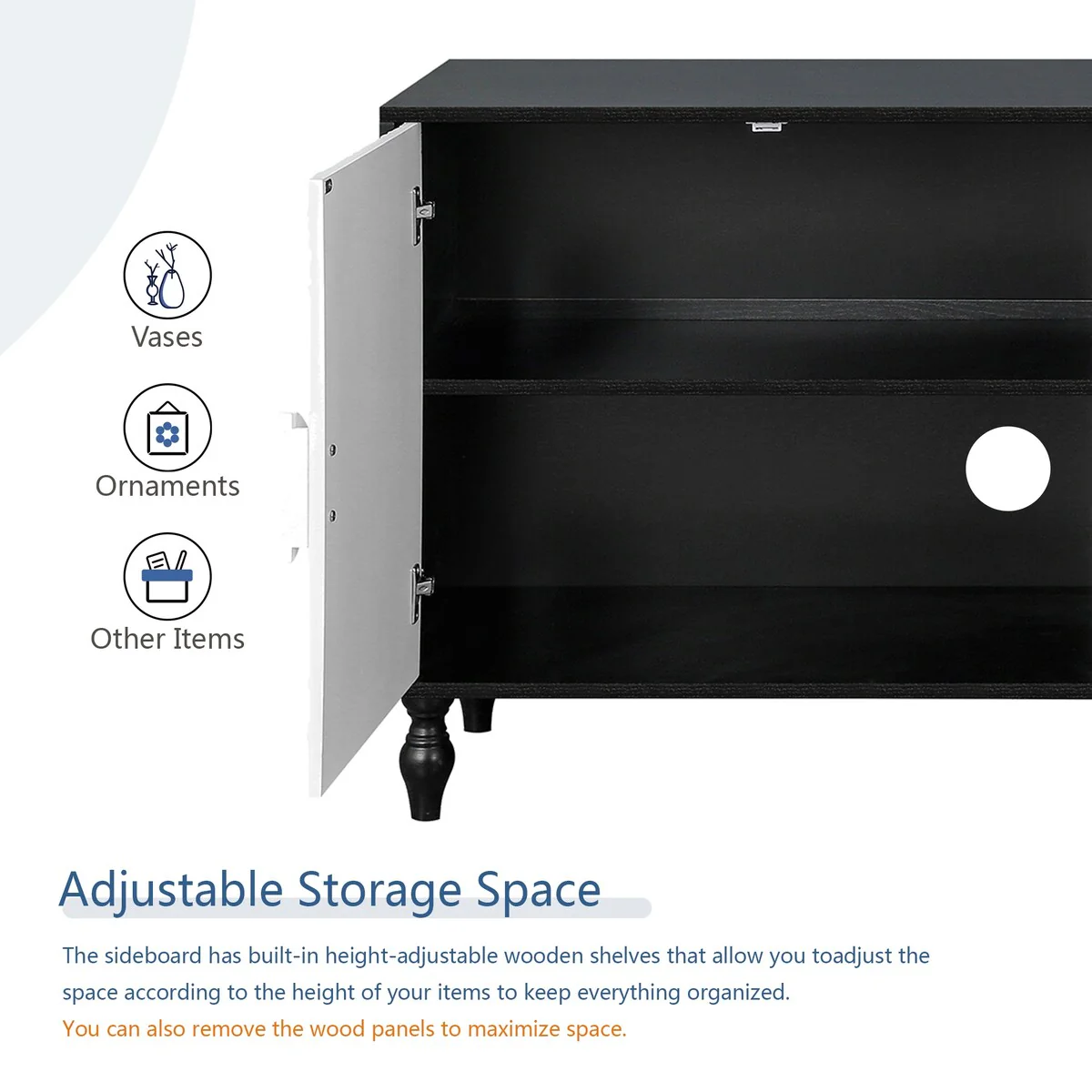 47.2''W Sideboard with Gold Handles and Adjustable Dividers - N/A