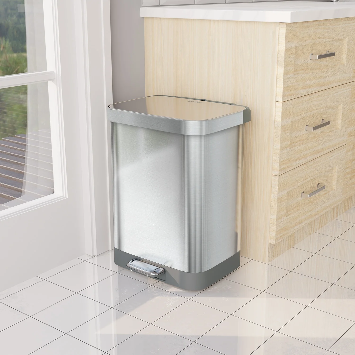 Glad All Stainless Steel Step-on Kitchen Trash Can