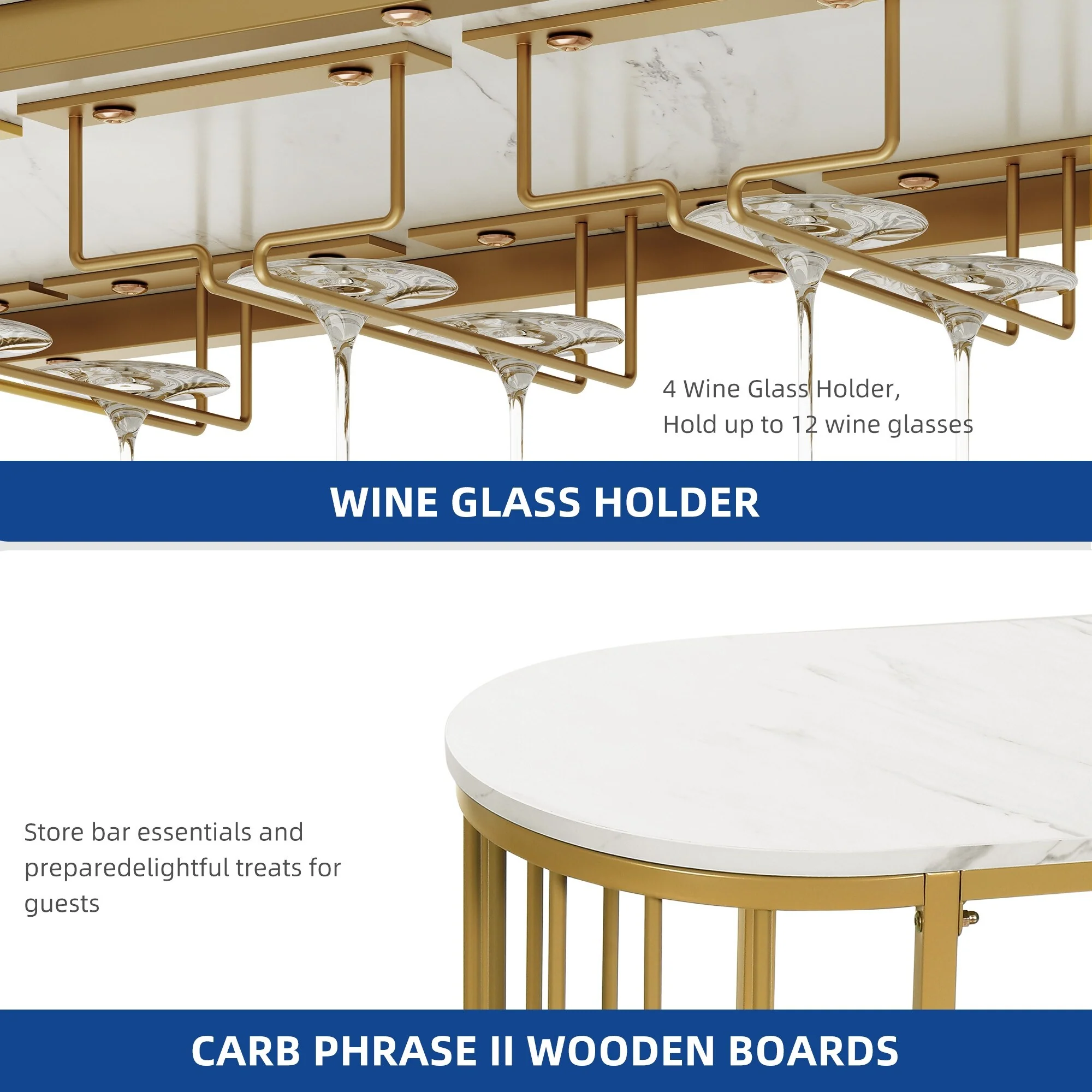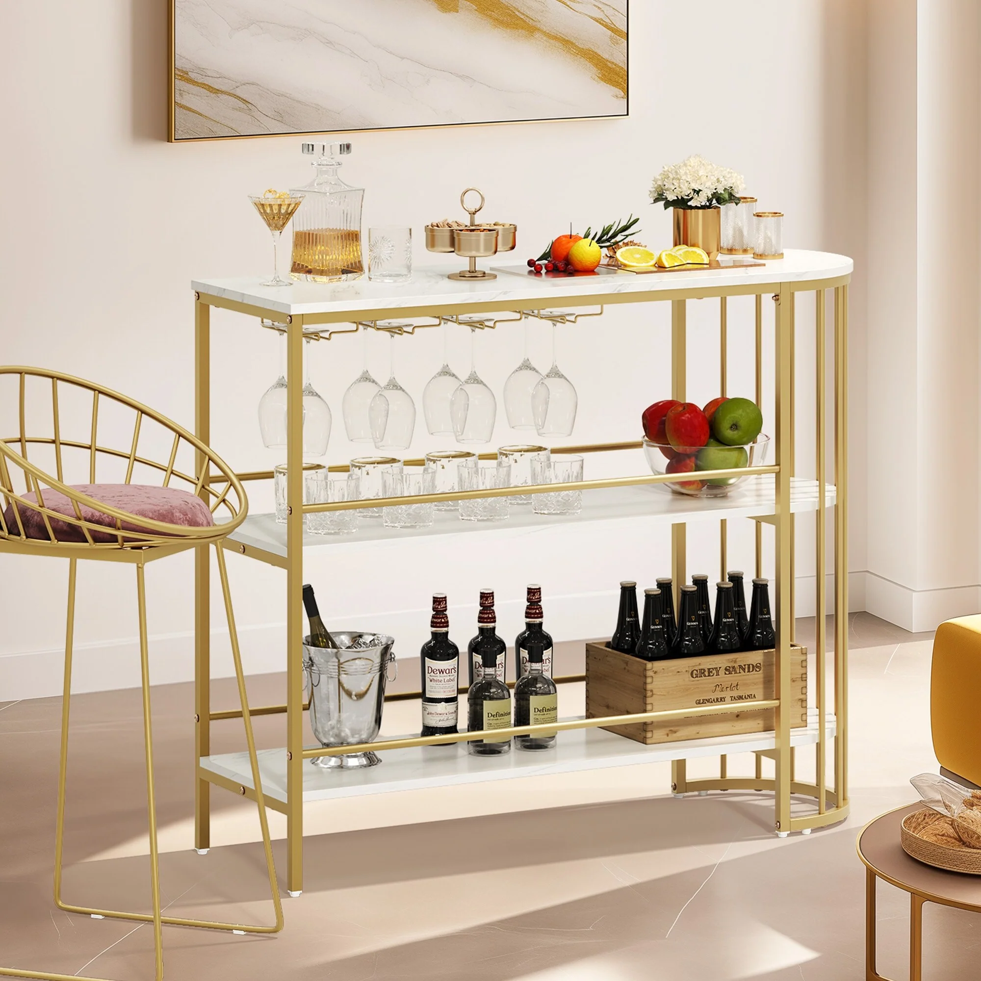 Moasis Home Bar Unit 3-Tier Liquor Bar Table with Glass Holder