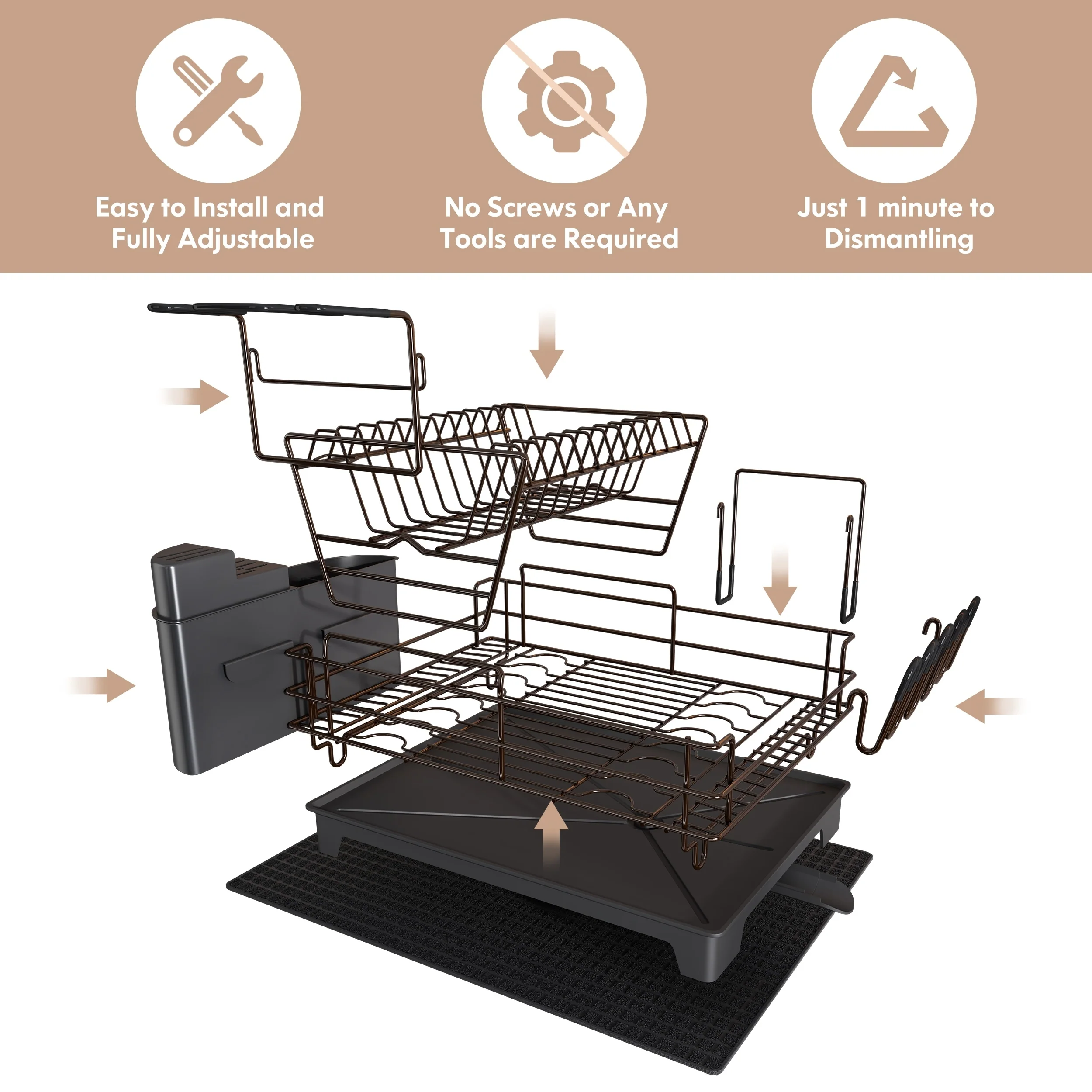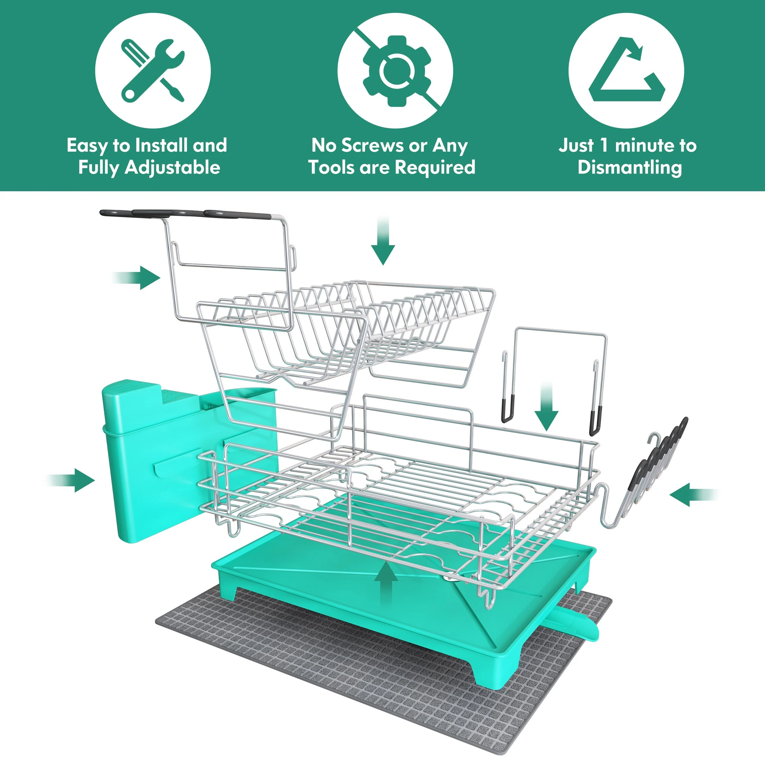 JASIWAY 2 Tier Kitchen Stainless Steel Dish Rack