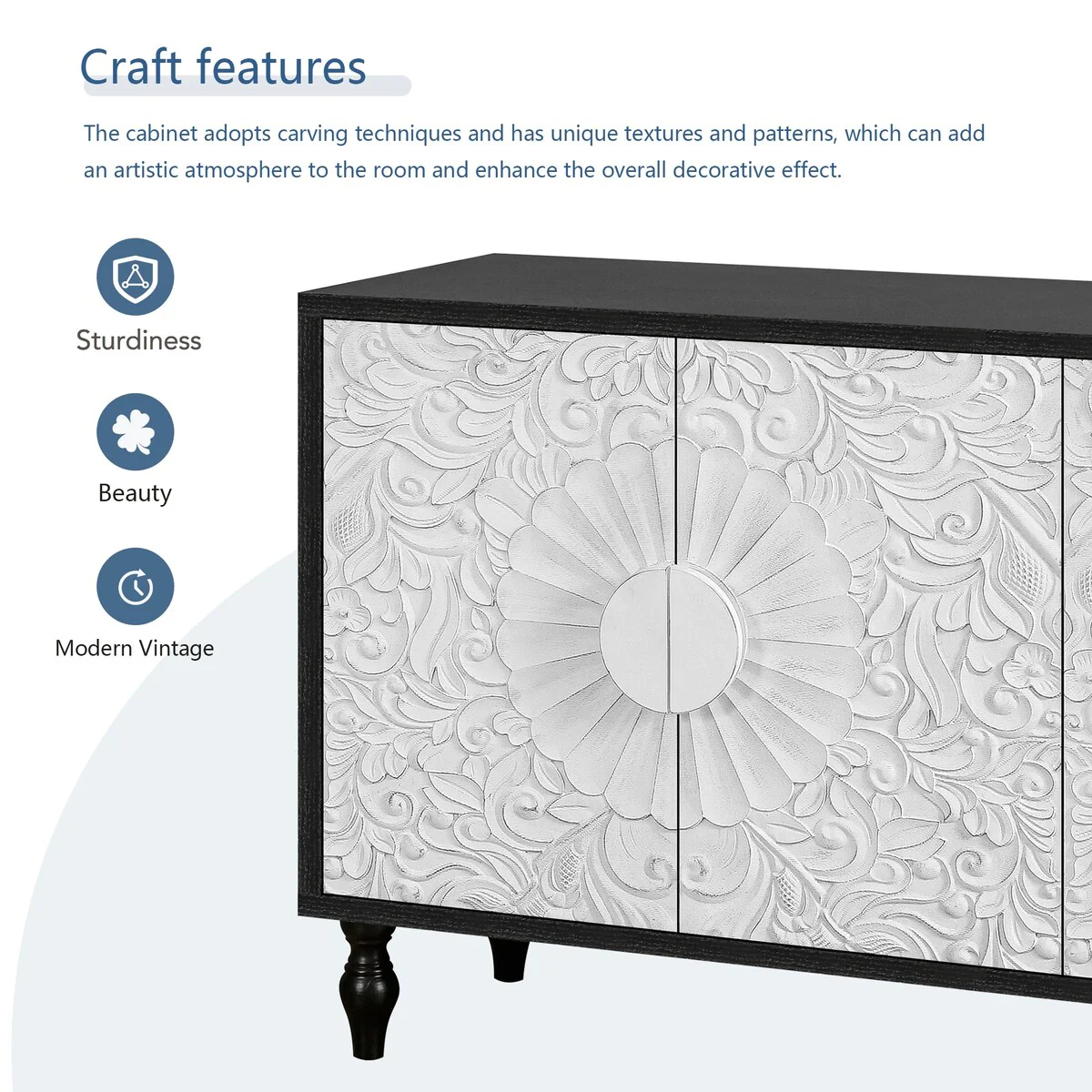 Carved Symmetrical Design Door And Wood Coloured Frame For Tv Stand Table