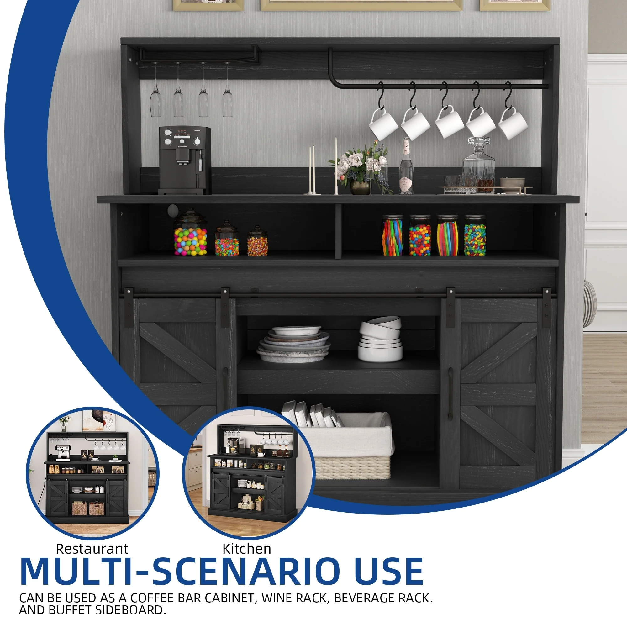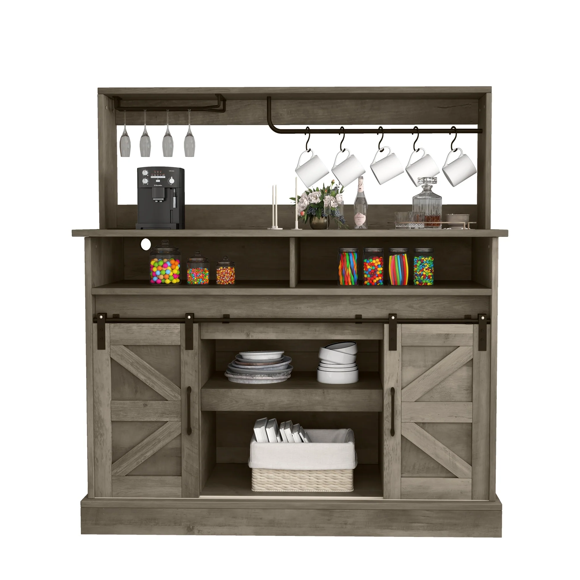 Moasis Farmhouse Coffee Bar Cabinet - 15.1"D x 47.2"W x 51.5"H