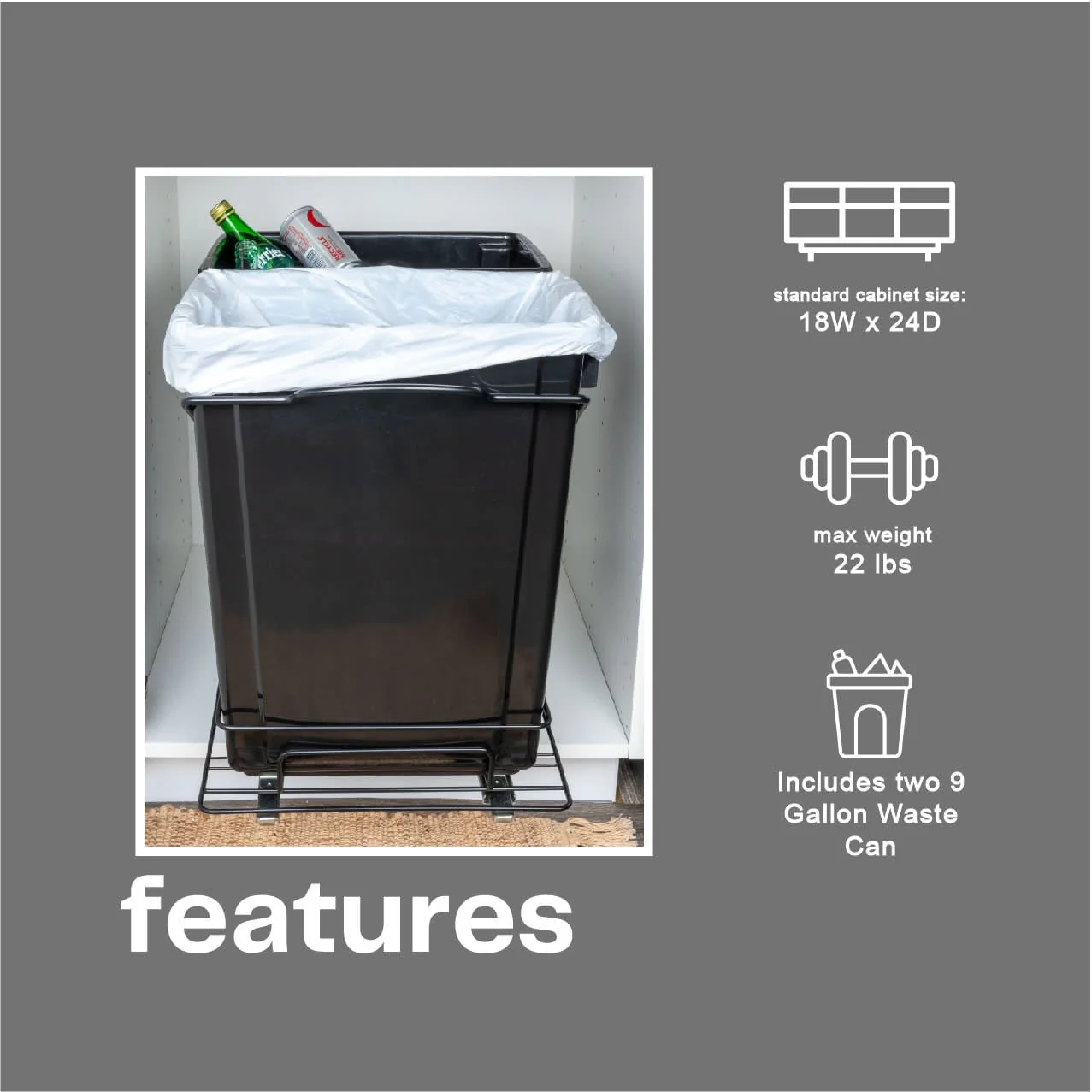 Household Essentials Chrome-Plated Steel Pull-Out/Slide-Out Double Trash Cans