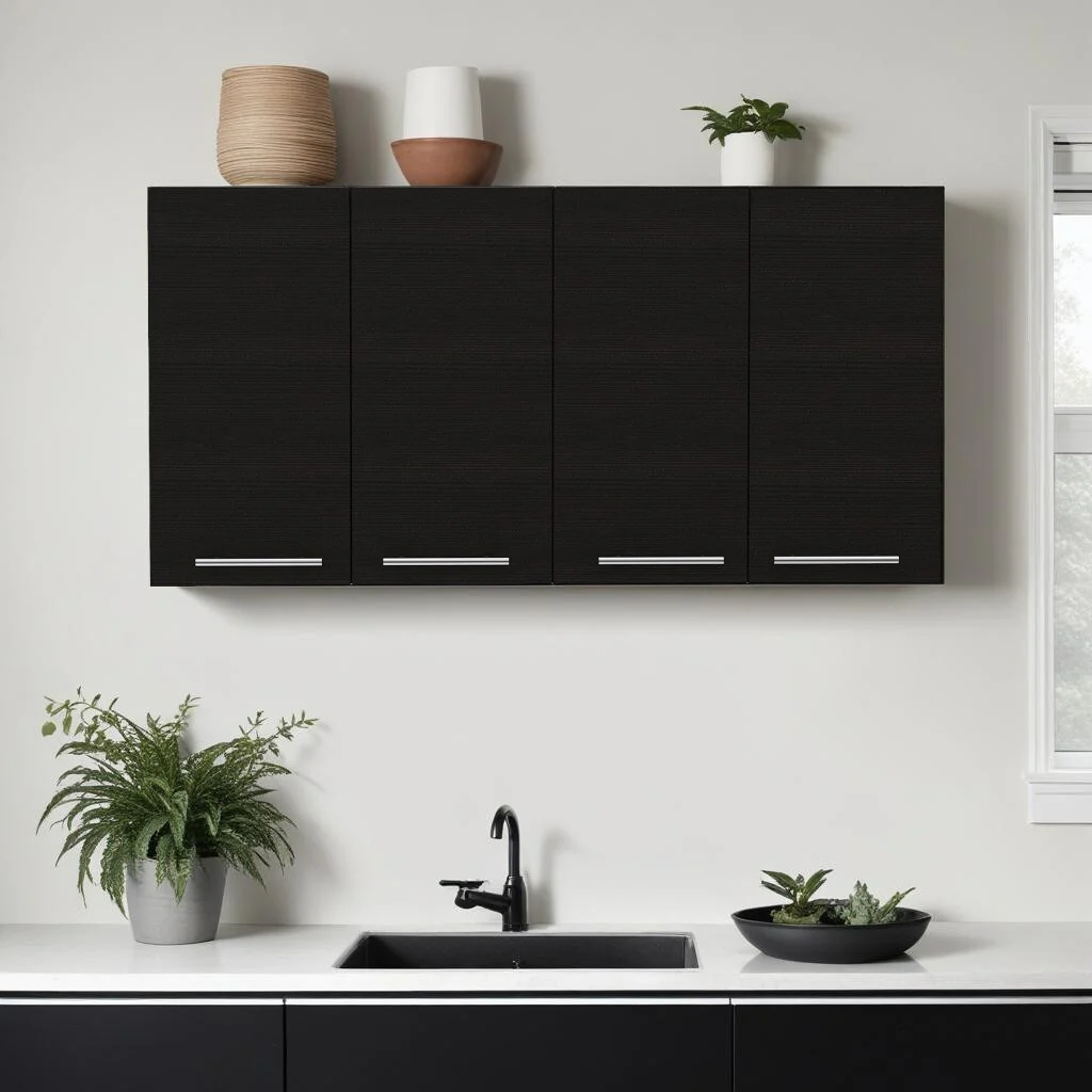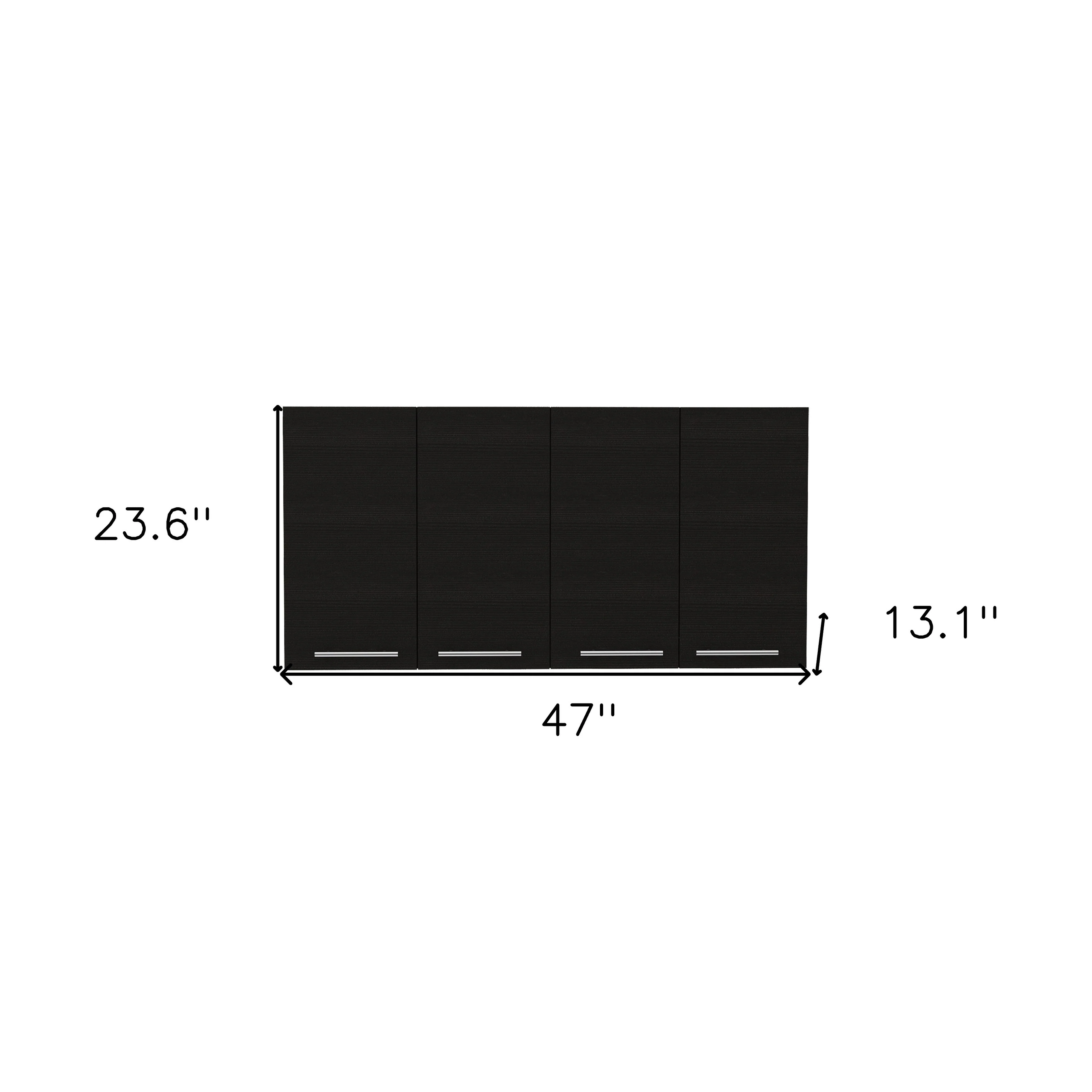 HomeRoots 47" Black Wood Wall Mounted Accent Cabinet With Four Doors