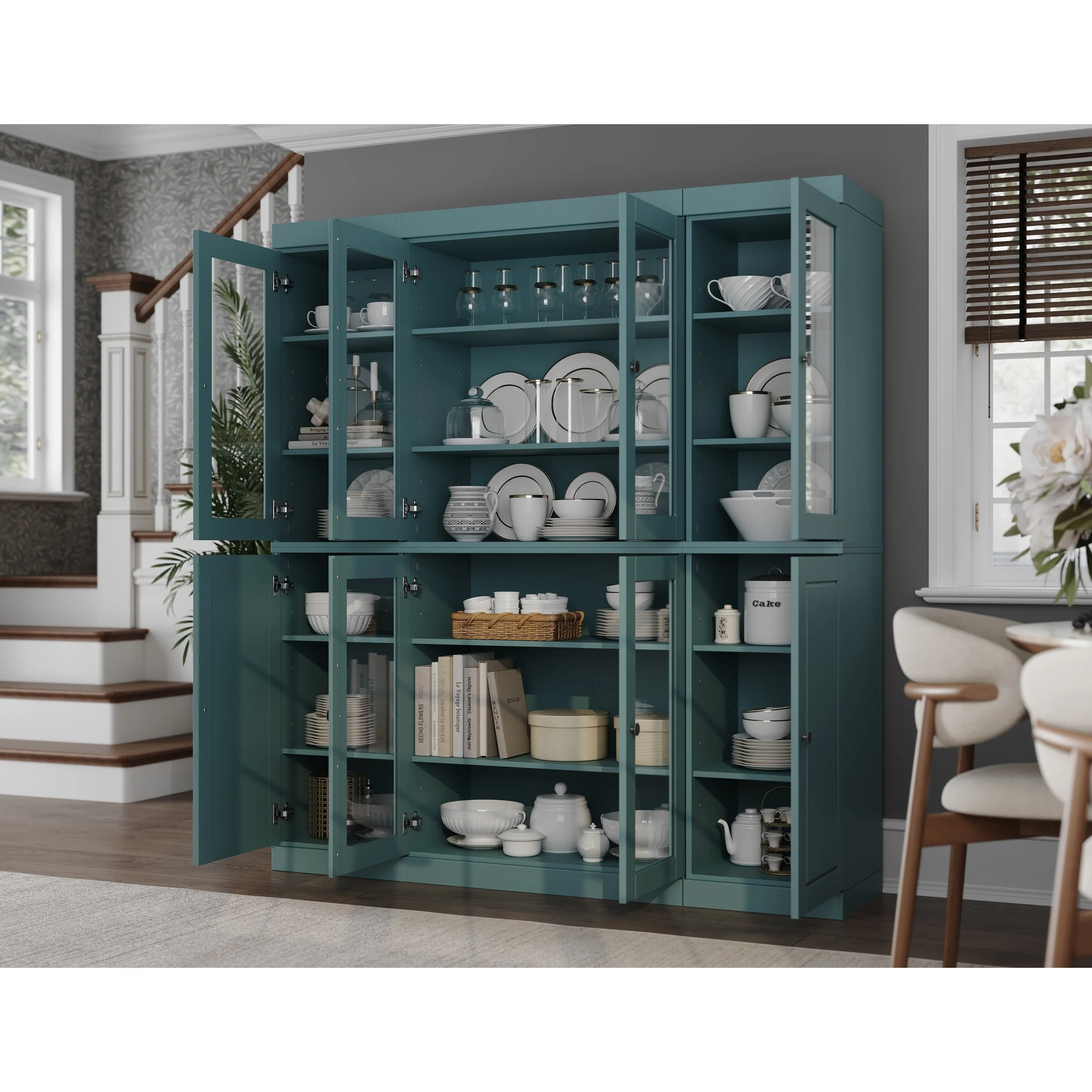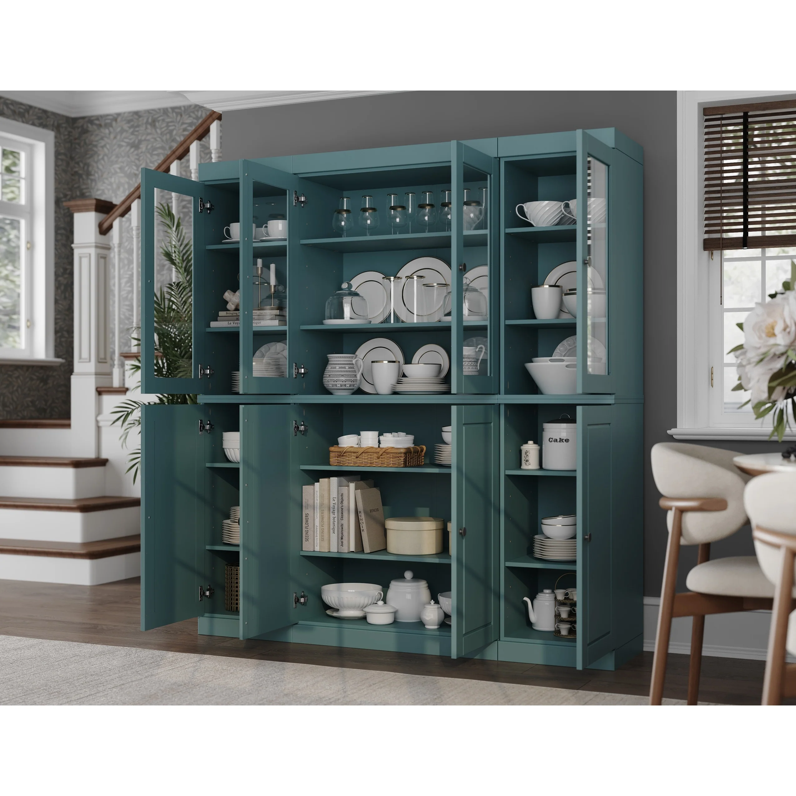 Teal Blue - 6 Clear Glass-2 Solid