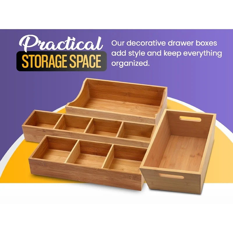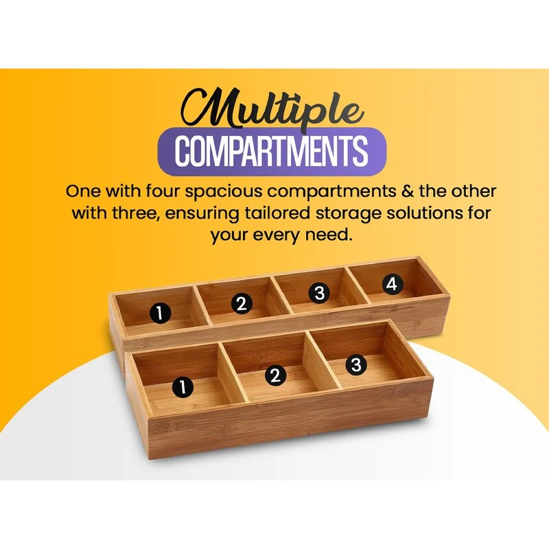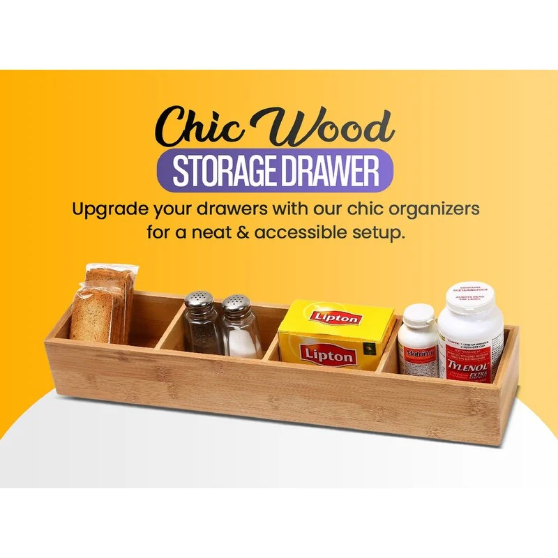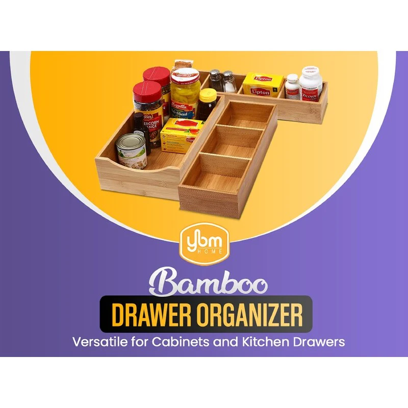 YBM HOME Bamboo 4 Compartment Organizer Tray for Drawers - 4 Compartment