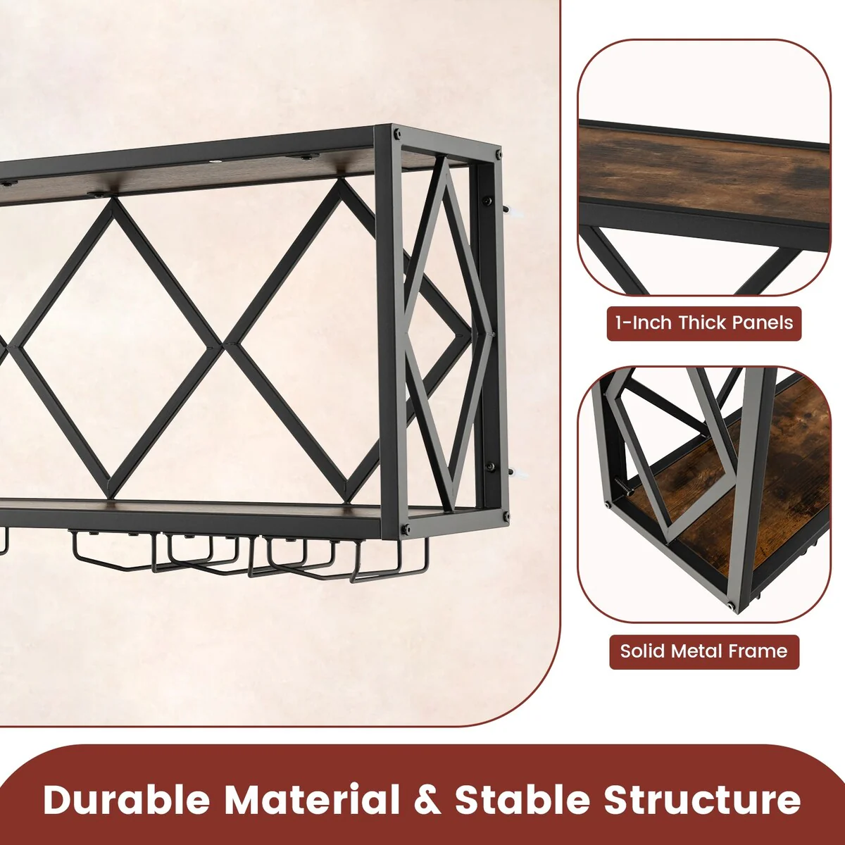 Wall Mounted Wine Rack for 39 Bottles and 12 Glasses