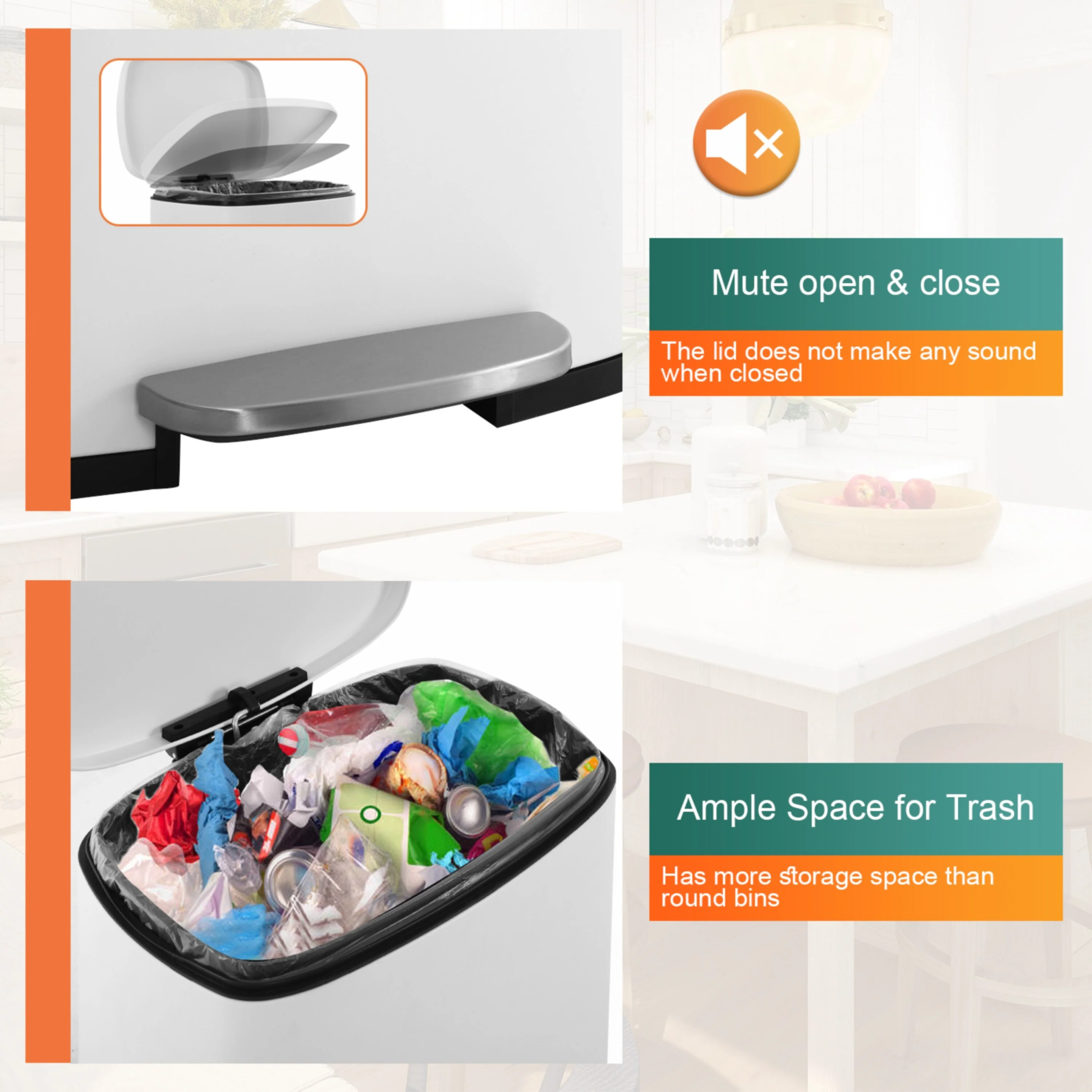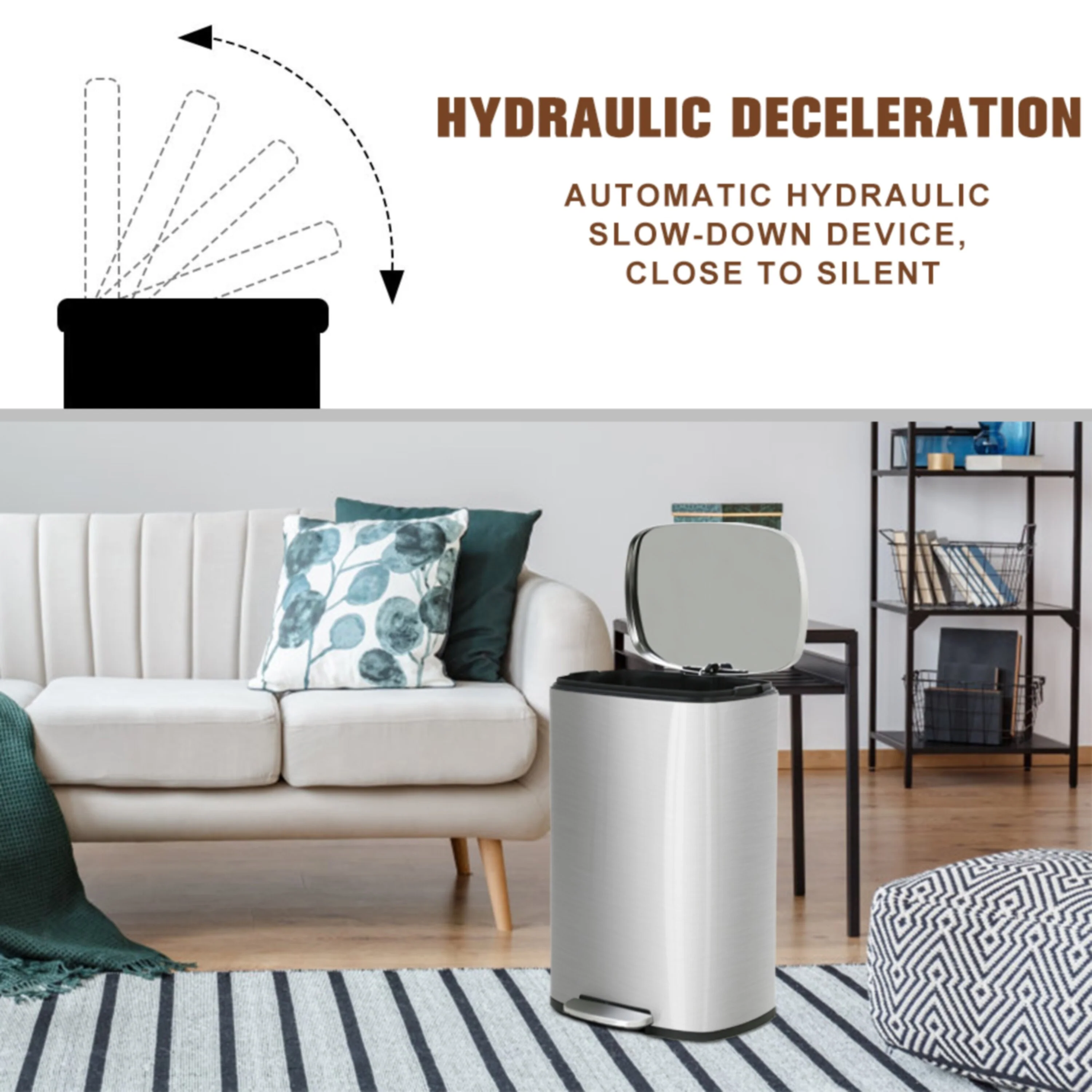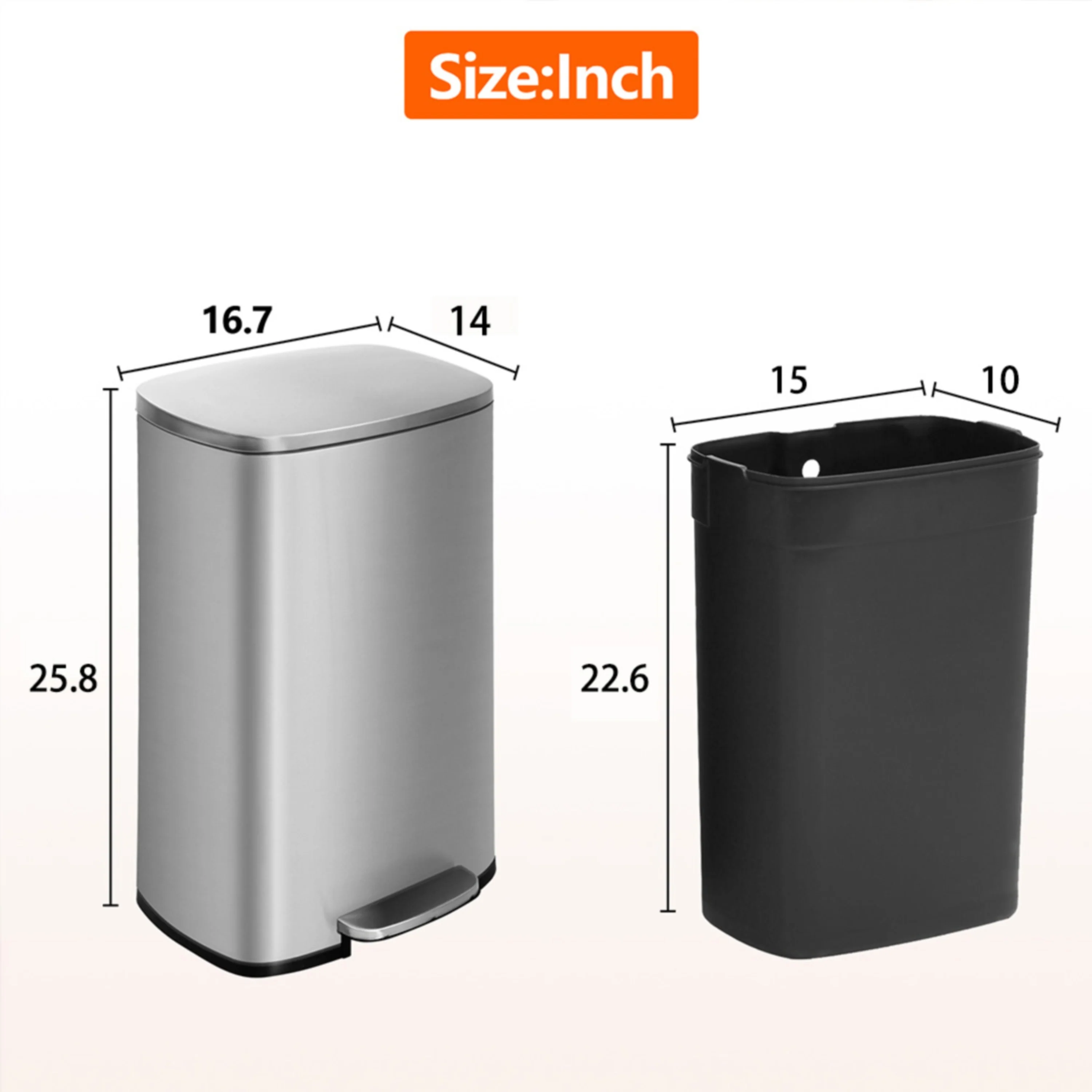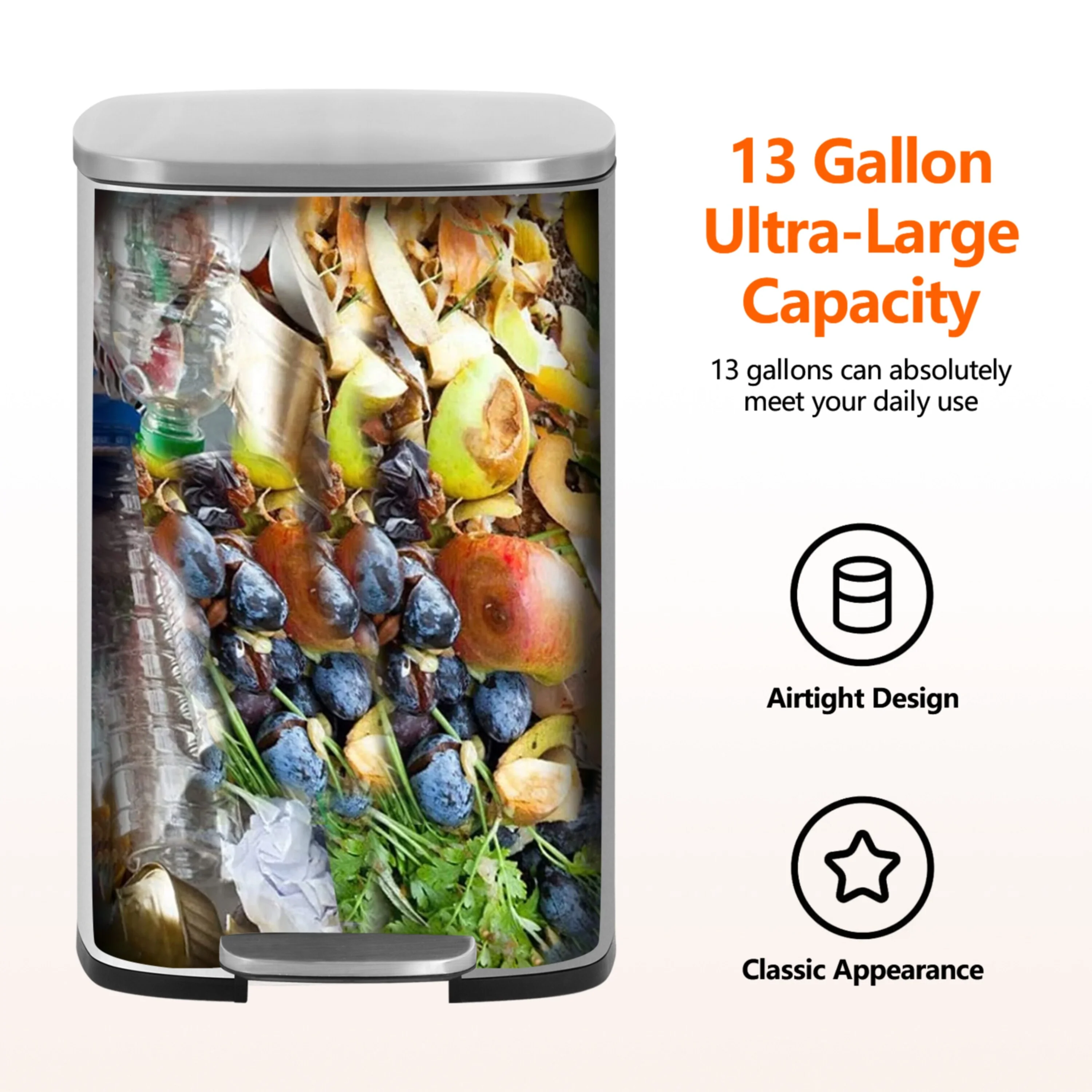 13 Gallon 50 Liter Stainless Steel Step Trash Can with Removable Inner Bucket by Furniture of America