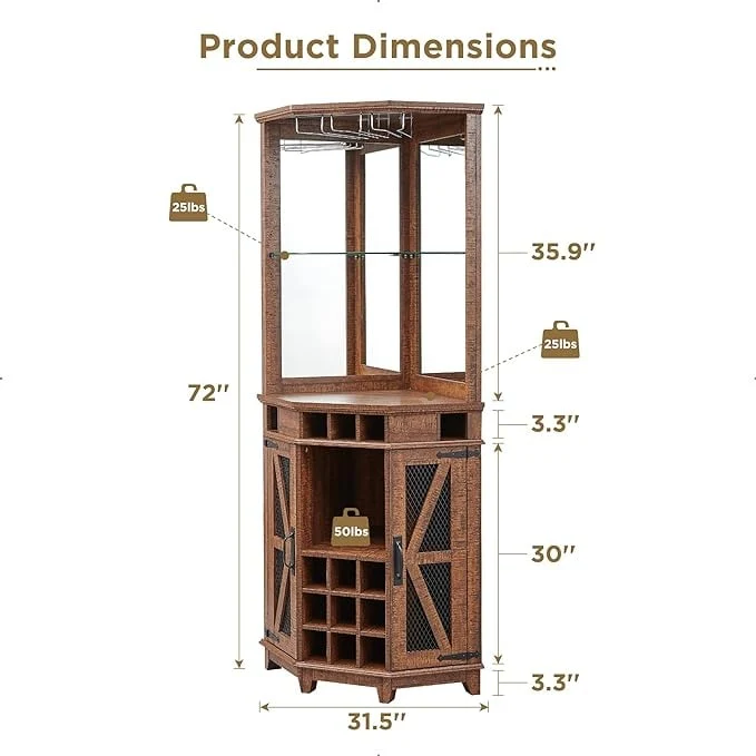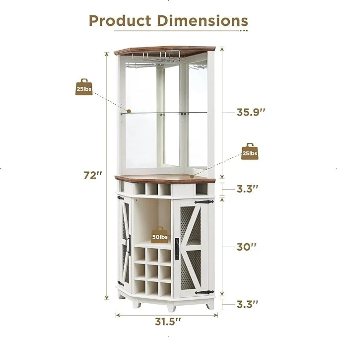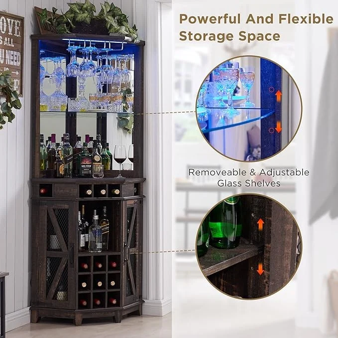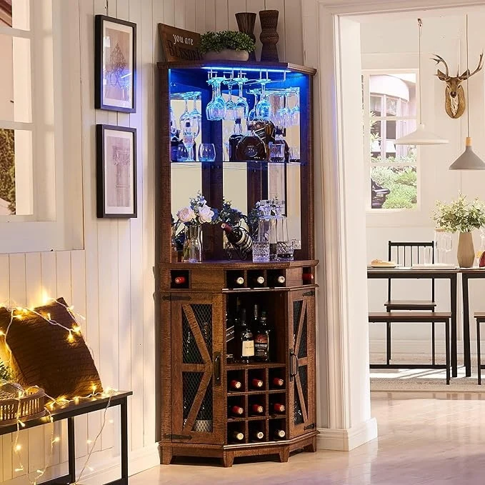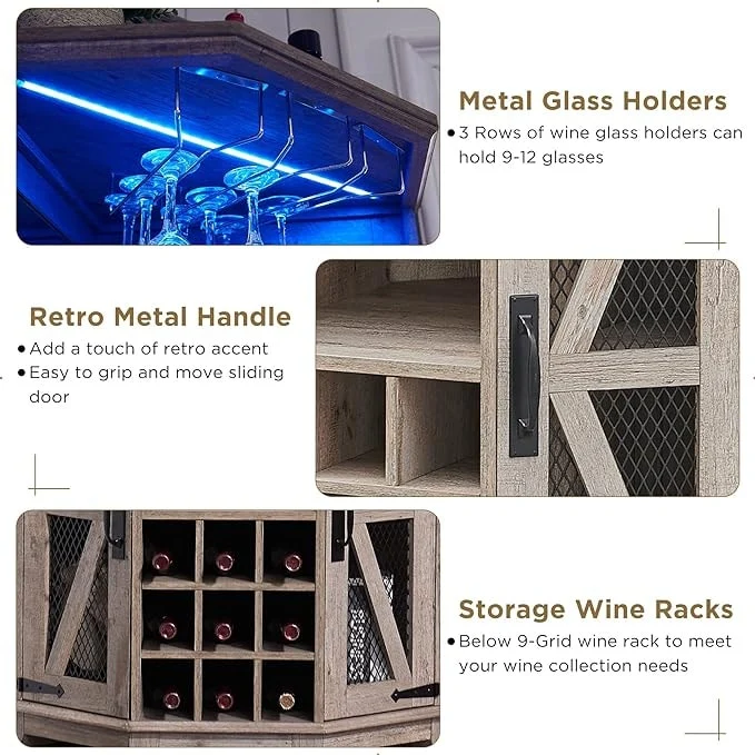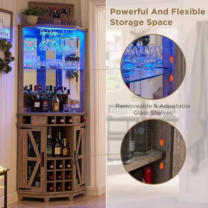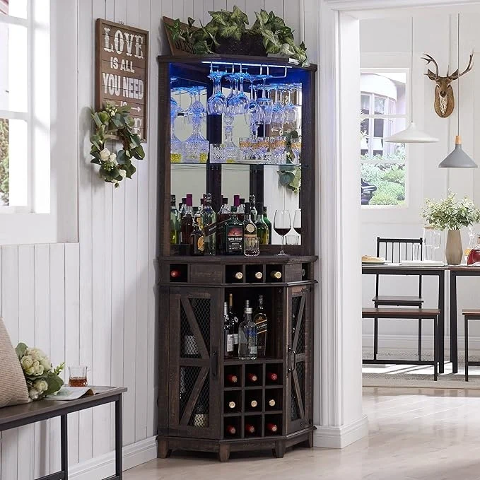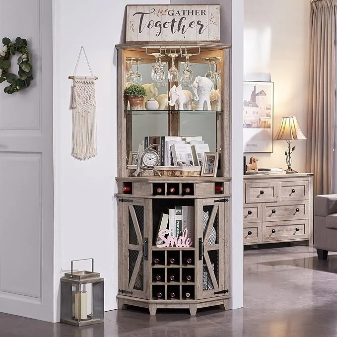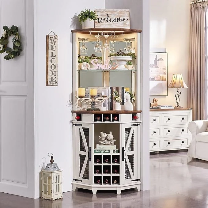 Farmhouse Corner Bar Storage Cabinet, Wine Bar Cabinet, Bar Cabinet