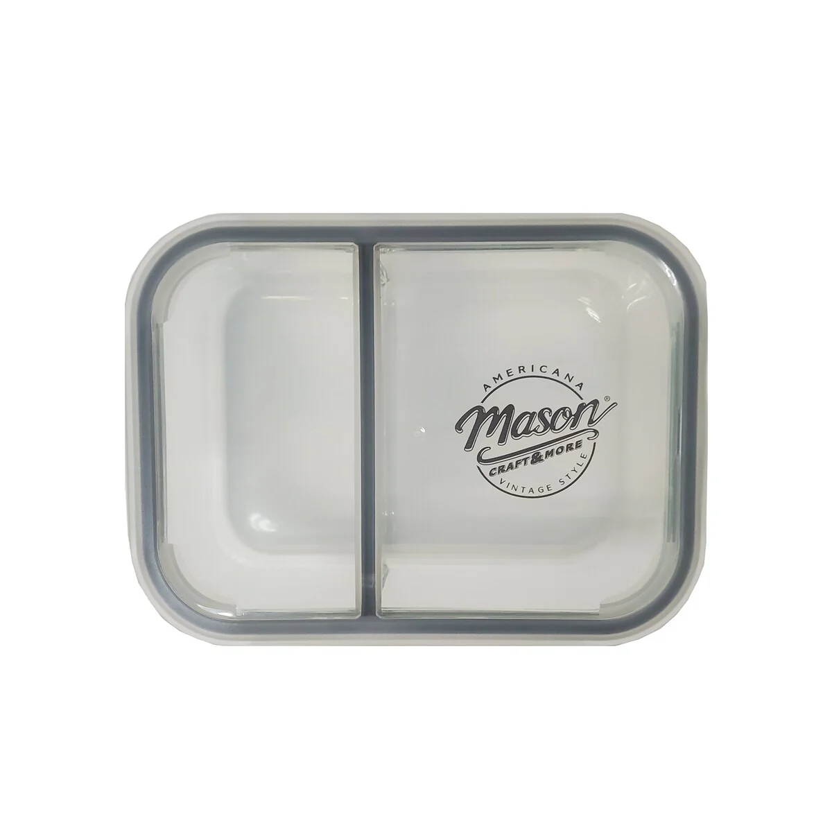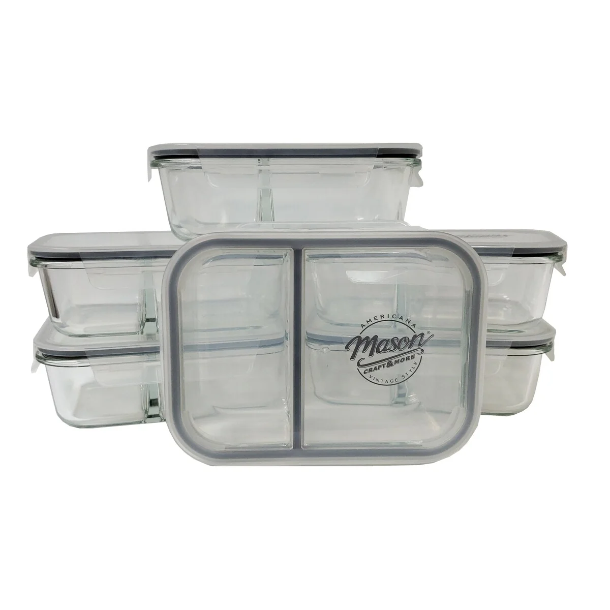 Mason Craft & More 33oz Rectangular 2.5 Section Glass Food Storage with Gray Gasket - Set of 6