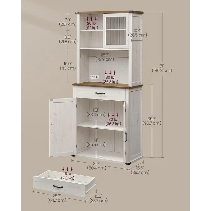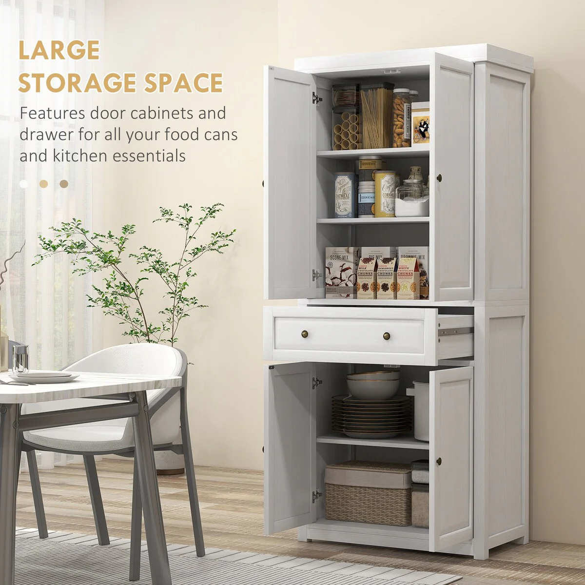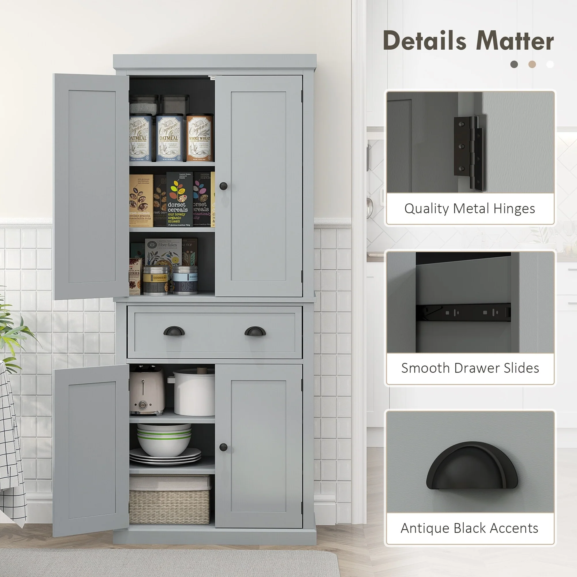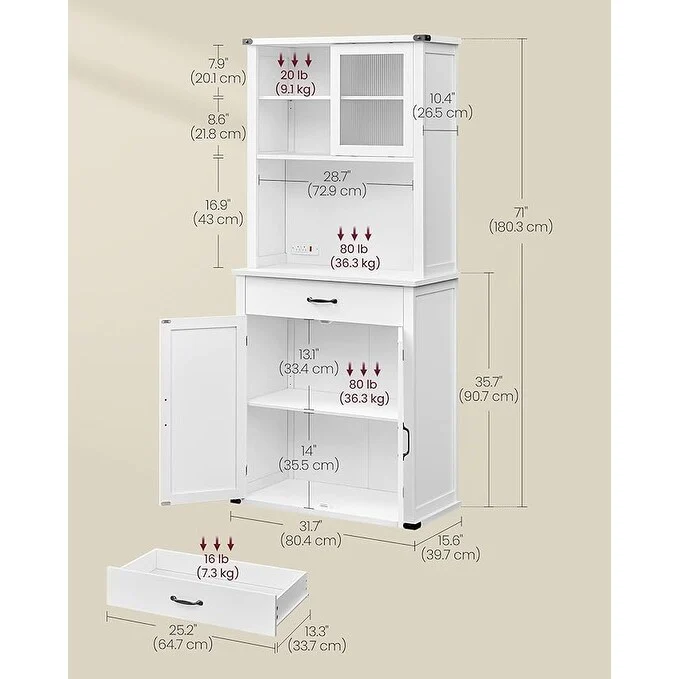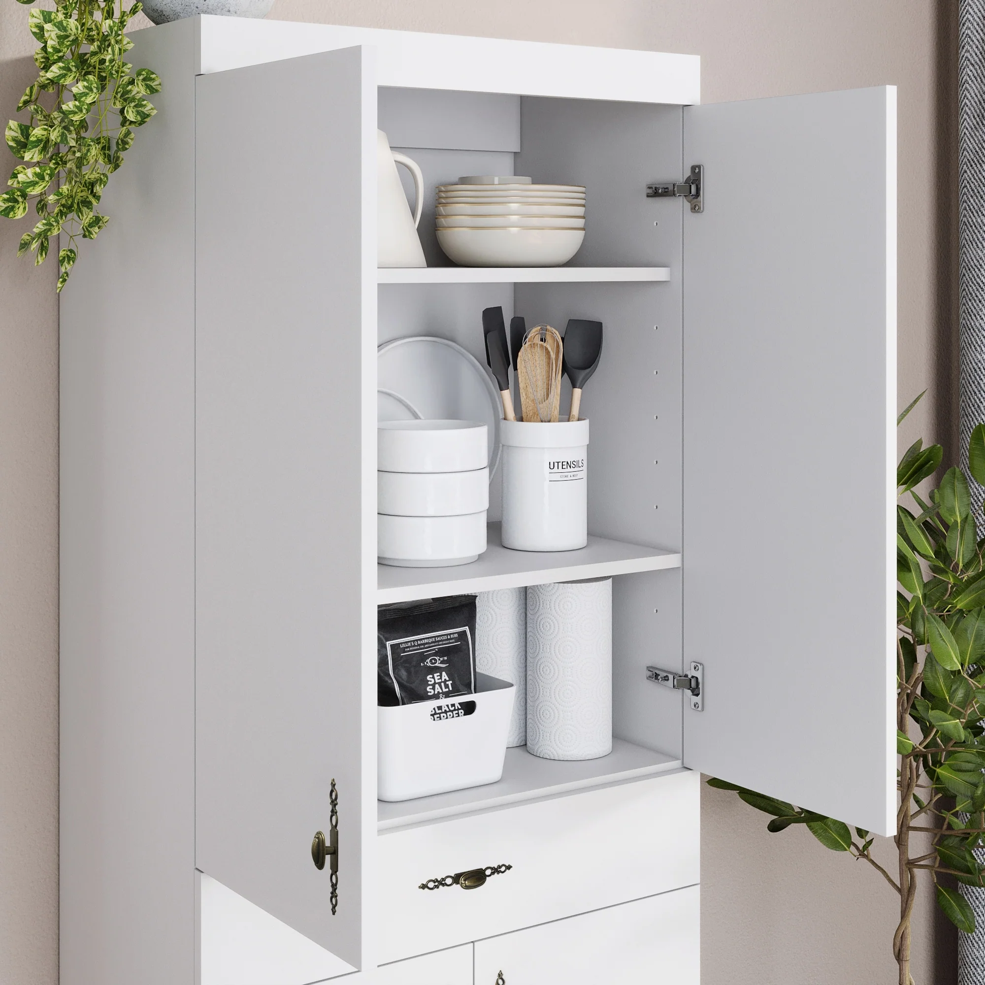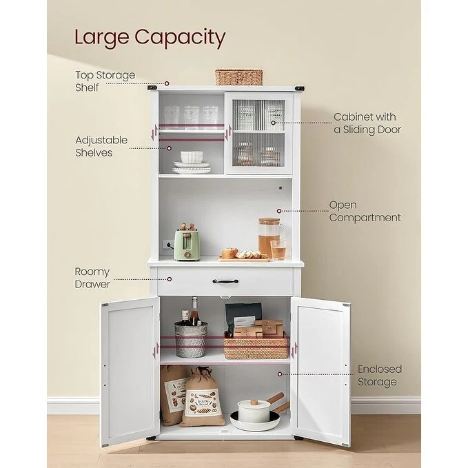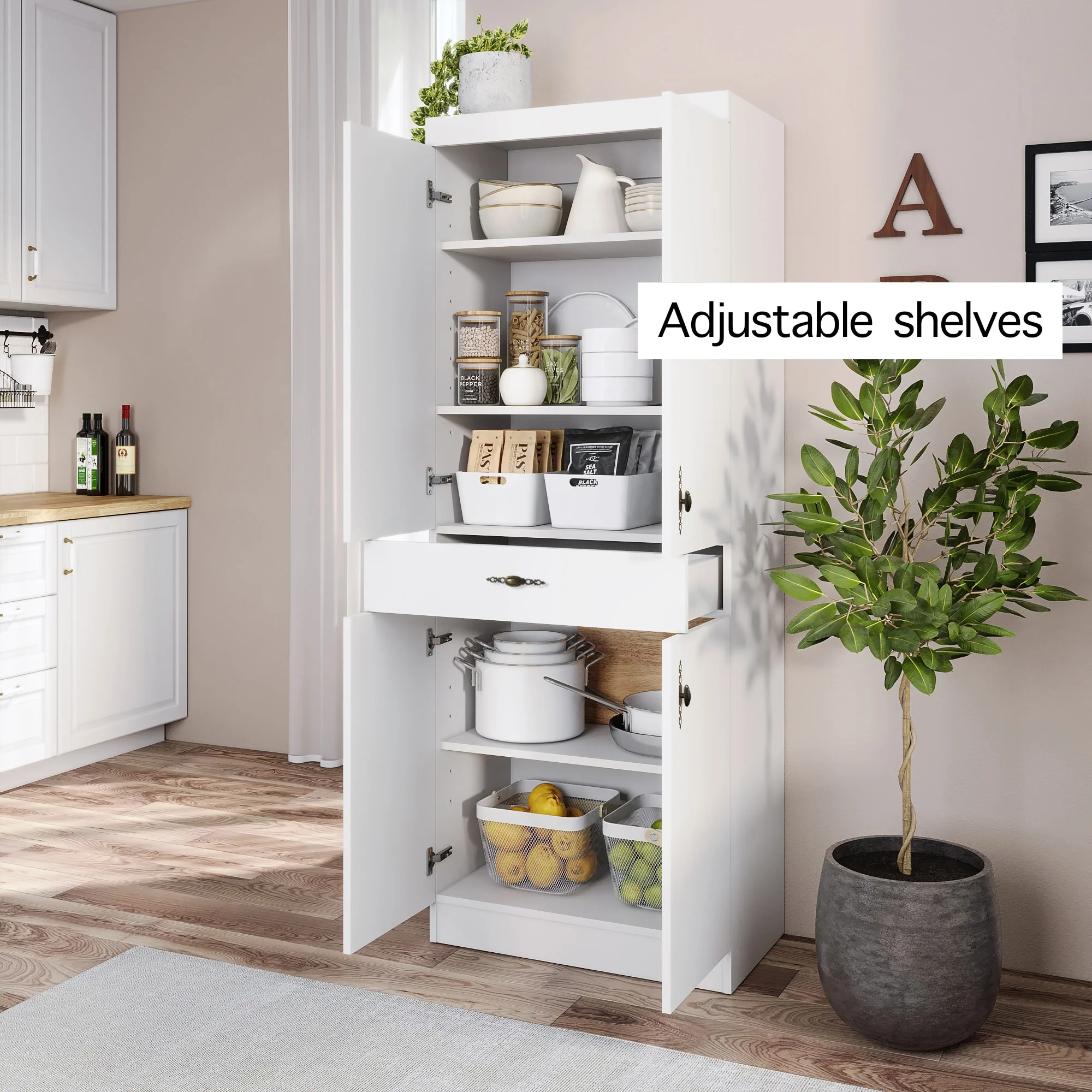 Living Skog Monti Food Pantry Storage Kitchen Cabinet with Adjustable Shelves and Drawer