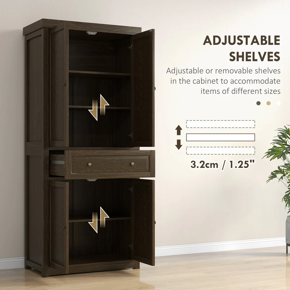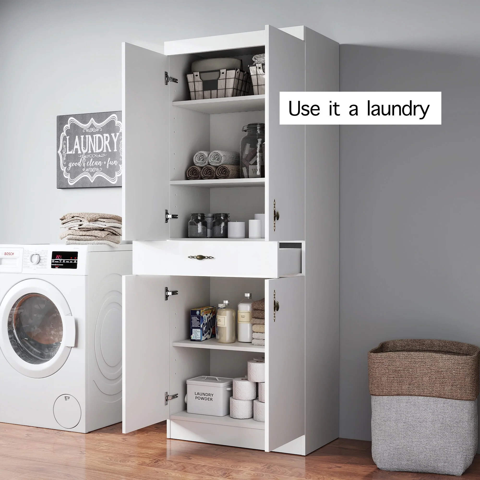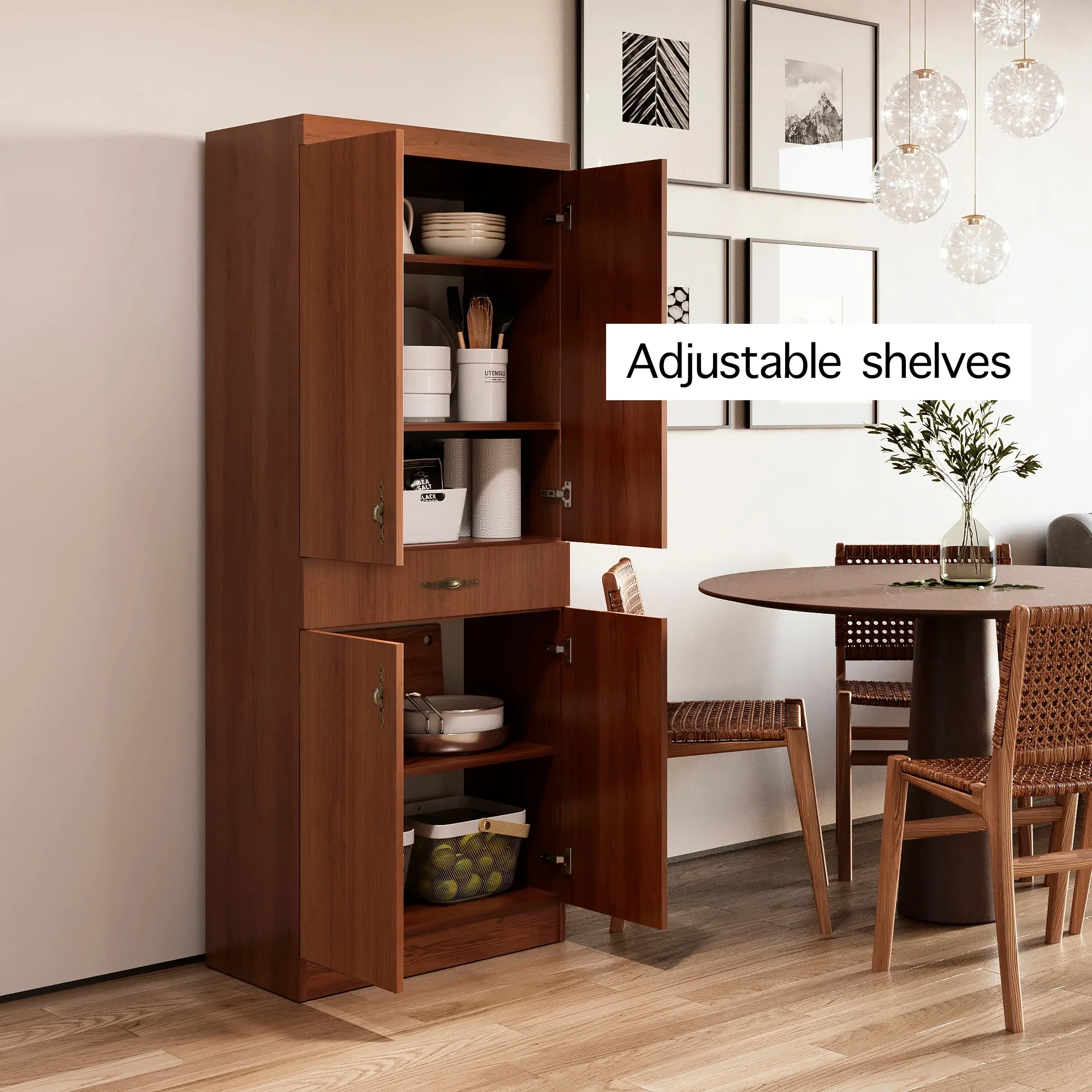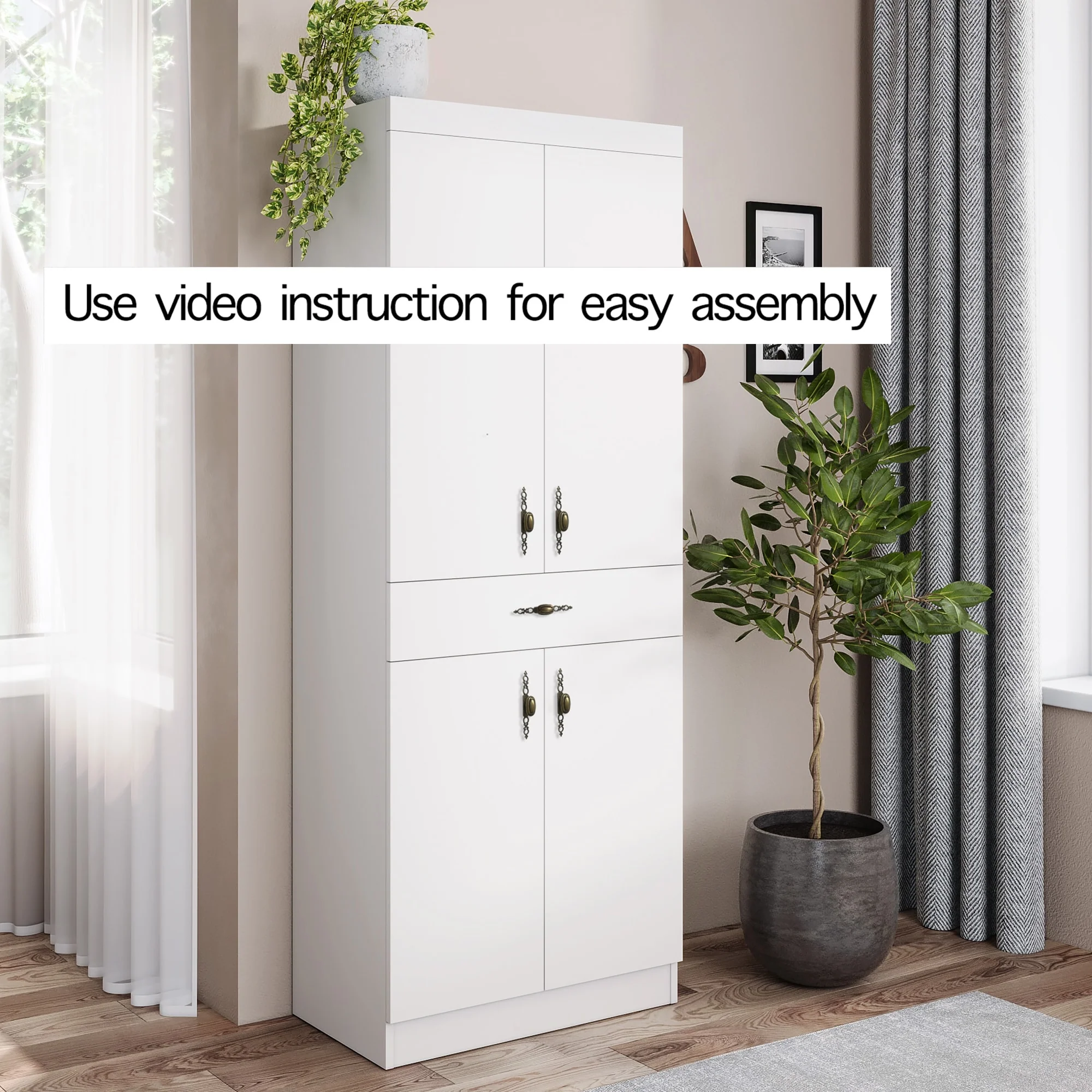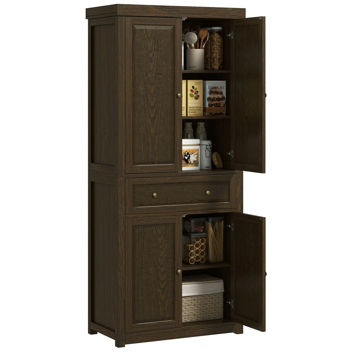 Living Skog Monti Food Pantry Storage Kitchen Cabinet with Adjustable Shelves and Drawer