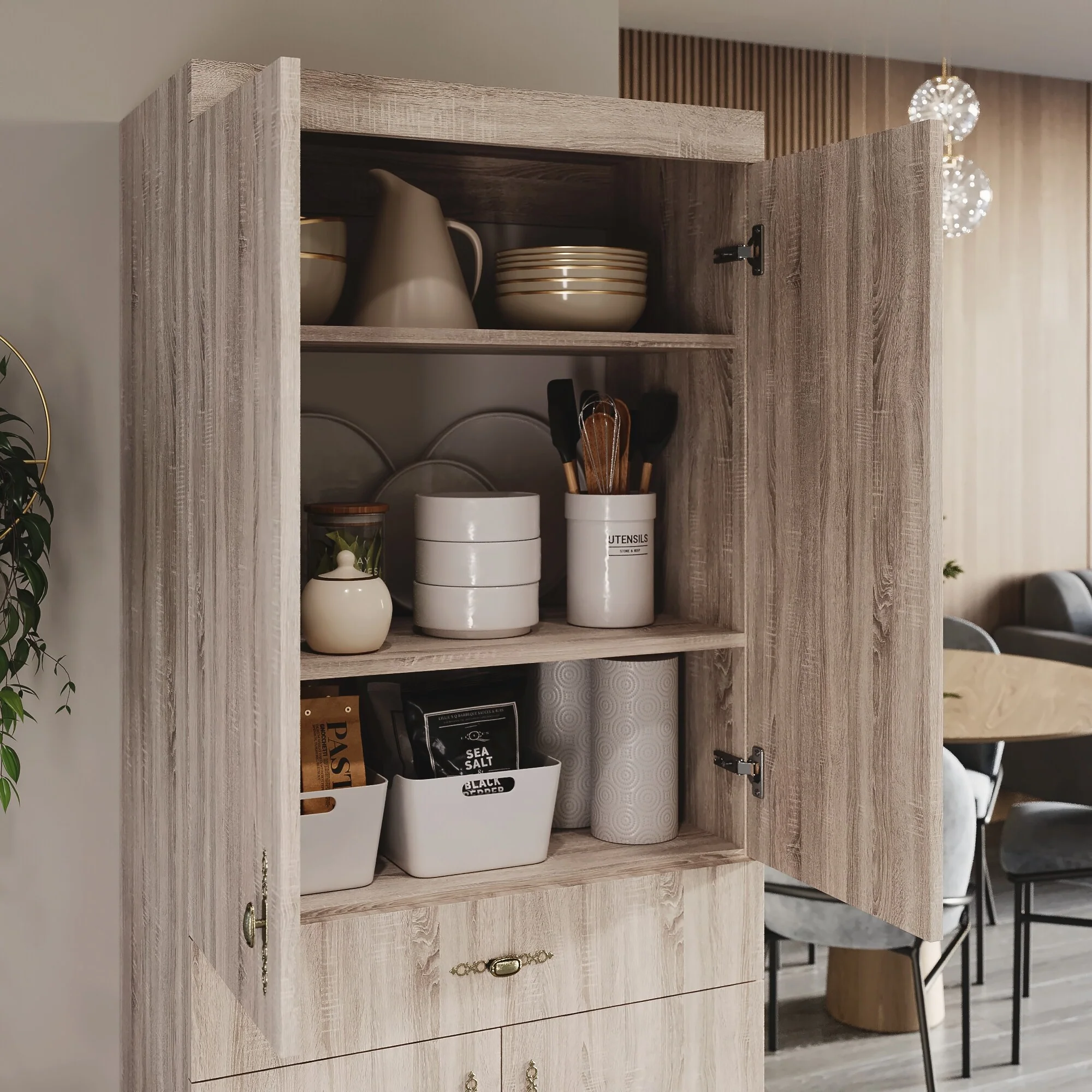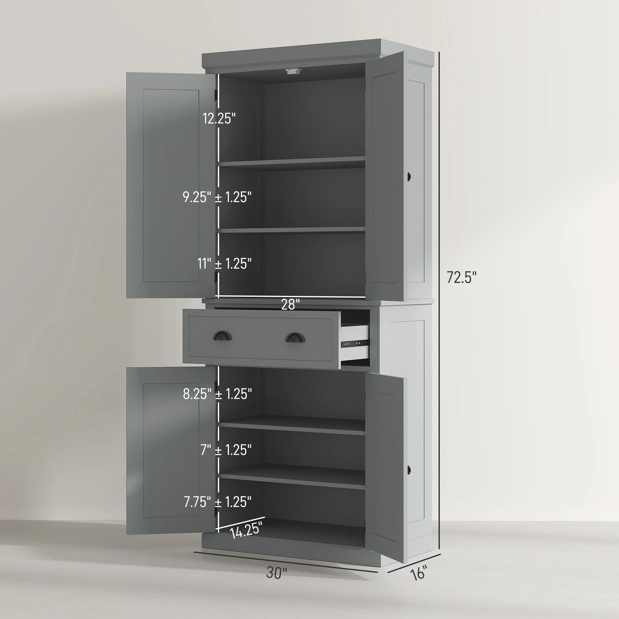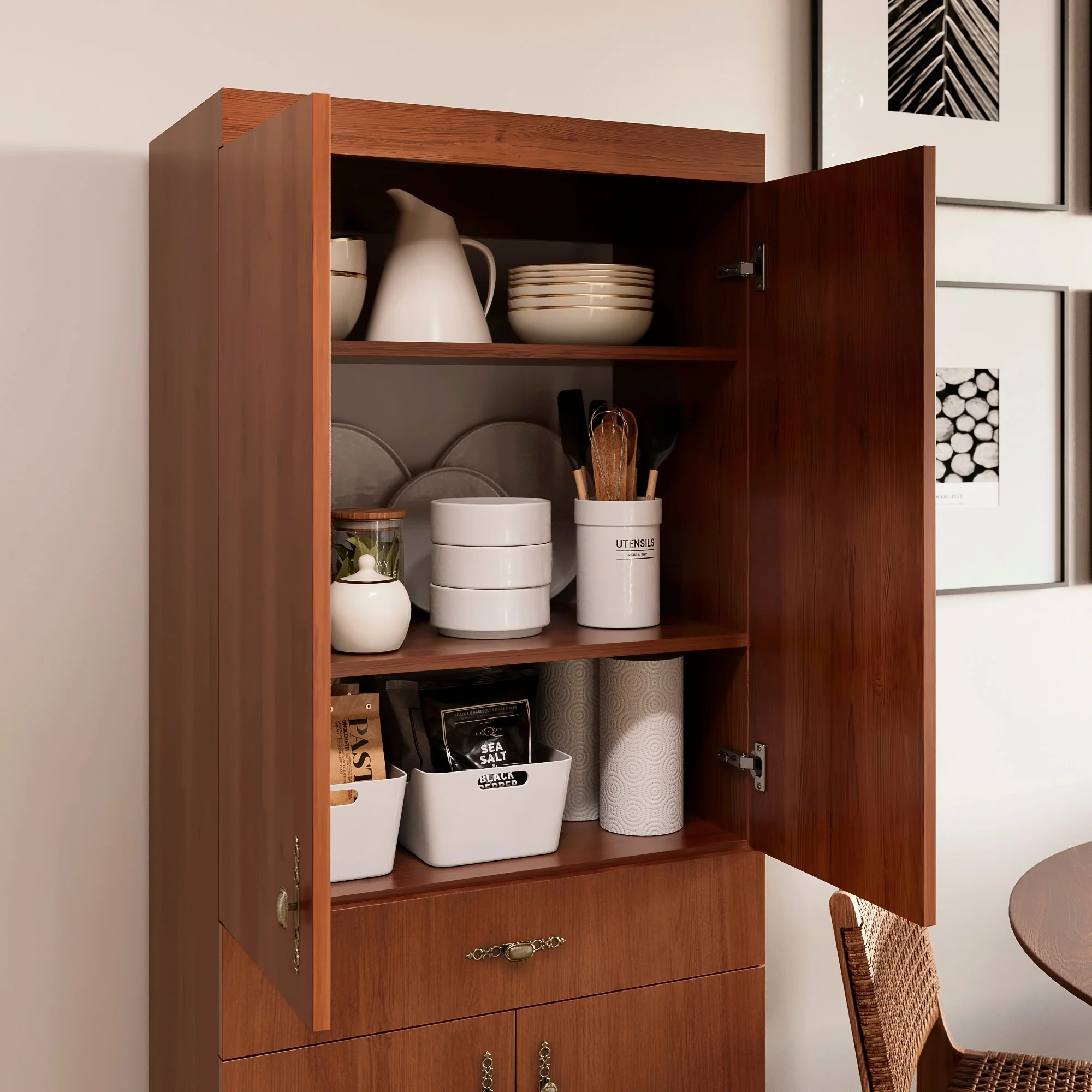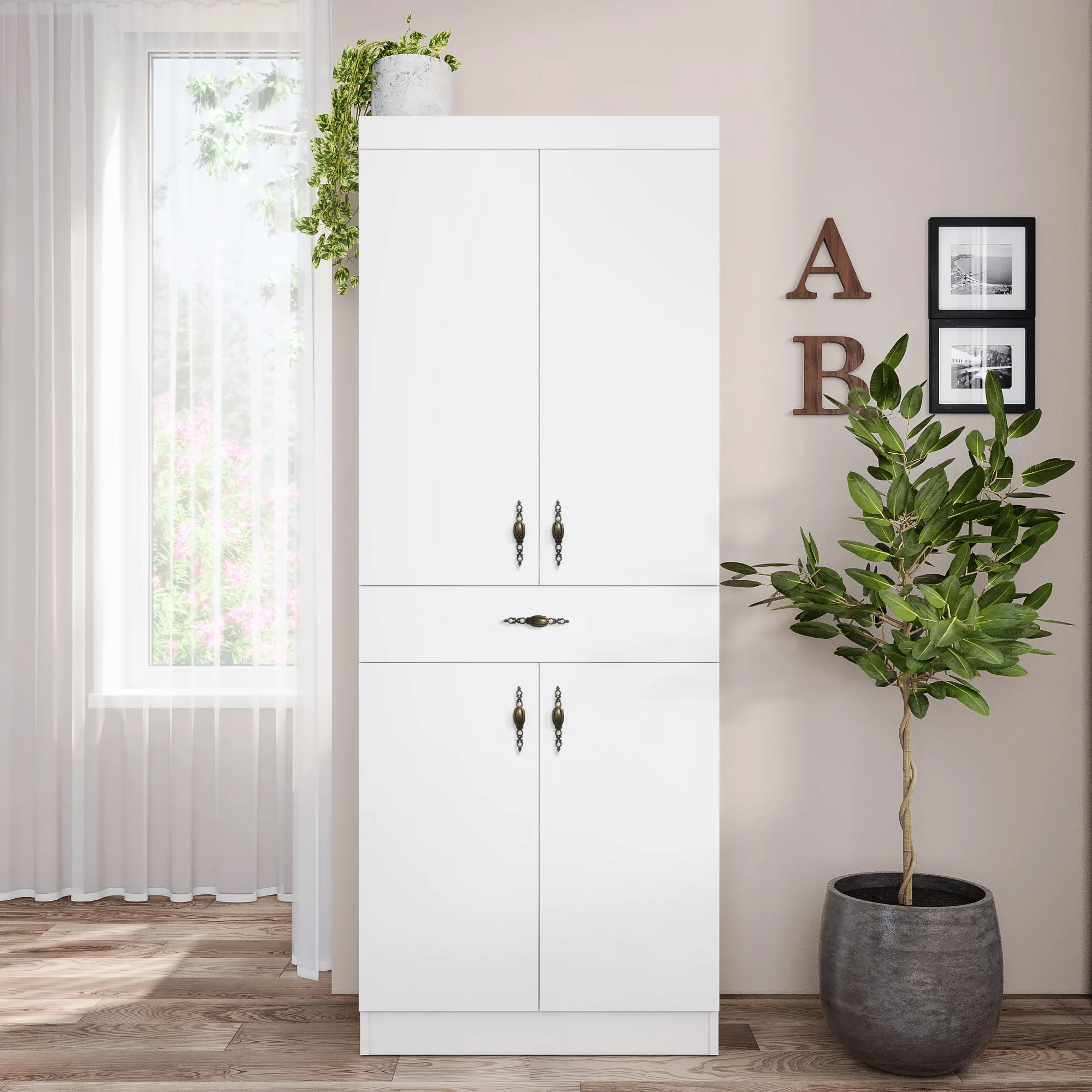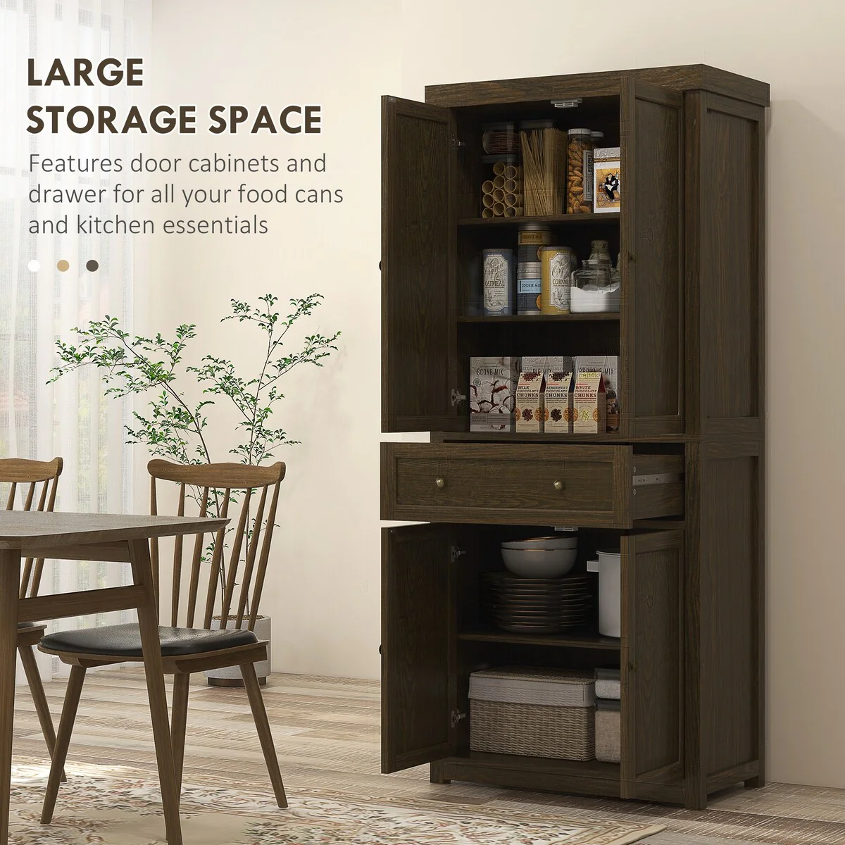 Living Skog Monti Food Pantry Storage Kitchen Cabinet with Adjustable Shelves and Drawer