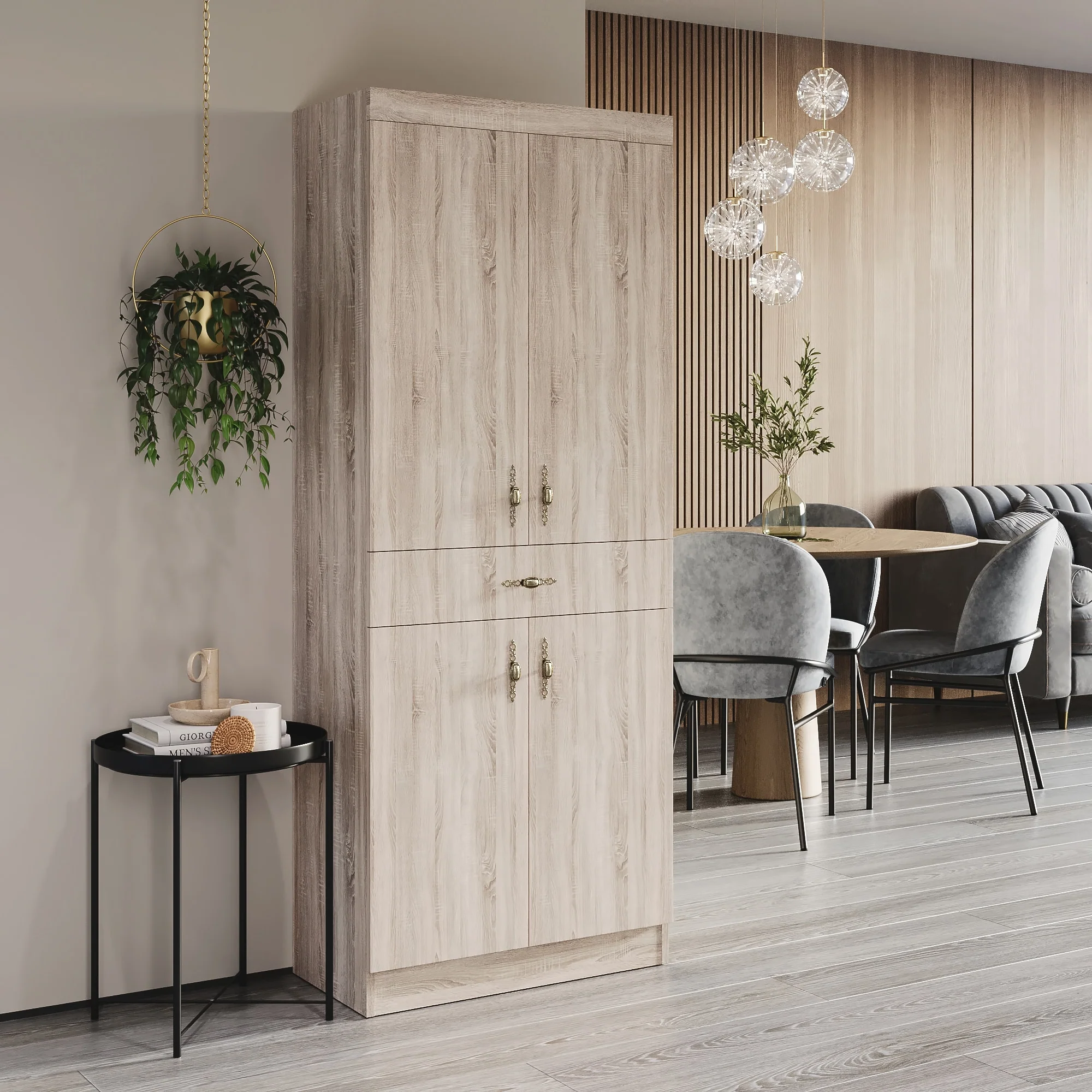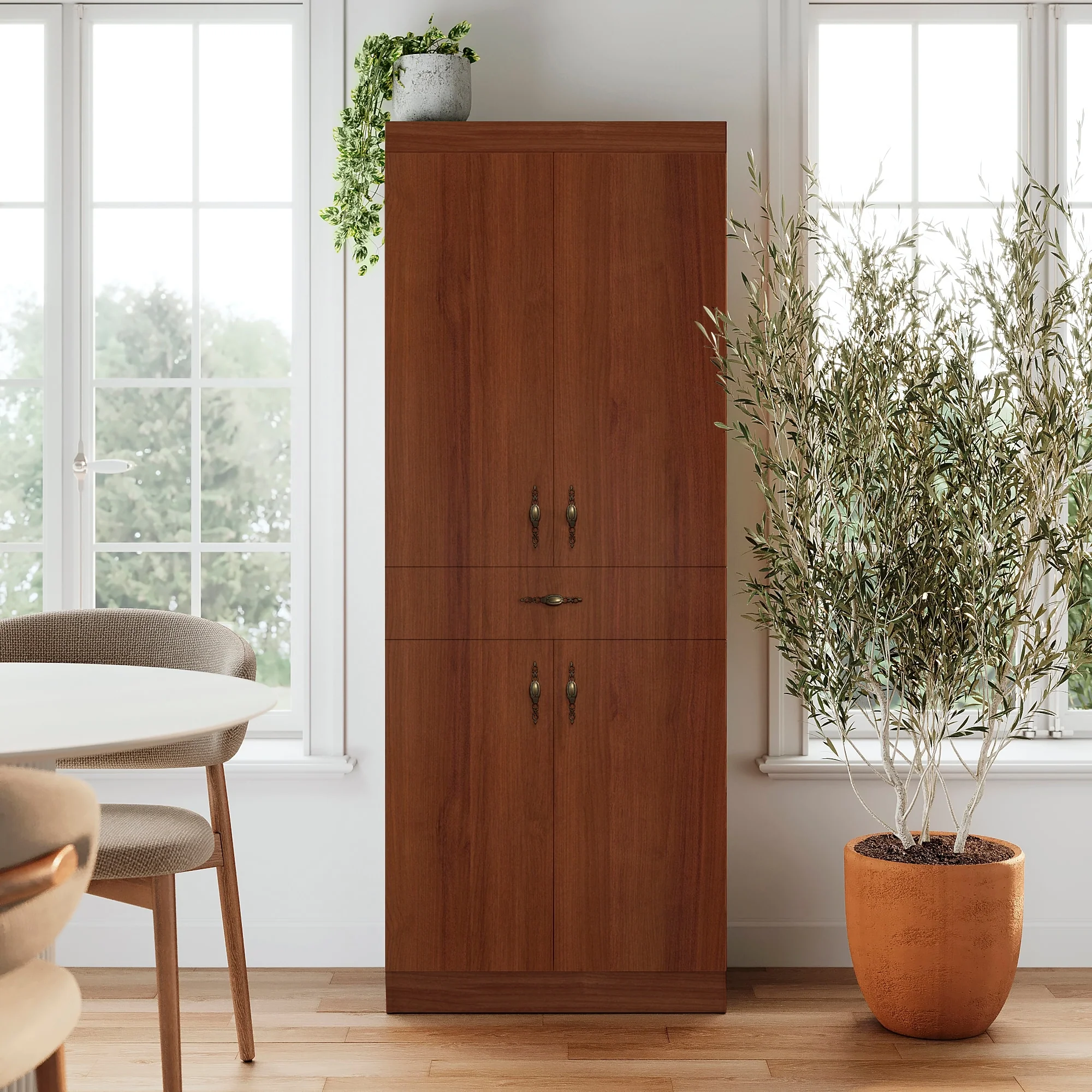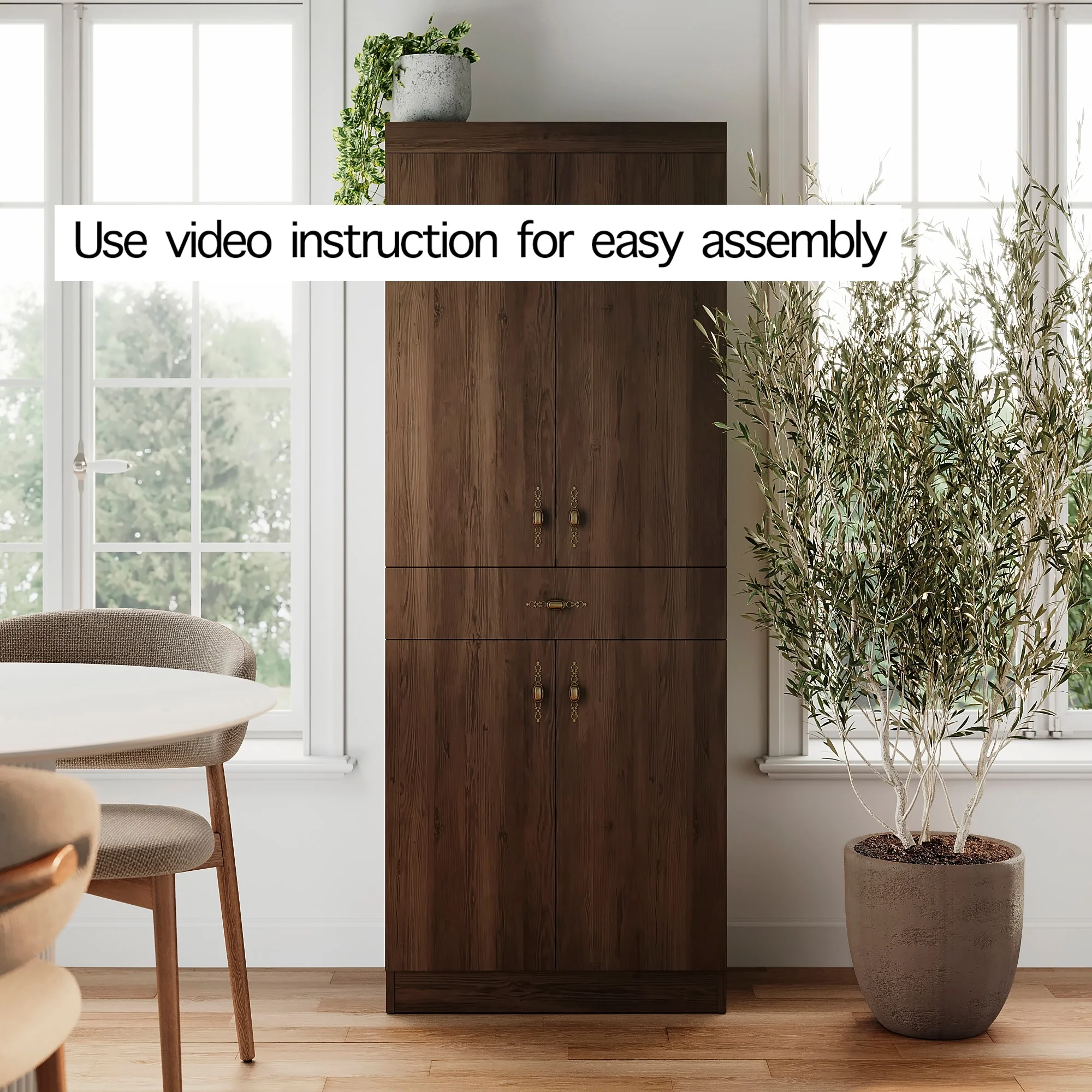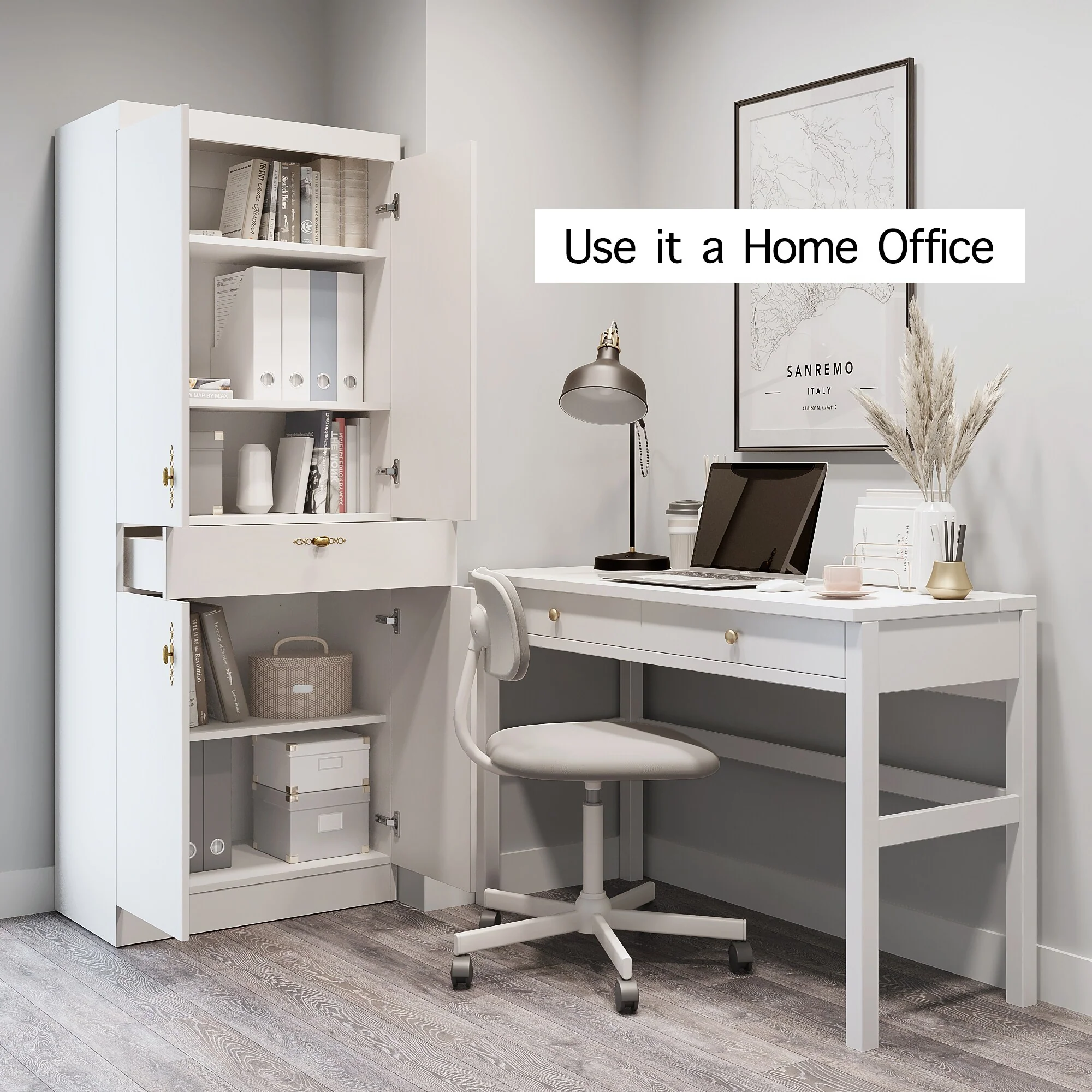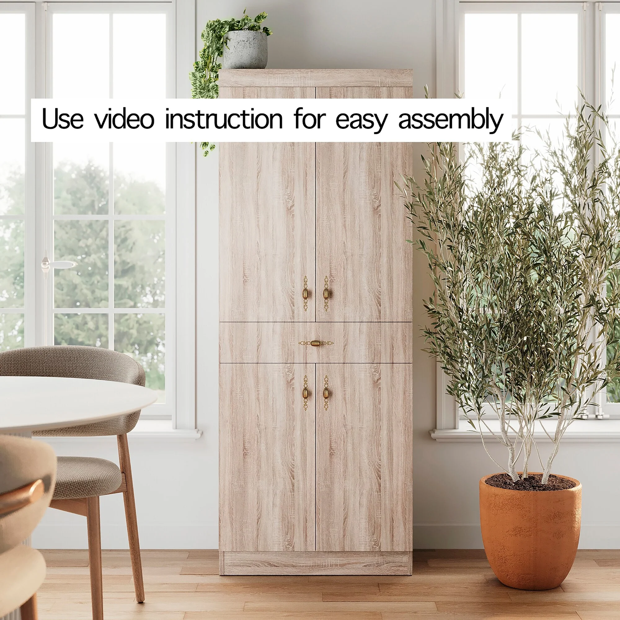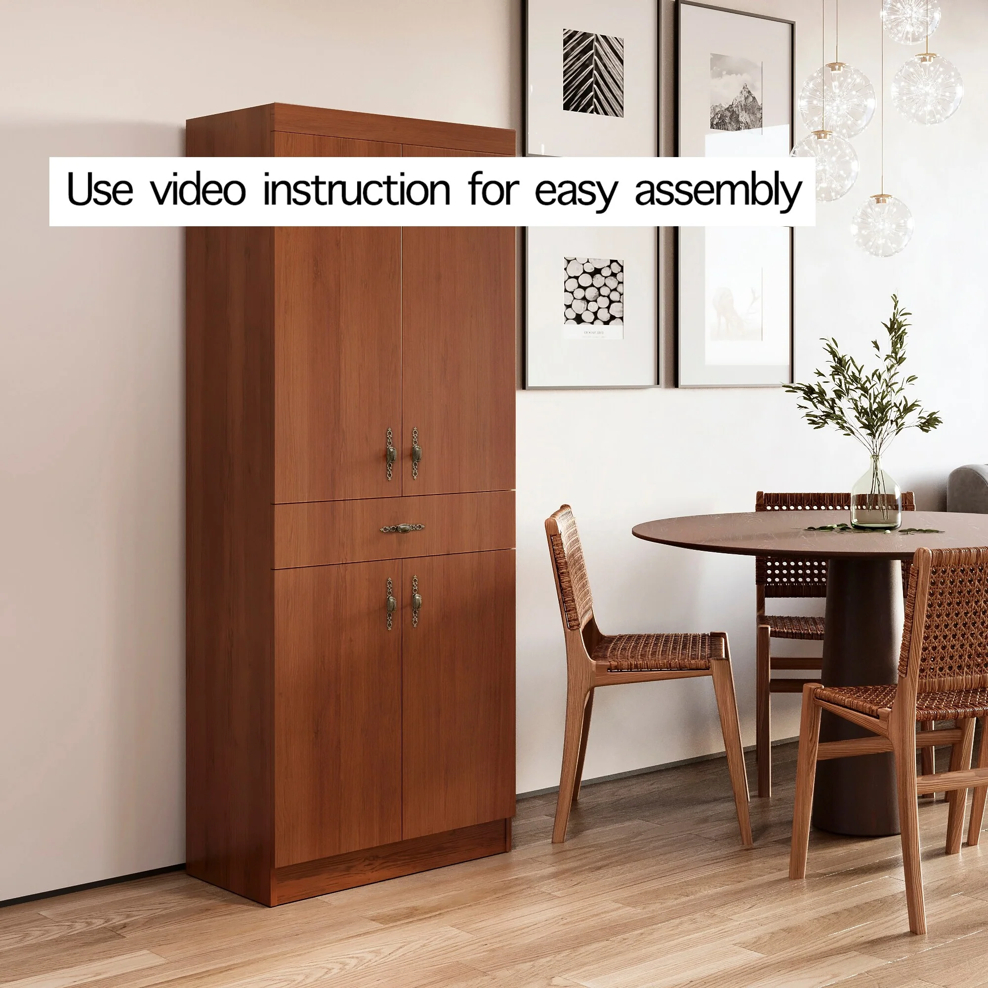 Living Skog Monti Food Pantry Storage Kitchen Cabinet with Adjustable Shelves and Drawer