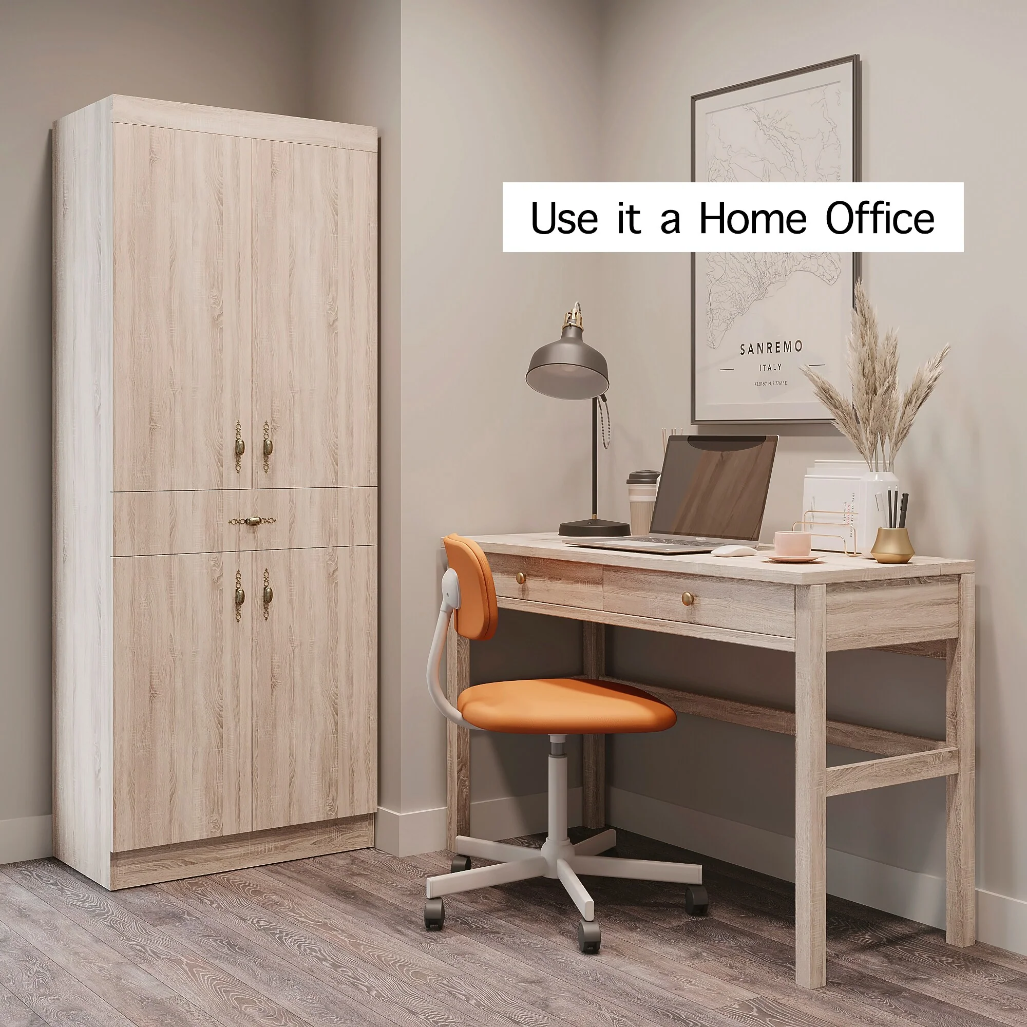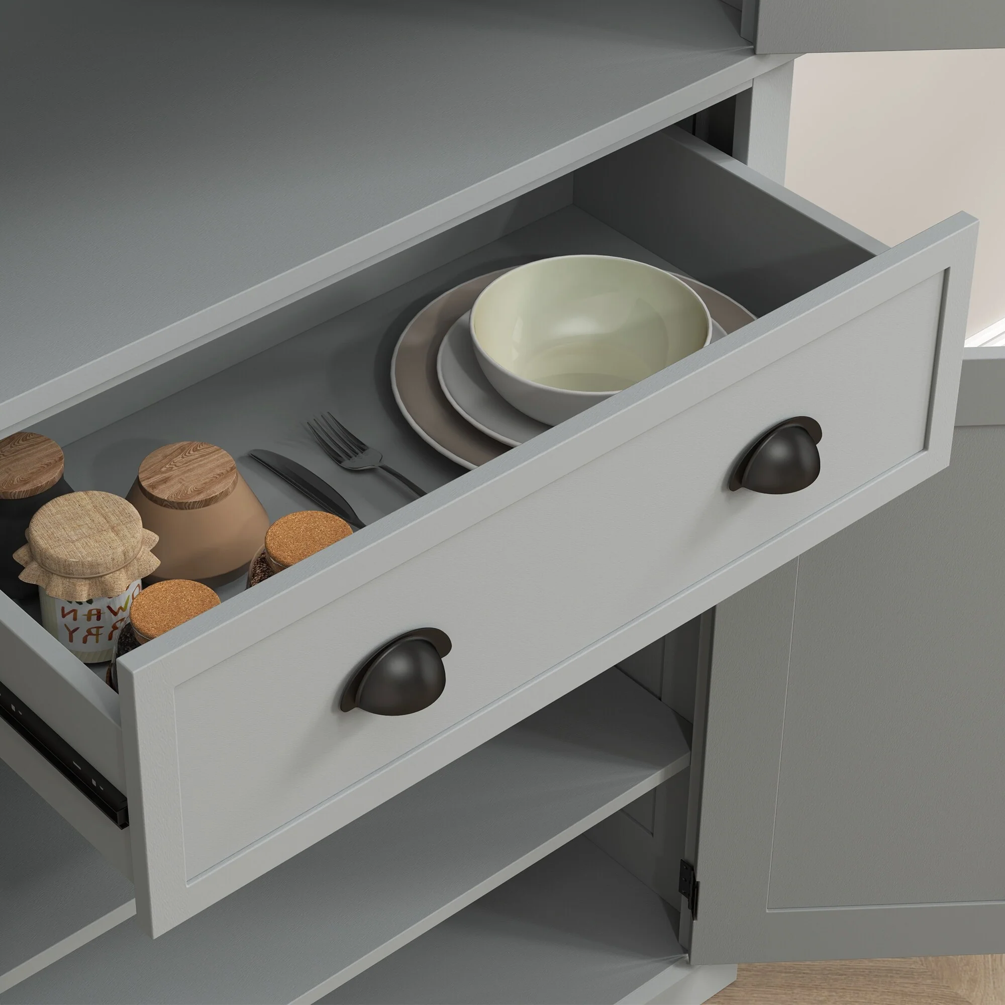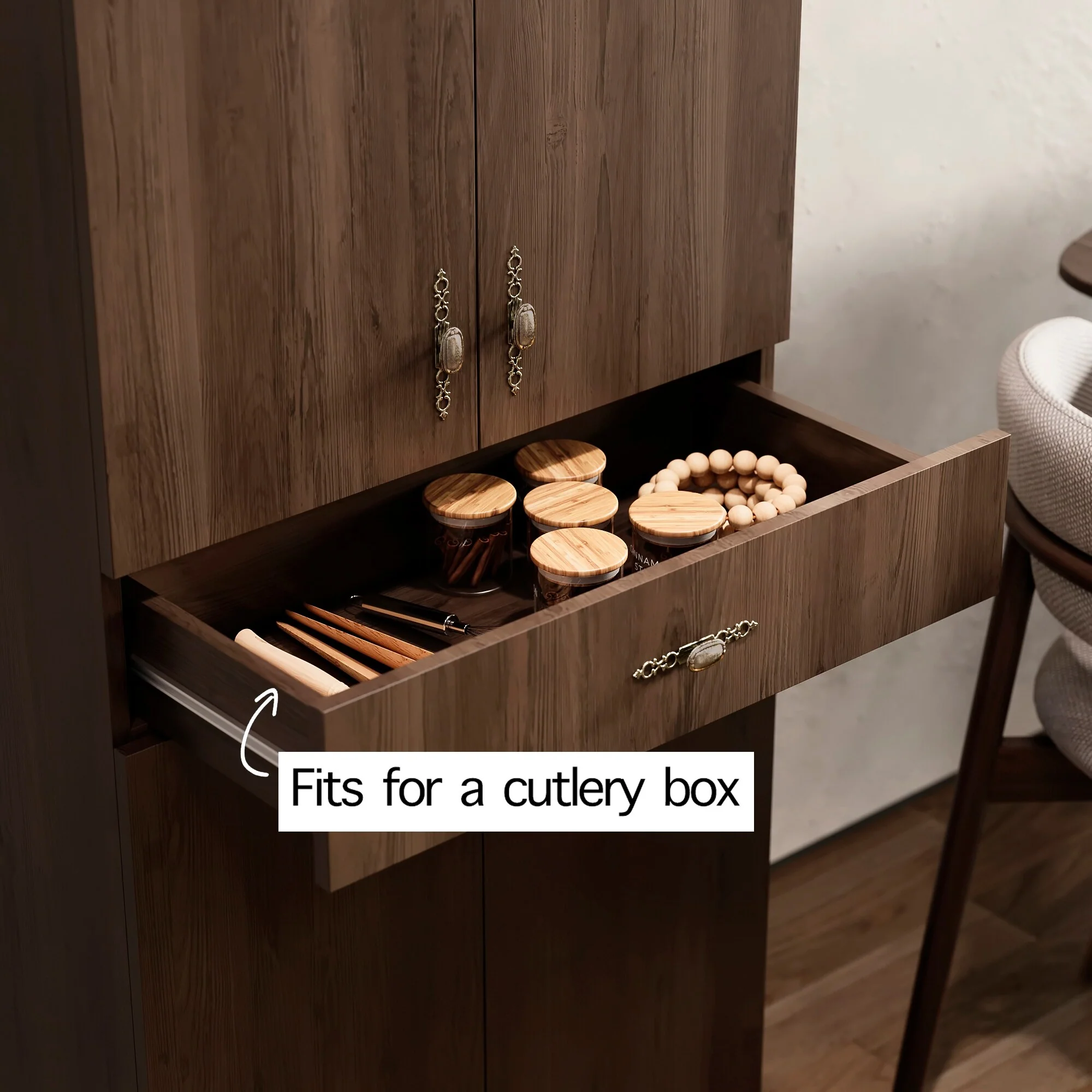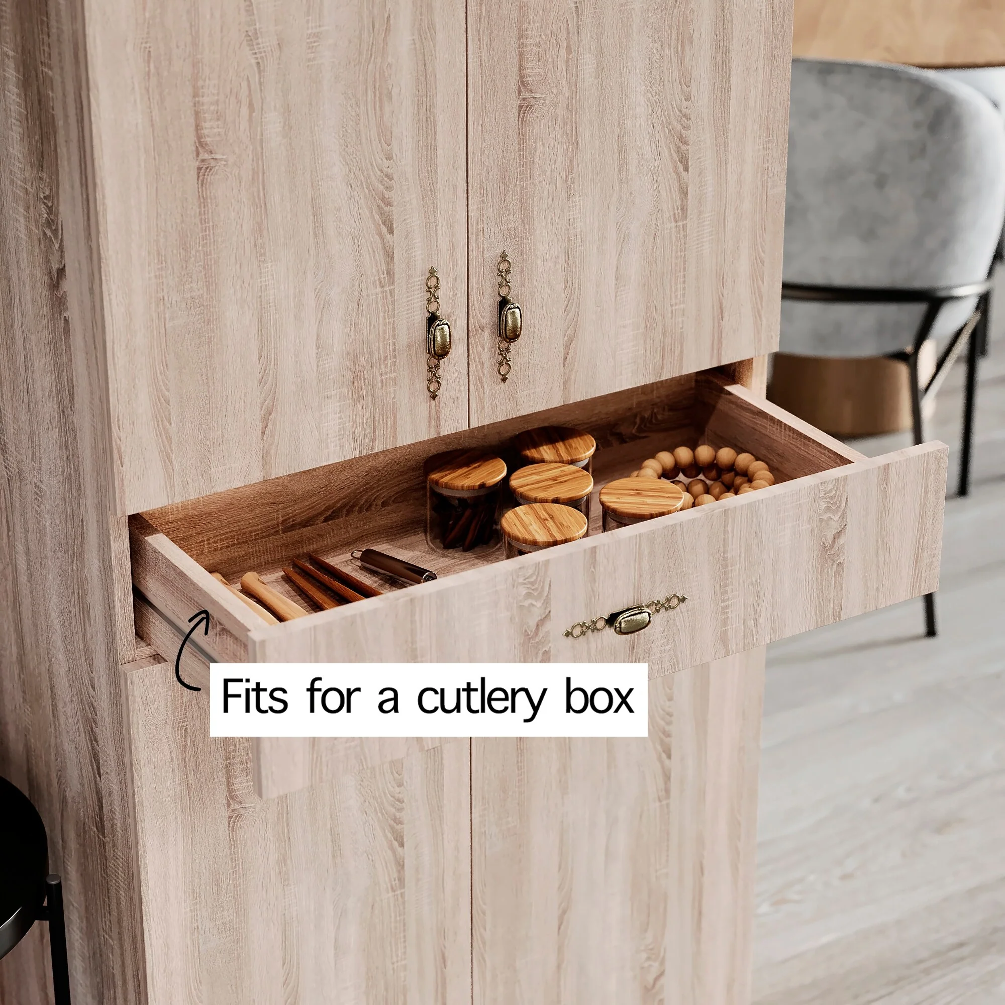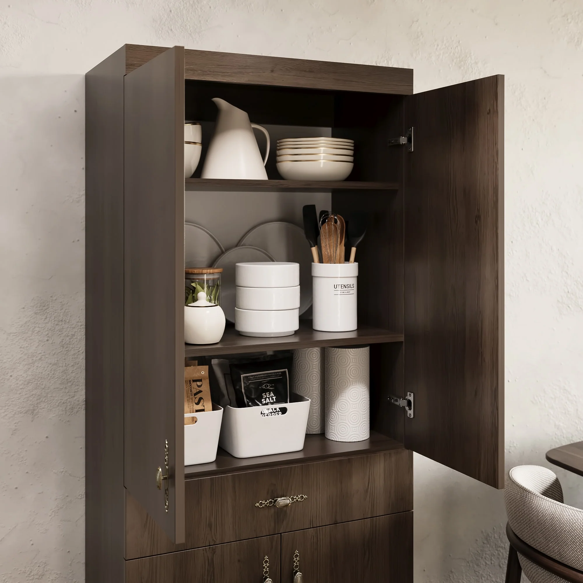 Living Skog Monti Food Pantry Storage Kitchen Cabinet with Adjustable Shelves and Drawer