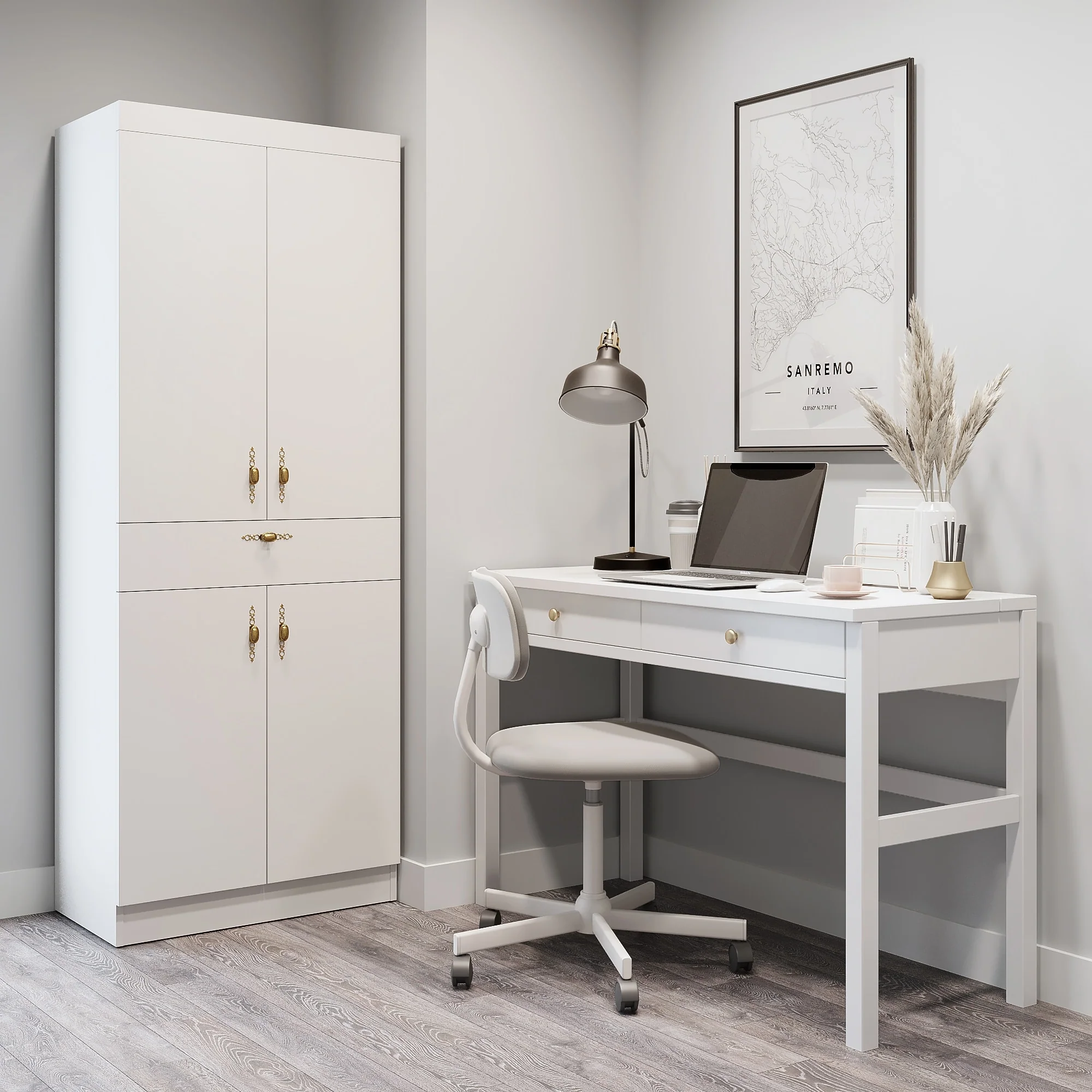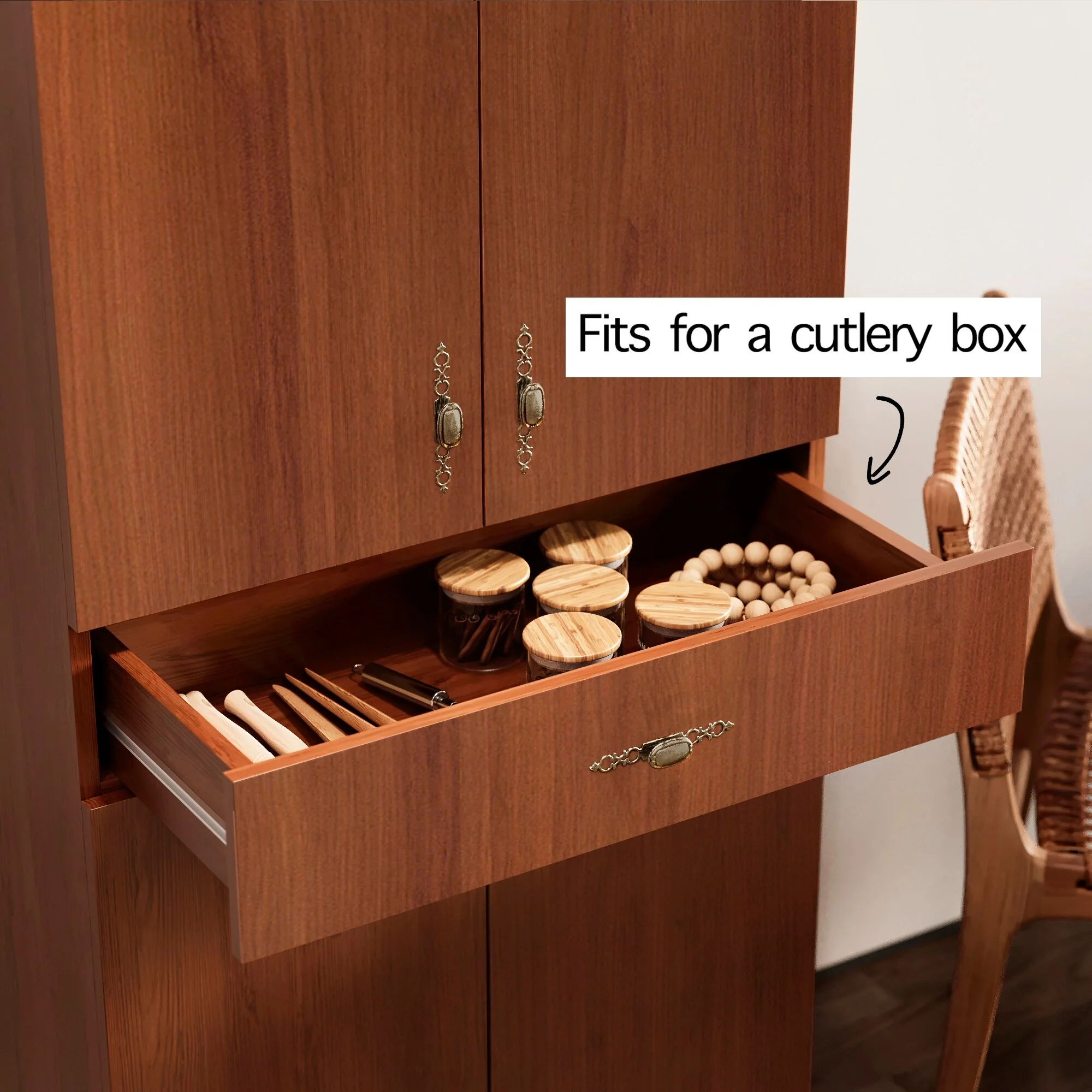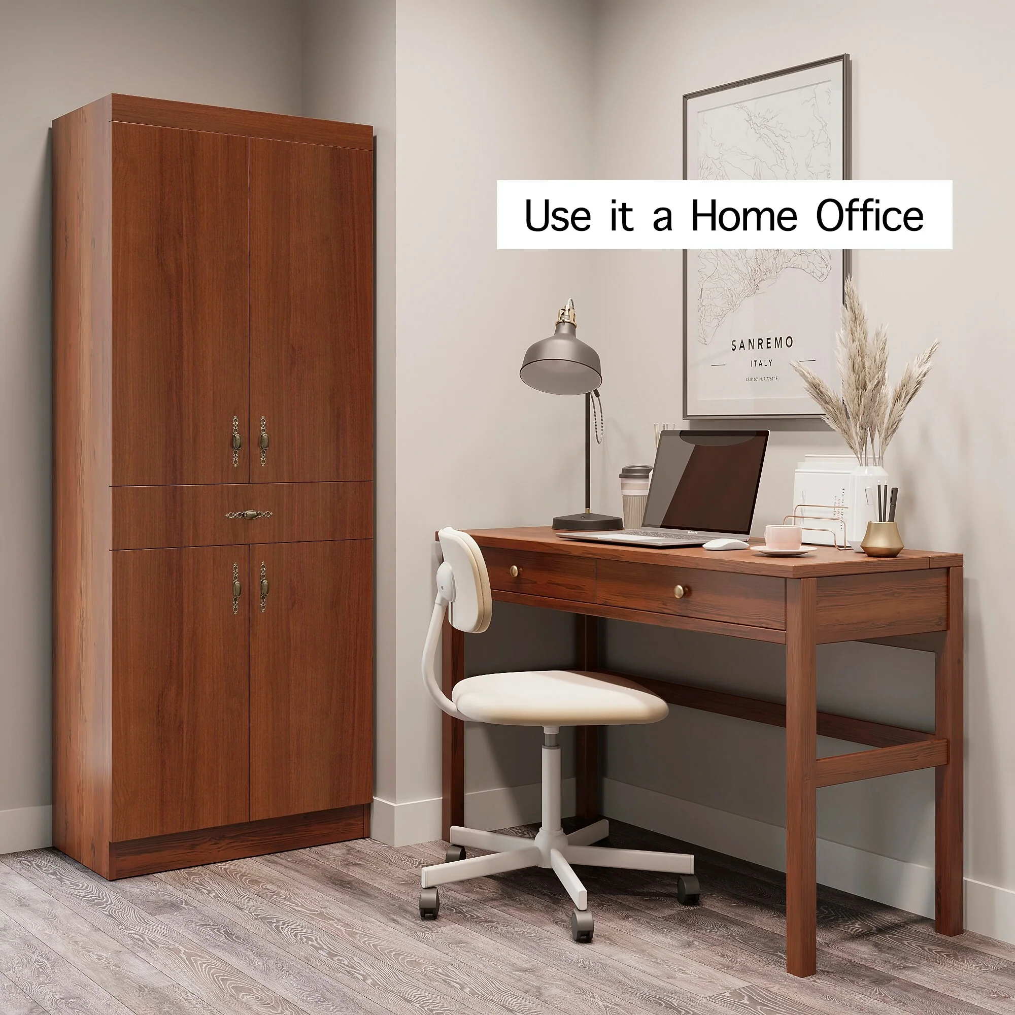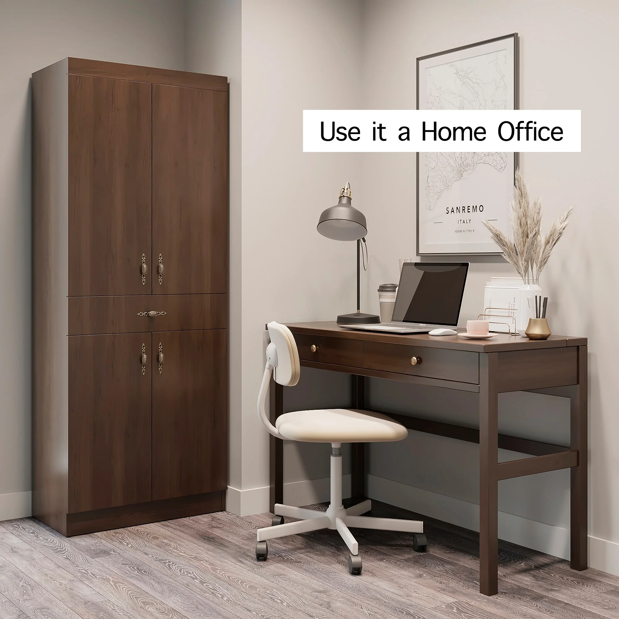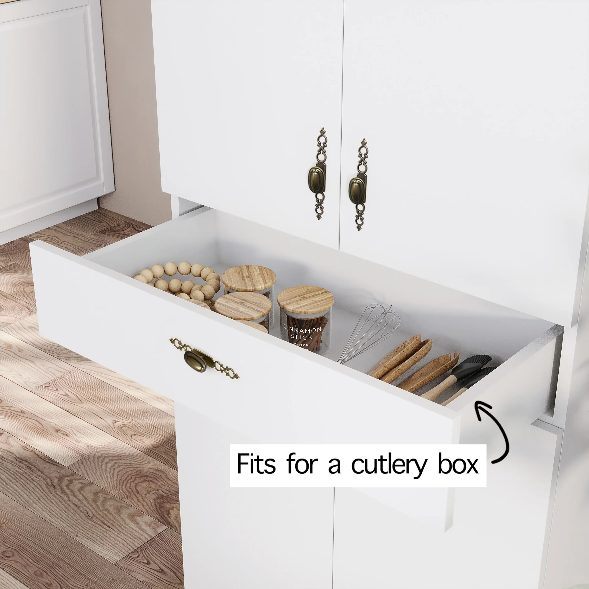 Living Skog Monti Food Pantry Storage Kitchen Cabinet with Adjustable Shelves and Drawer