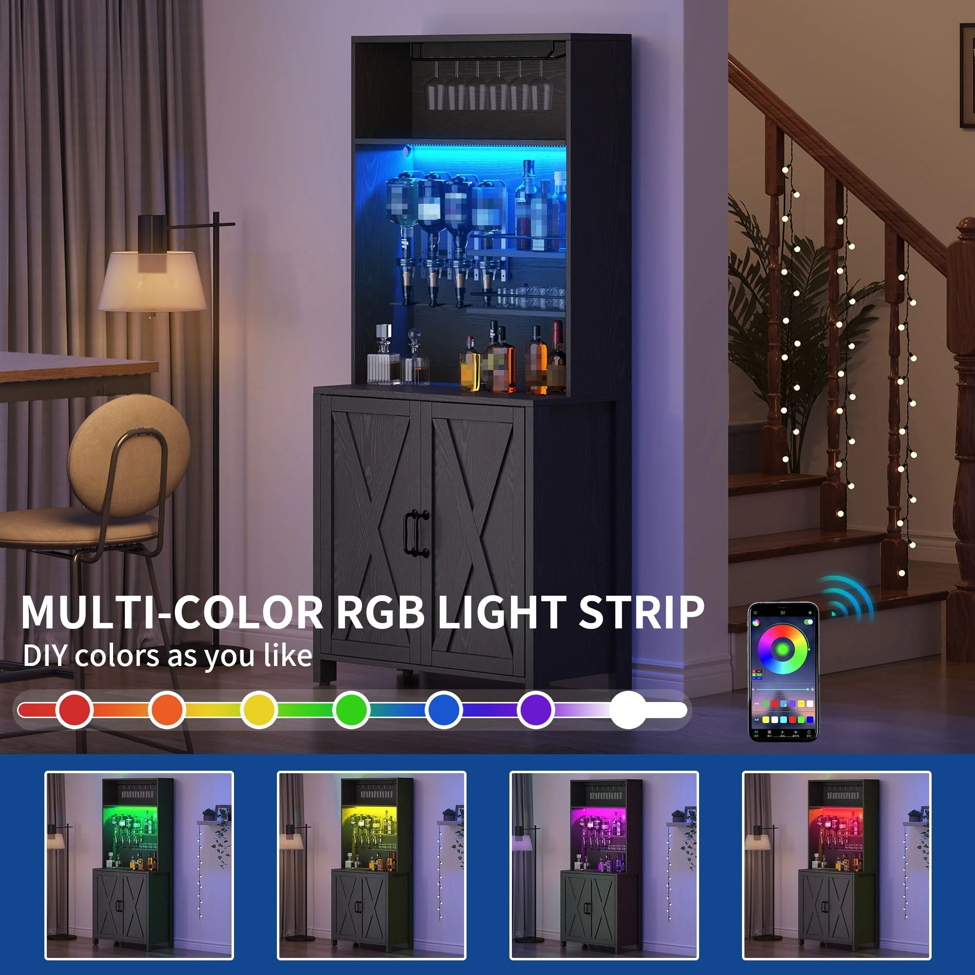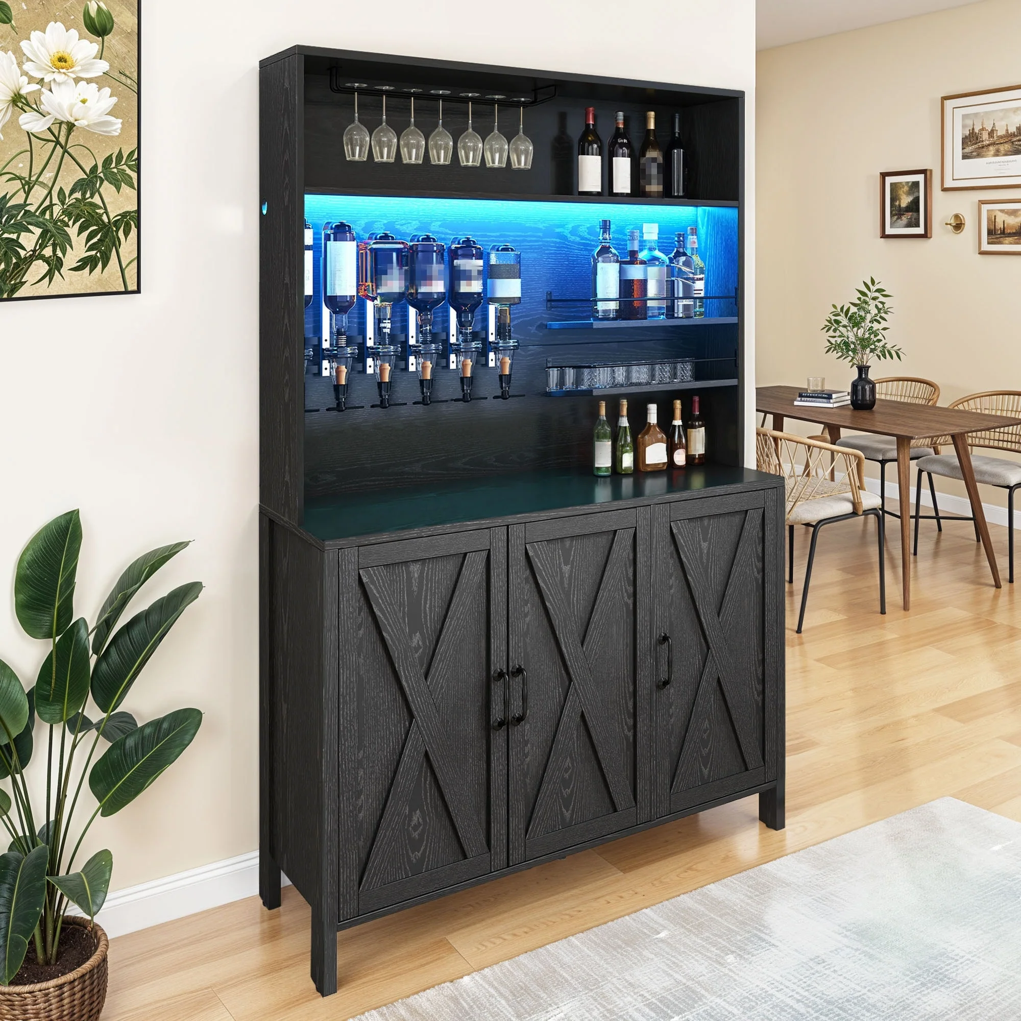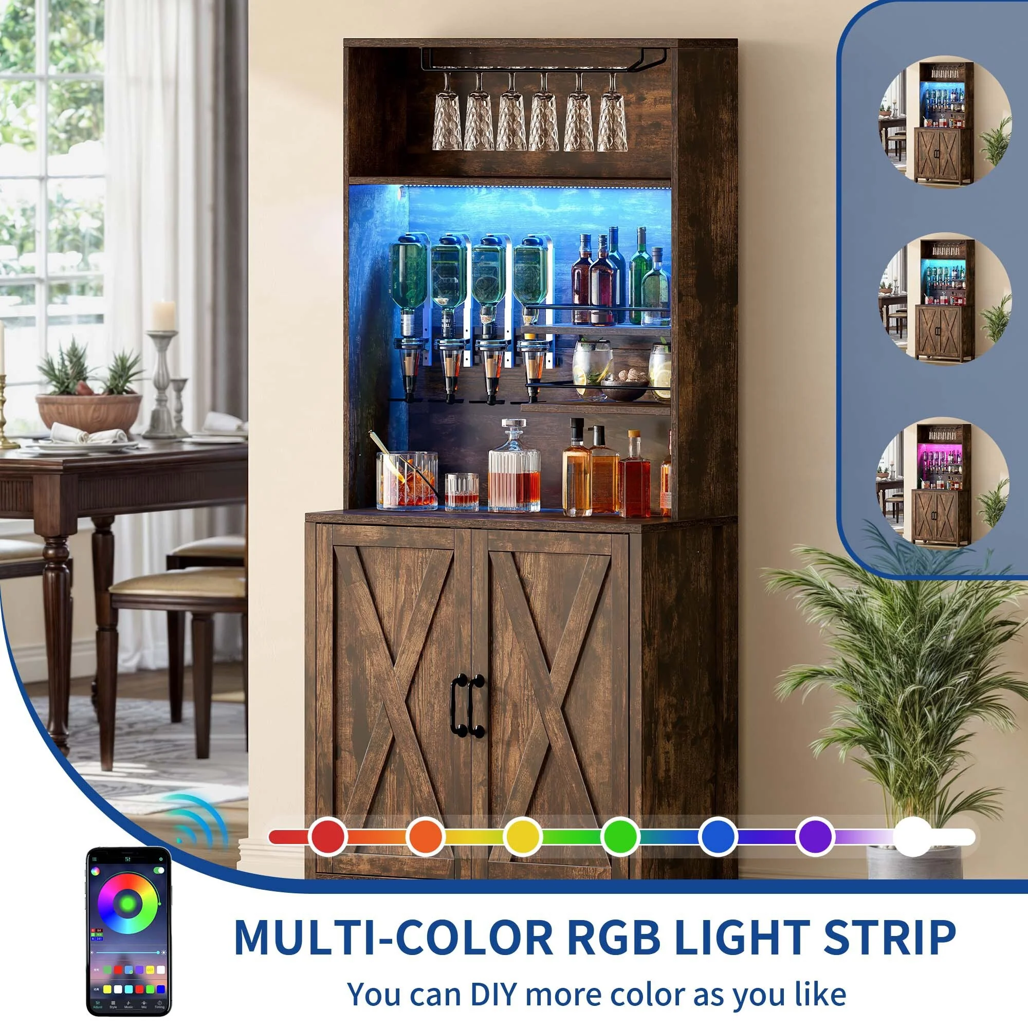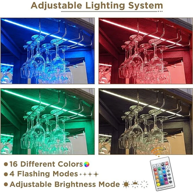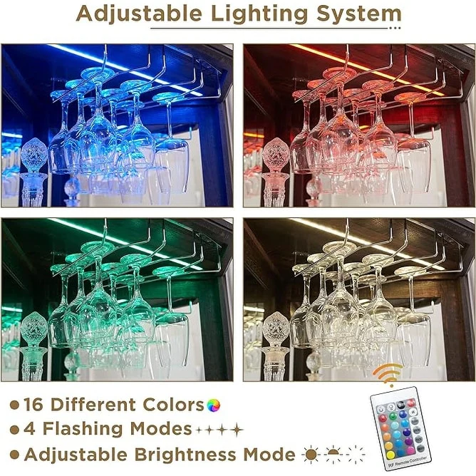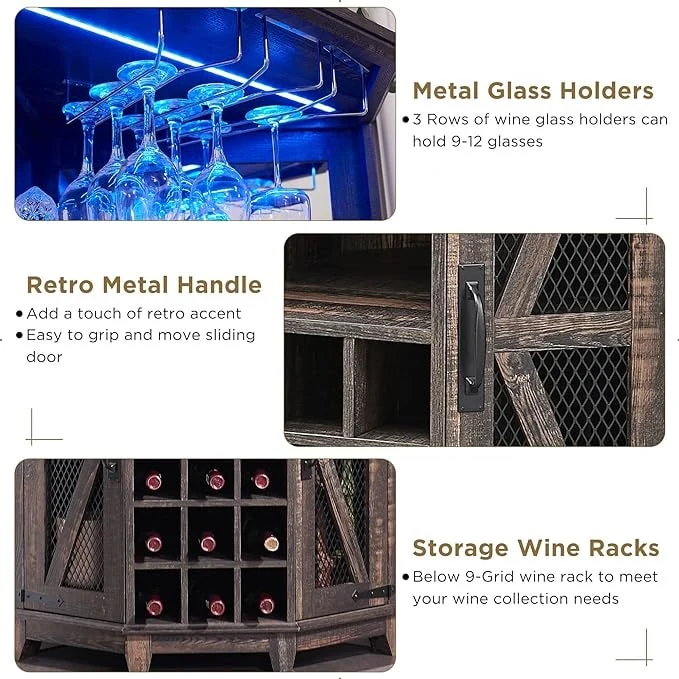 Moasis Farmhouse Bar Cabinet Wine Rack with RGB Light and Power Outlet