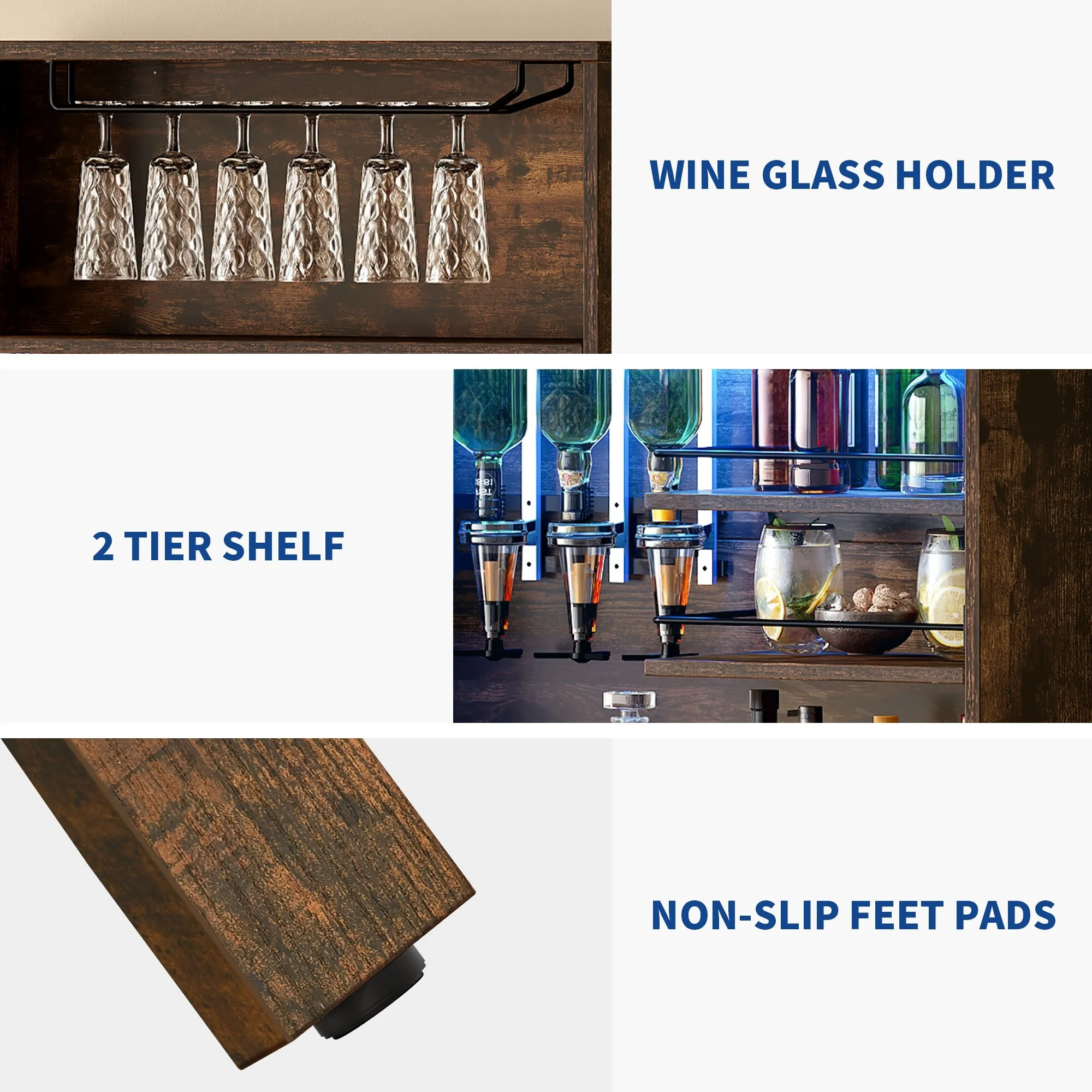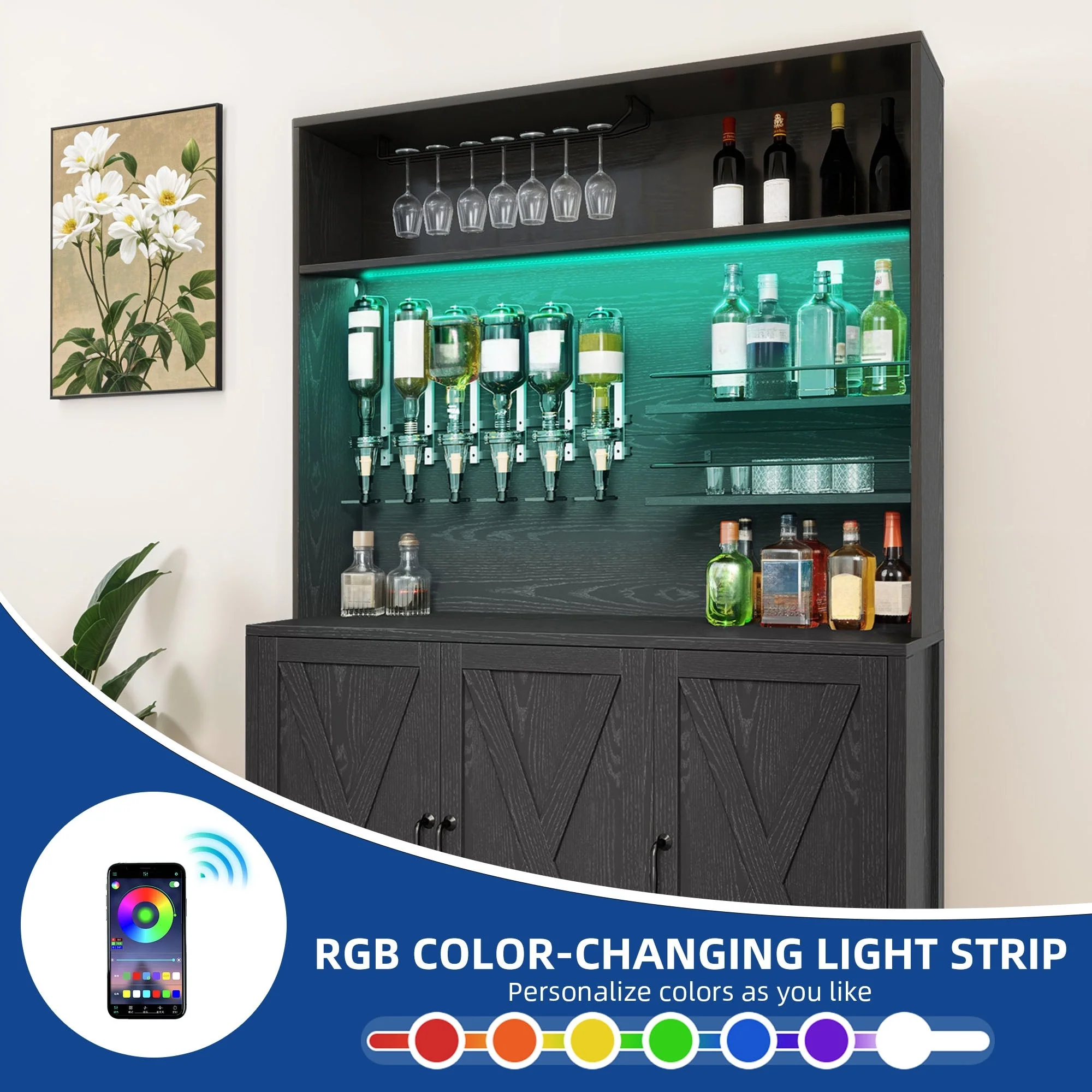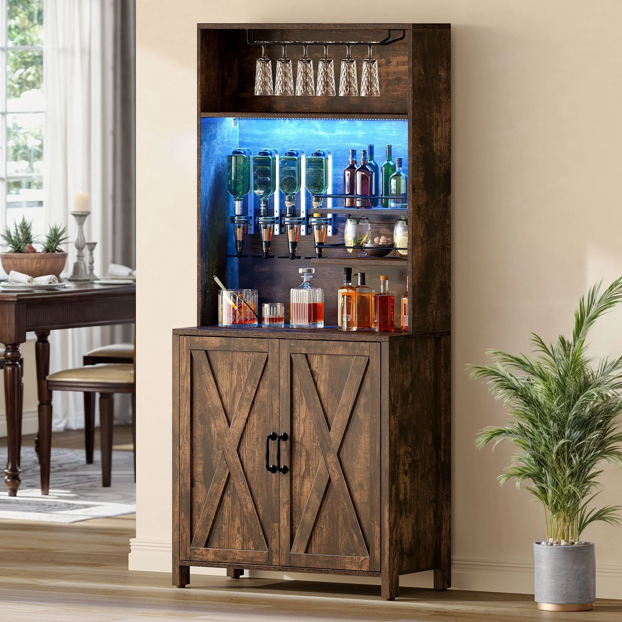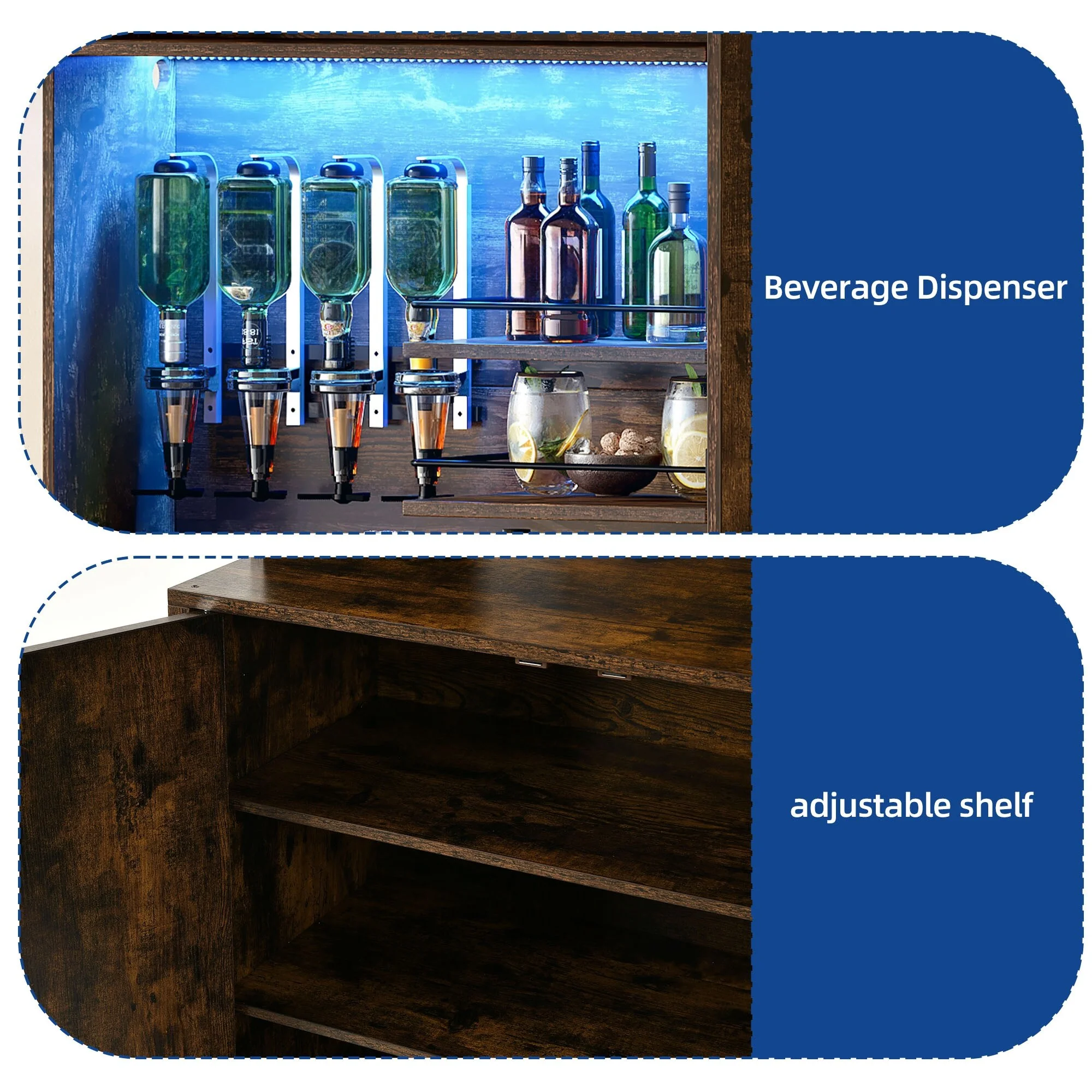Moasis Farmhouse Bar Cabinet Wine Rack with RGB Light and Power Outlet
