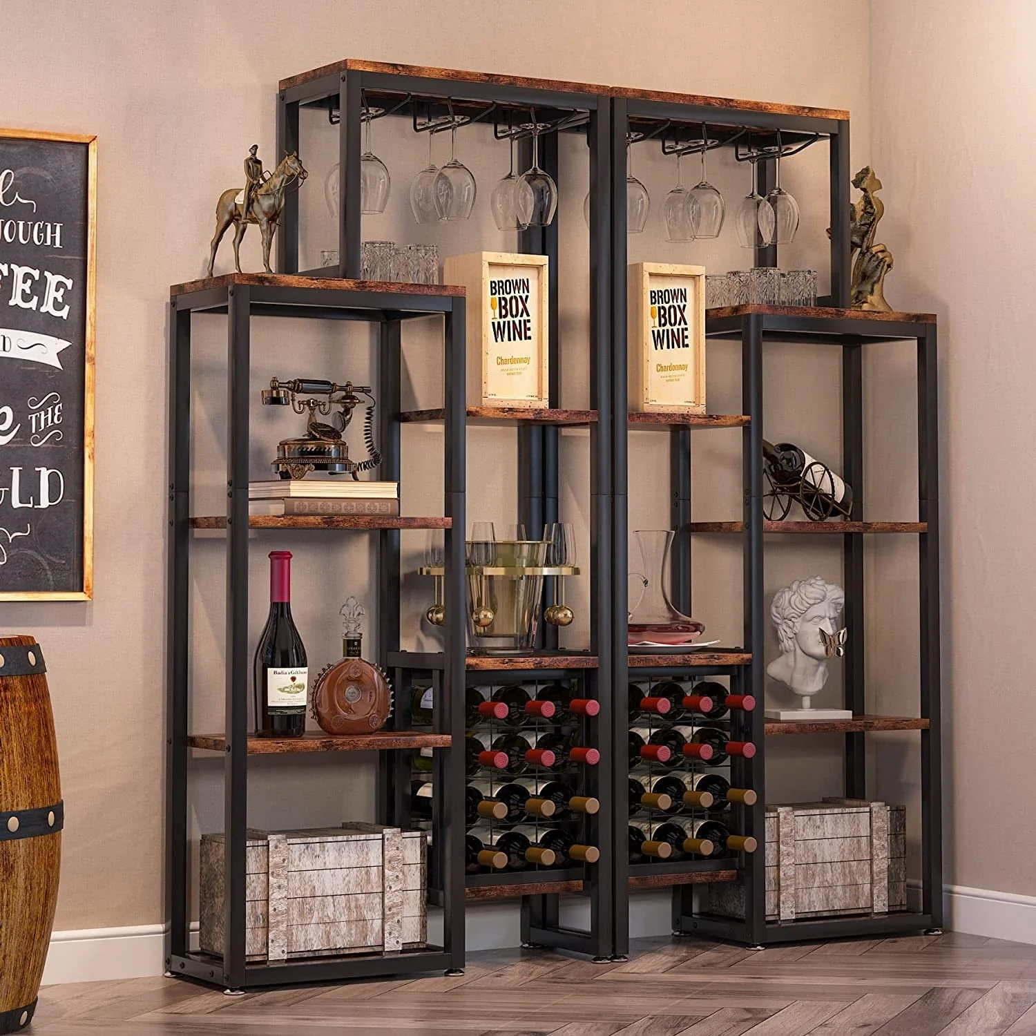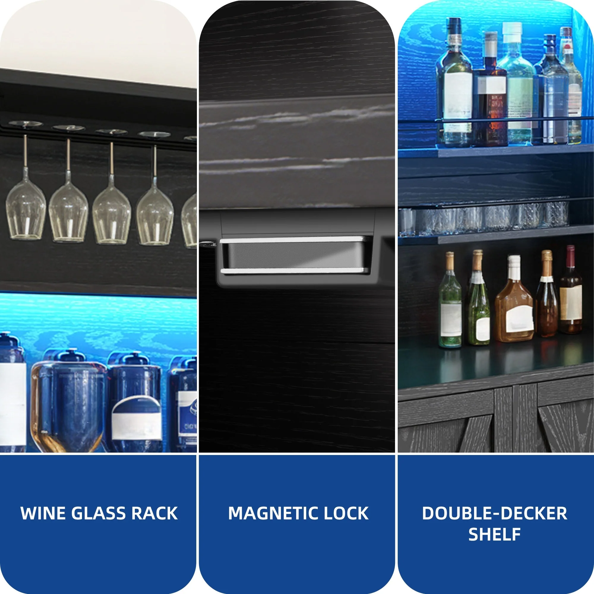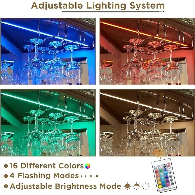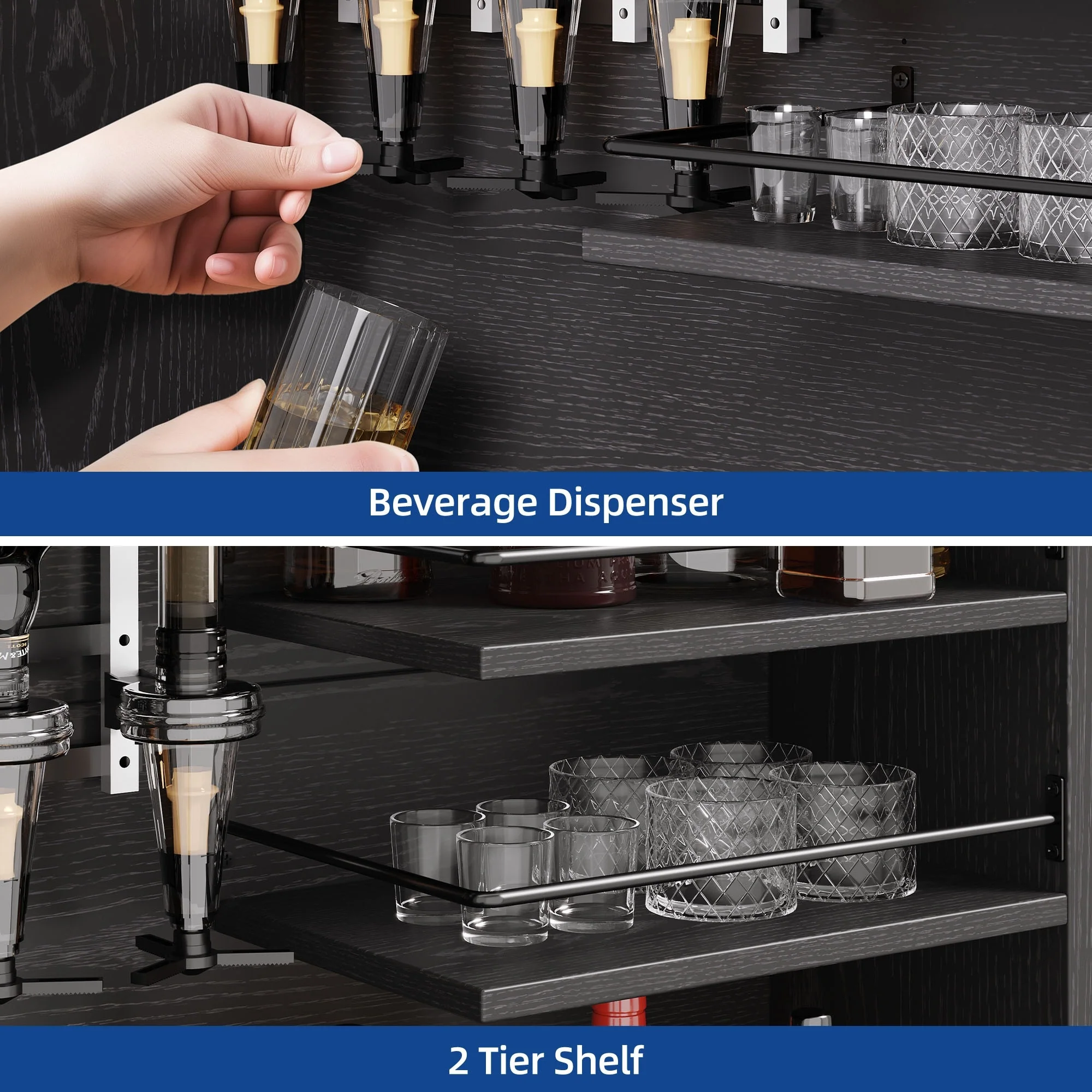 Moasis Farmhouse Bar Cabinet Wine Rack with RGB Light and Power Outlet