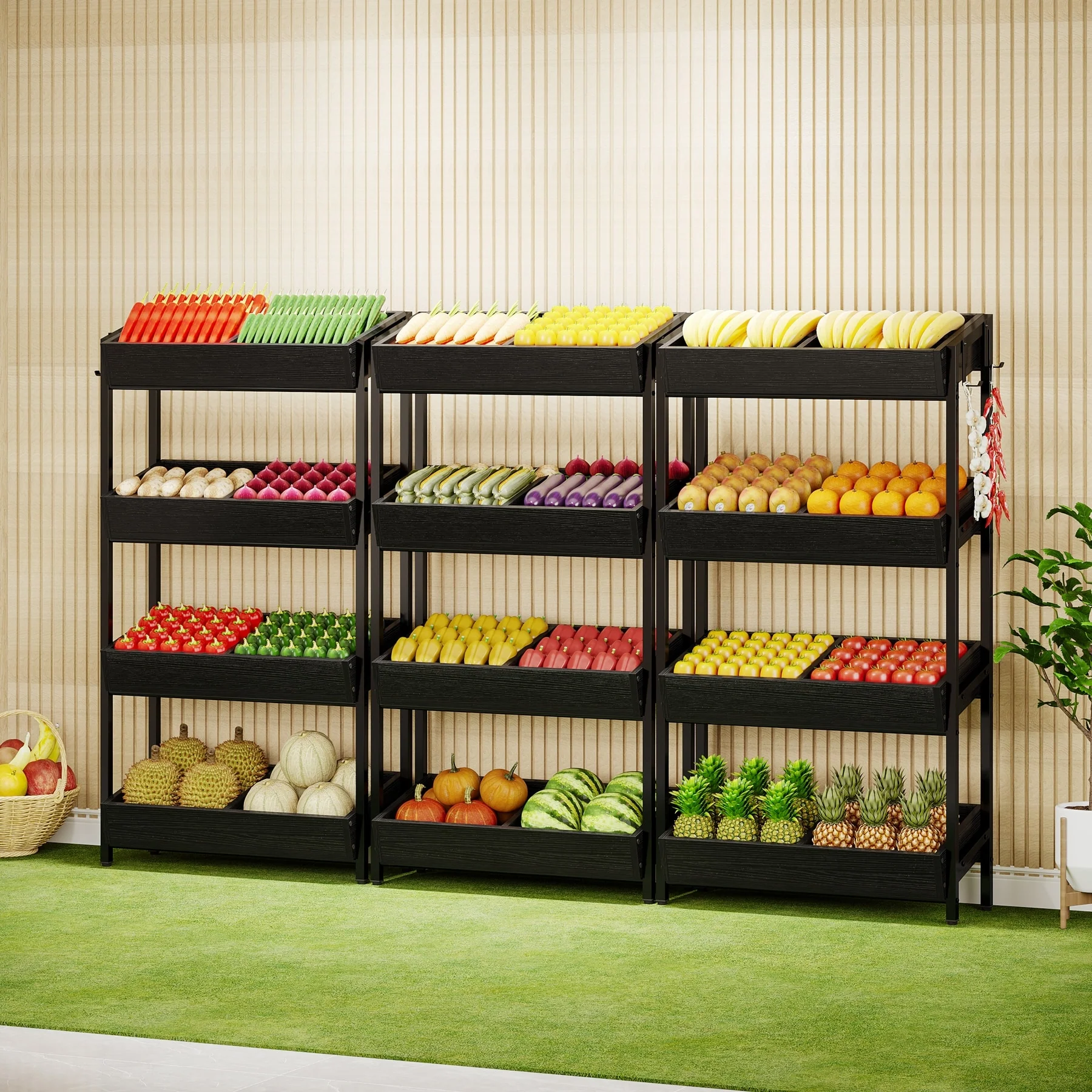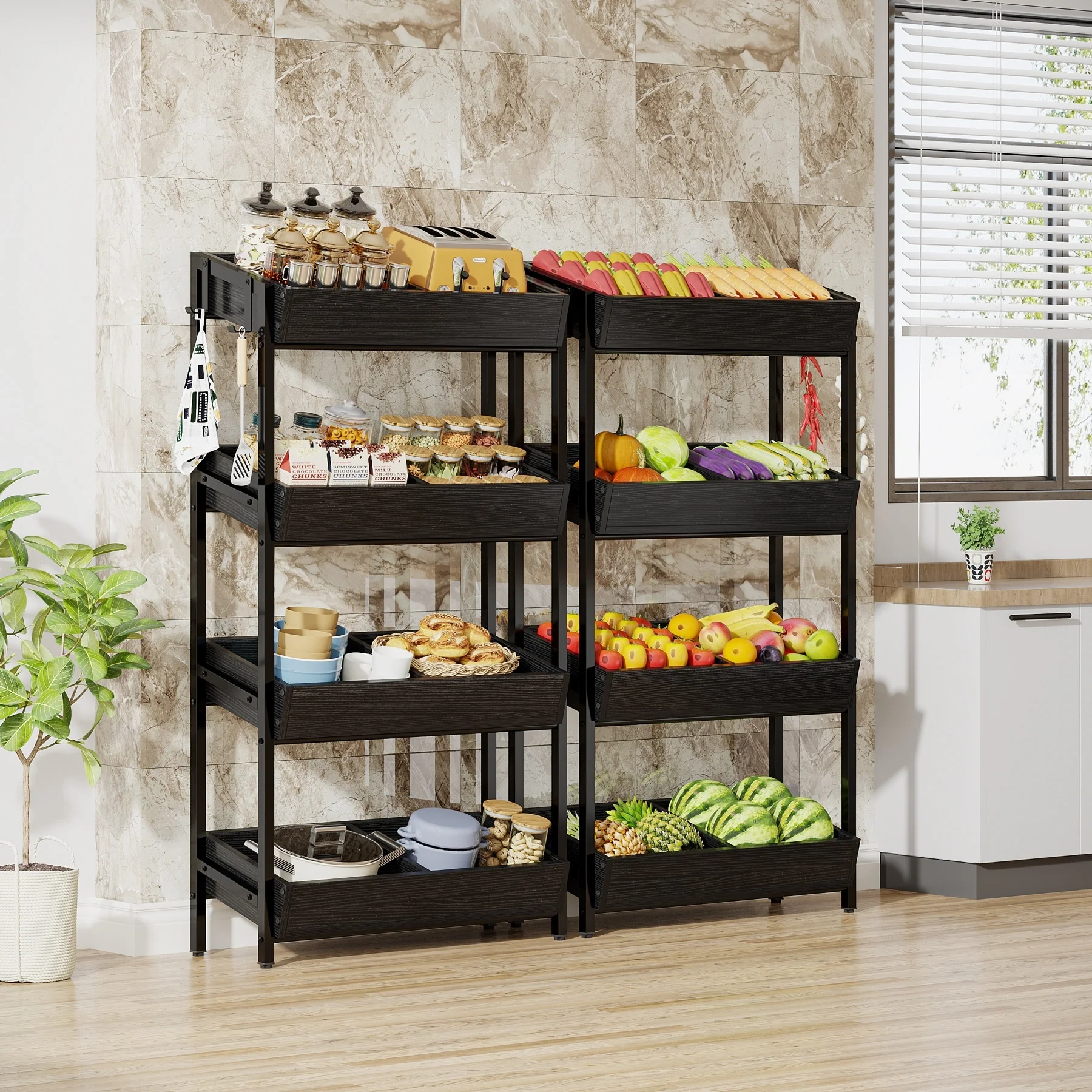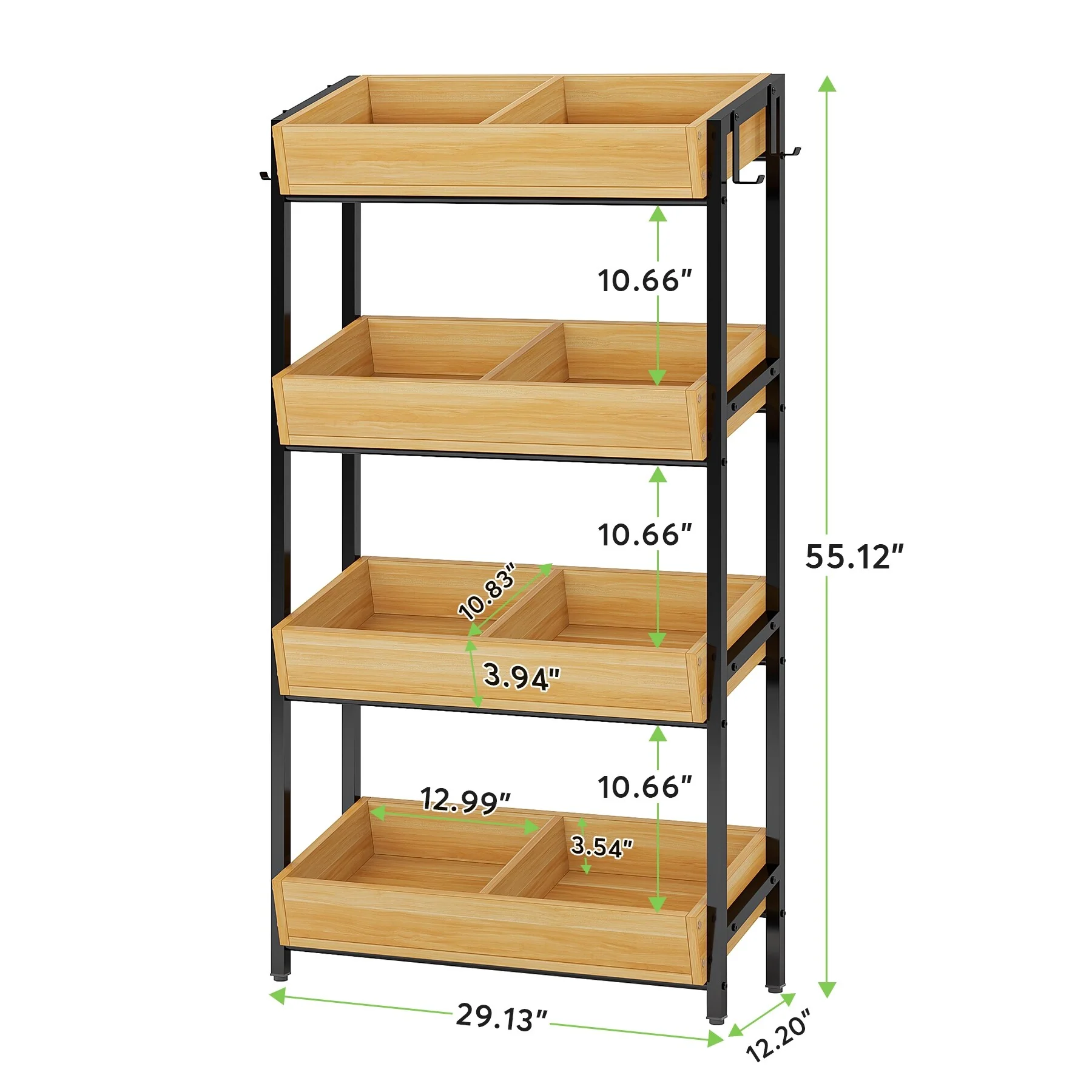 4-Tier Wood Fruit Vegetable Storage Rack Stand Stackable Fruit Basket Organizer Rack for Kitchen