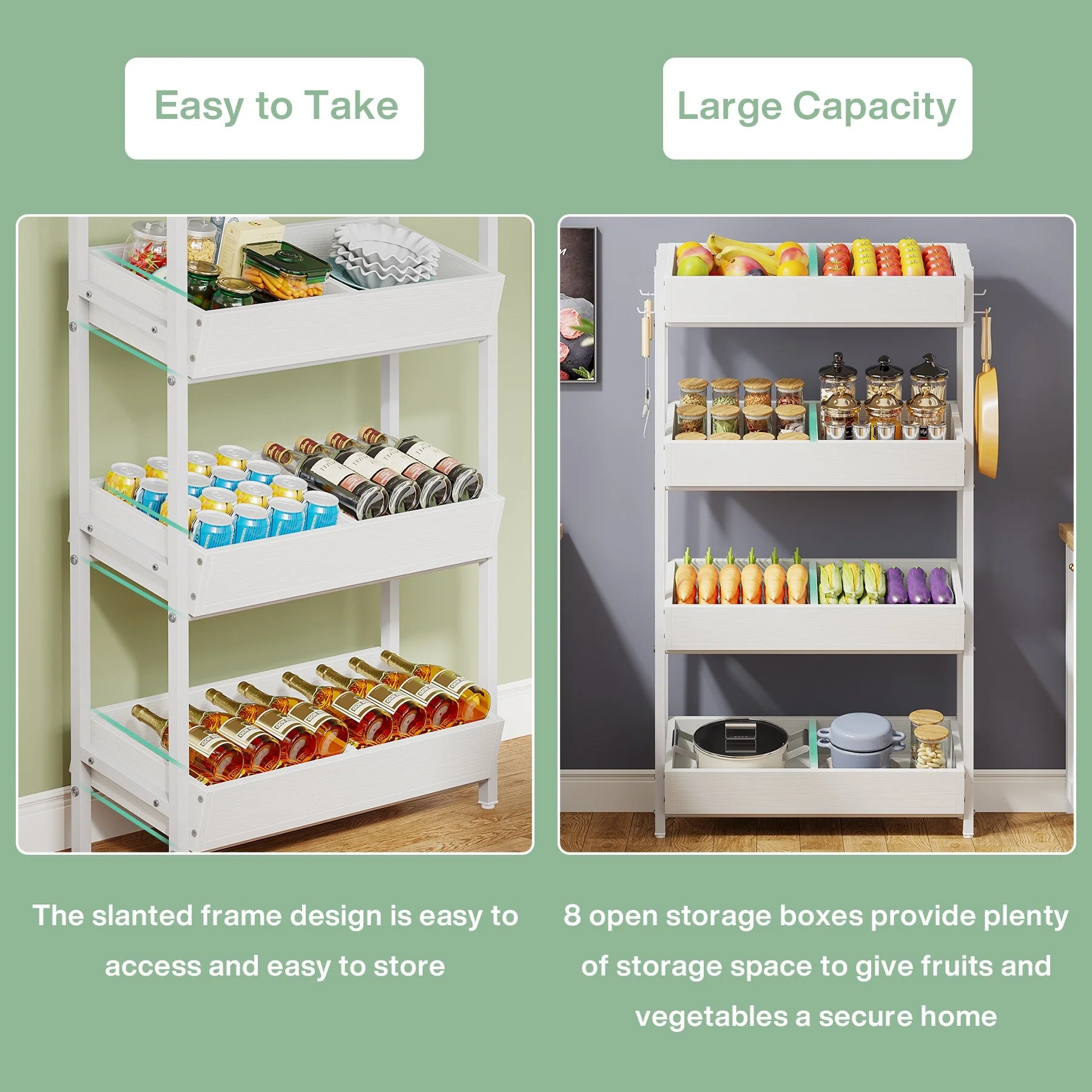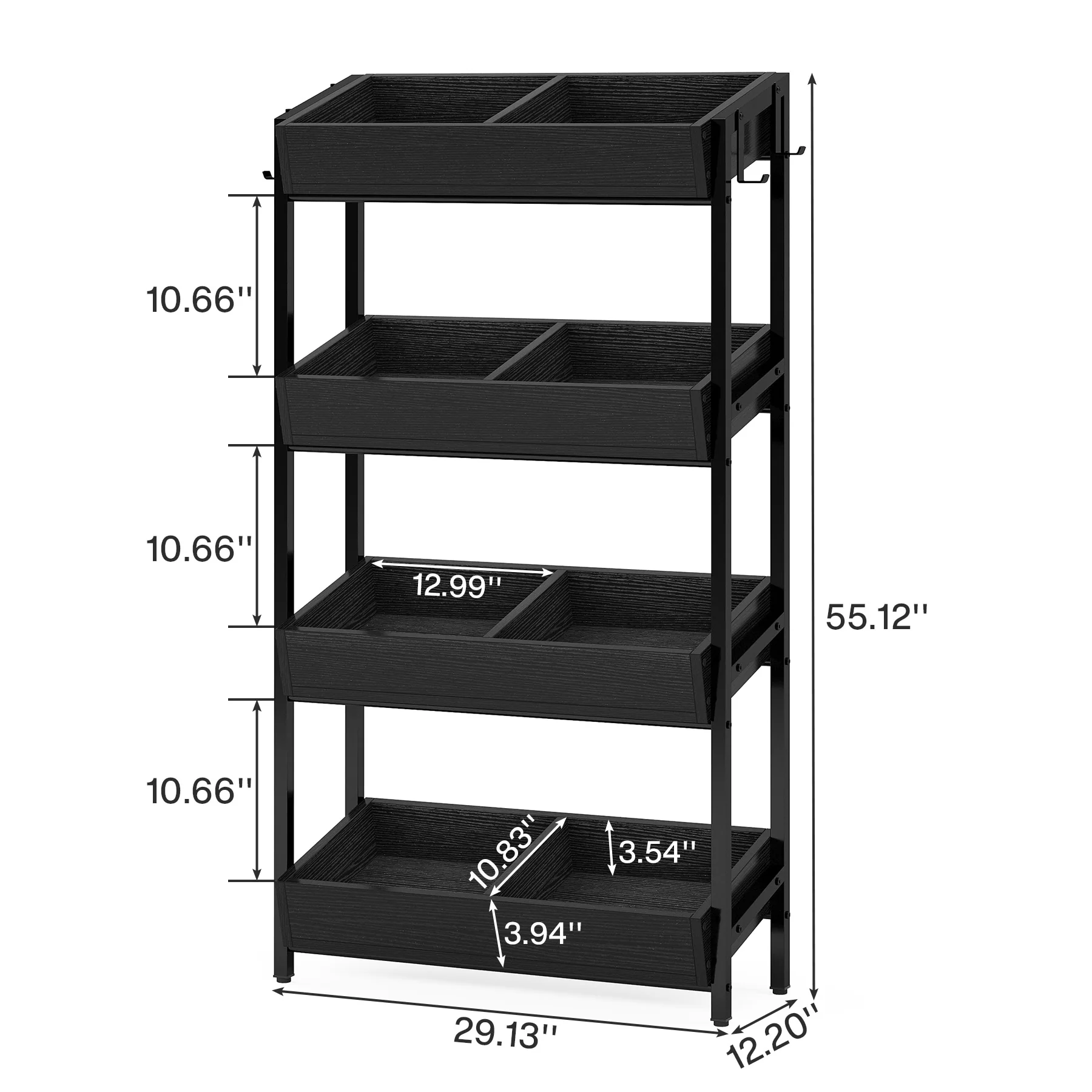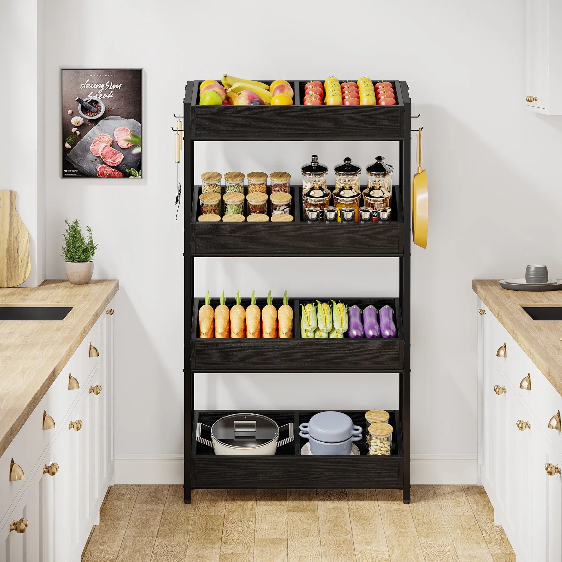 4-Tier Wood Fruit Vegetable Storage Rack Stand Stackable Fruit Basket Organizer Rack for Kitchen