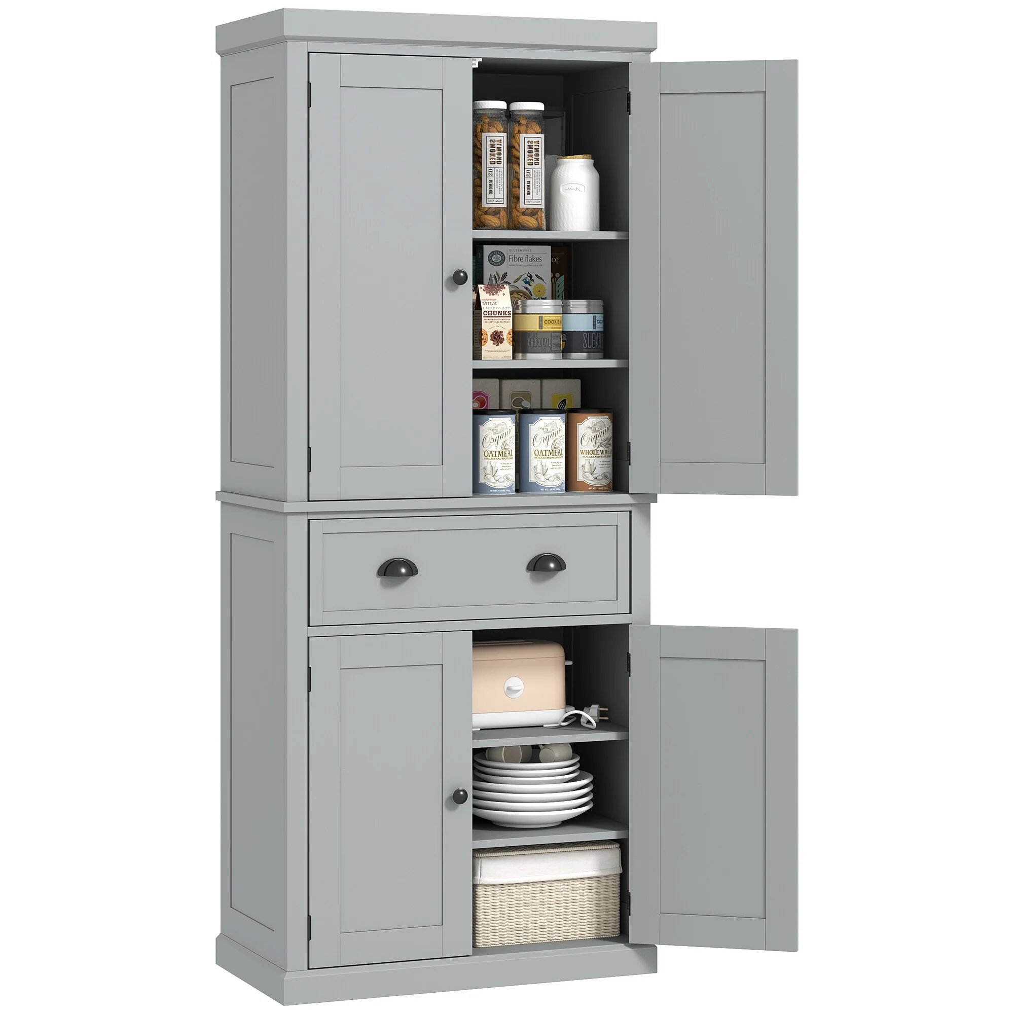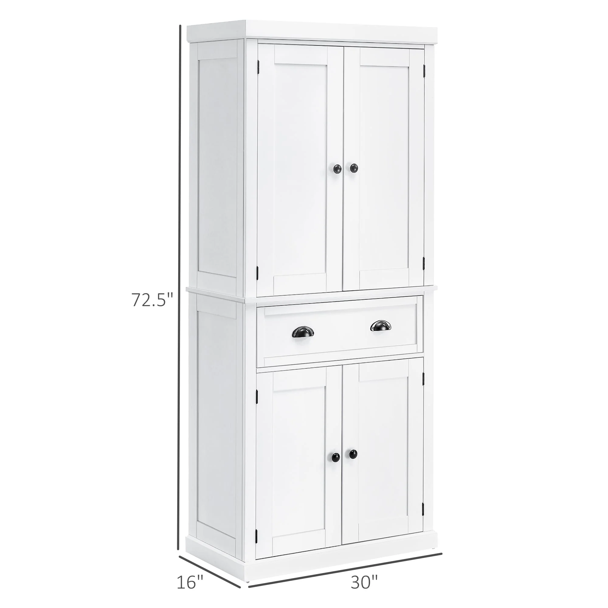 HOMCOM 72.5" Tall Farmhouse Kitchen Pantry Storage Cabinet, Freestanding Kitchen Cabinet with 4 Doors
