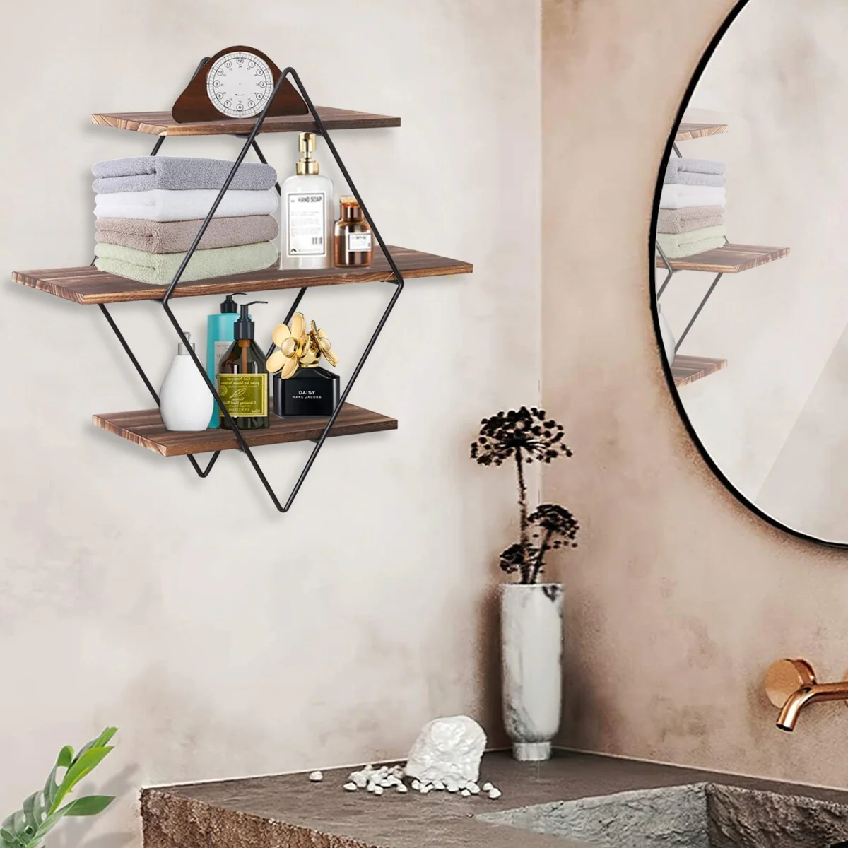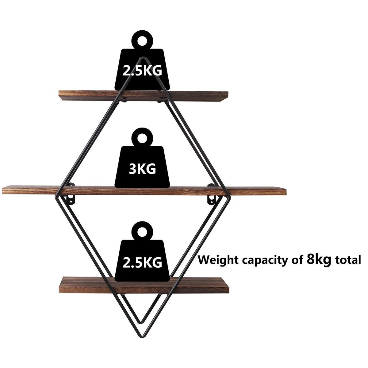 3Tier Metal Wall Shelves in Geometric Diamond for Home Display Storage