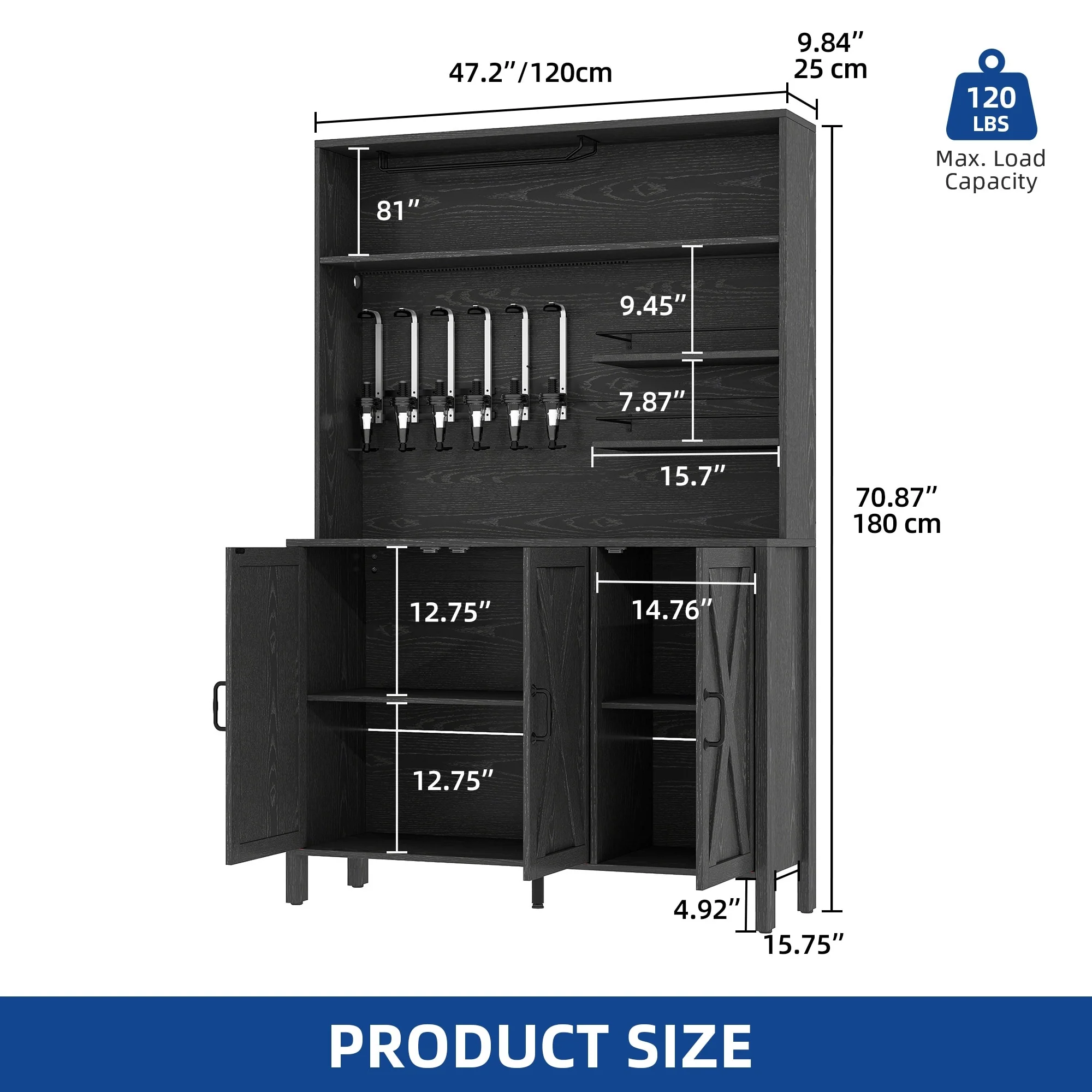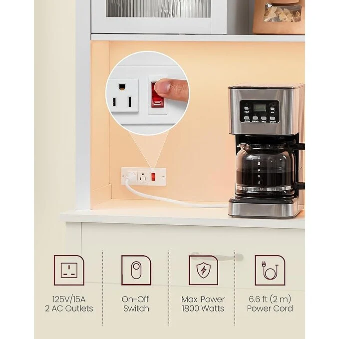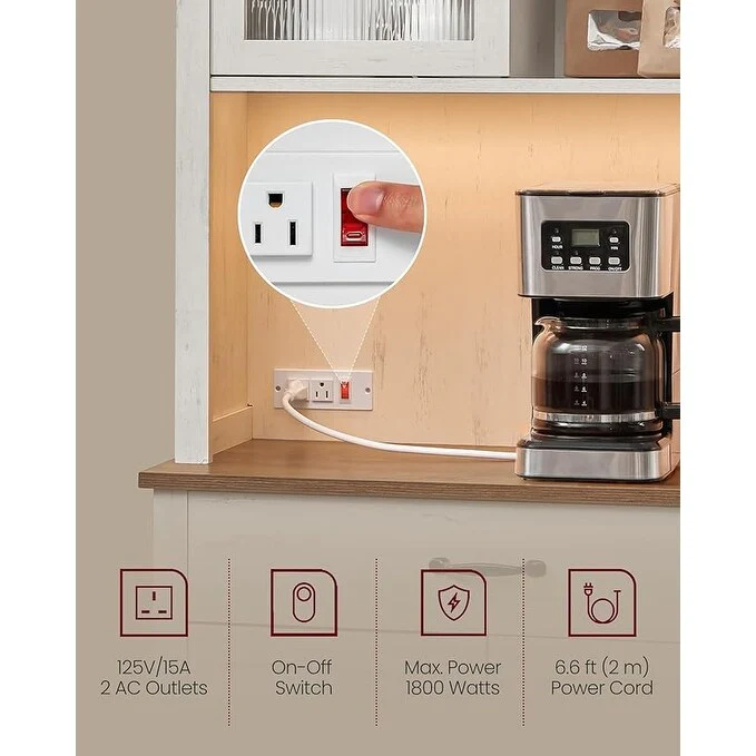 47.2 in Bakers Rack with Power Outlet Coffee Bar with Cabinet